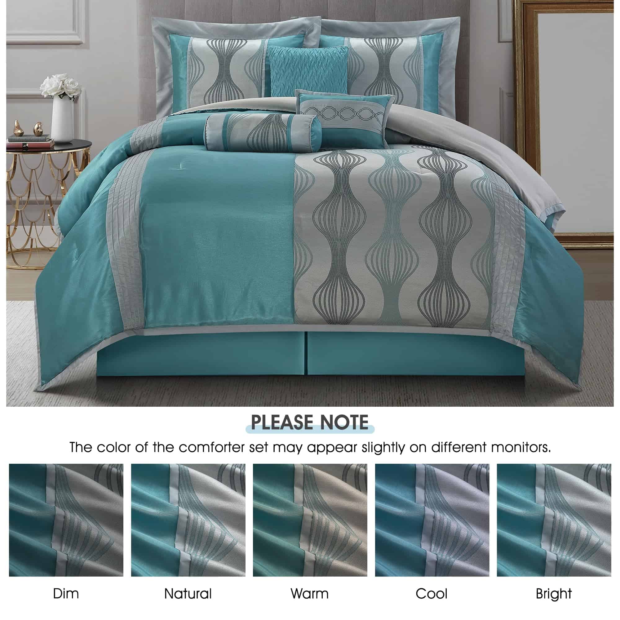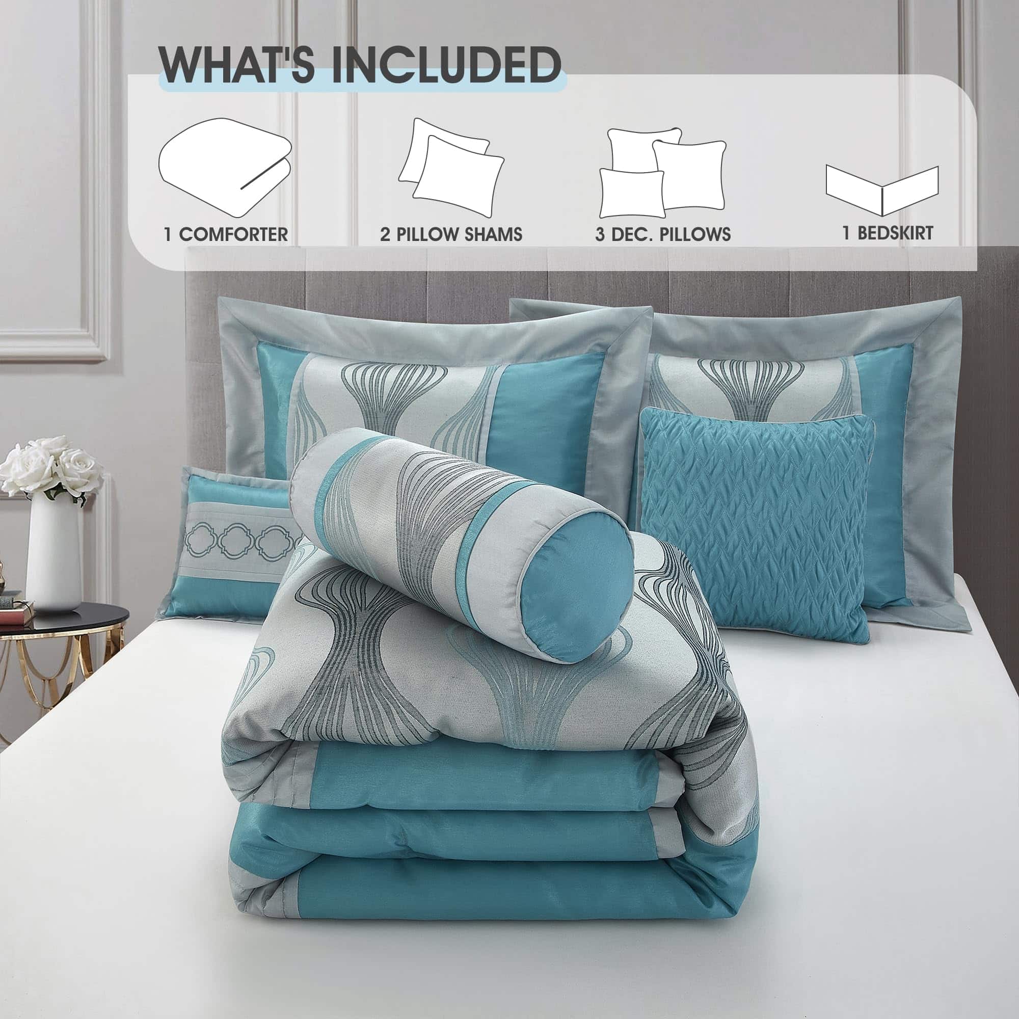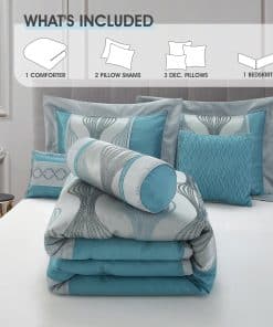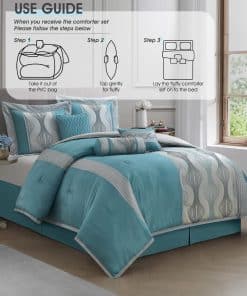1. Ultra Comfort: El juego de edredón está elaborado en 100% poliéster para una comodidad suprema y cuenta con un relleno de 180 GMS para una experiencia de sueño soñadora. 2. Diseño Elegante: Con un tejido jacquard y una combinación de colores azules, combina patrones geométricos con obras de patchwork para agregar un toque de elegancia moderna a tu dormitorio. 3. ¿Qué está incluido? El set de California King 7 piezas contiene 1 edredón (104″x92″), 1 falda de cama (72″x84″+15″), 2 fundas de almohada (37″x21″) y 3 cojines decorativos (12″x16″, 16″x16″, 6.5″x16″). 4. Cama en una bolsa: Cada set viene empaquetado individualmente, lo que lo convierte en una elección ideal para uso personal o como un regalo pensado. 5. Fácil de Mantener: El juego de edredón está diseñado para ser lavable a máquina por separado en agua fría, ciclo delicado y secar en secadora a baja temperatura para un mantenimiento fácil. Retirar rápidamente y no planchar para una belleza duradera. 6. LANCO – Tu socio confiable: Elige LANCO Modern Lifestyle para calidad premium y servicio al cliente excepcional. Valoramos tu satisfacción y estamos aquí para ayudar con cualquier preocupación de producto o logística.