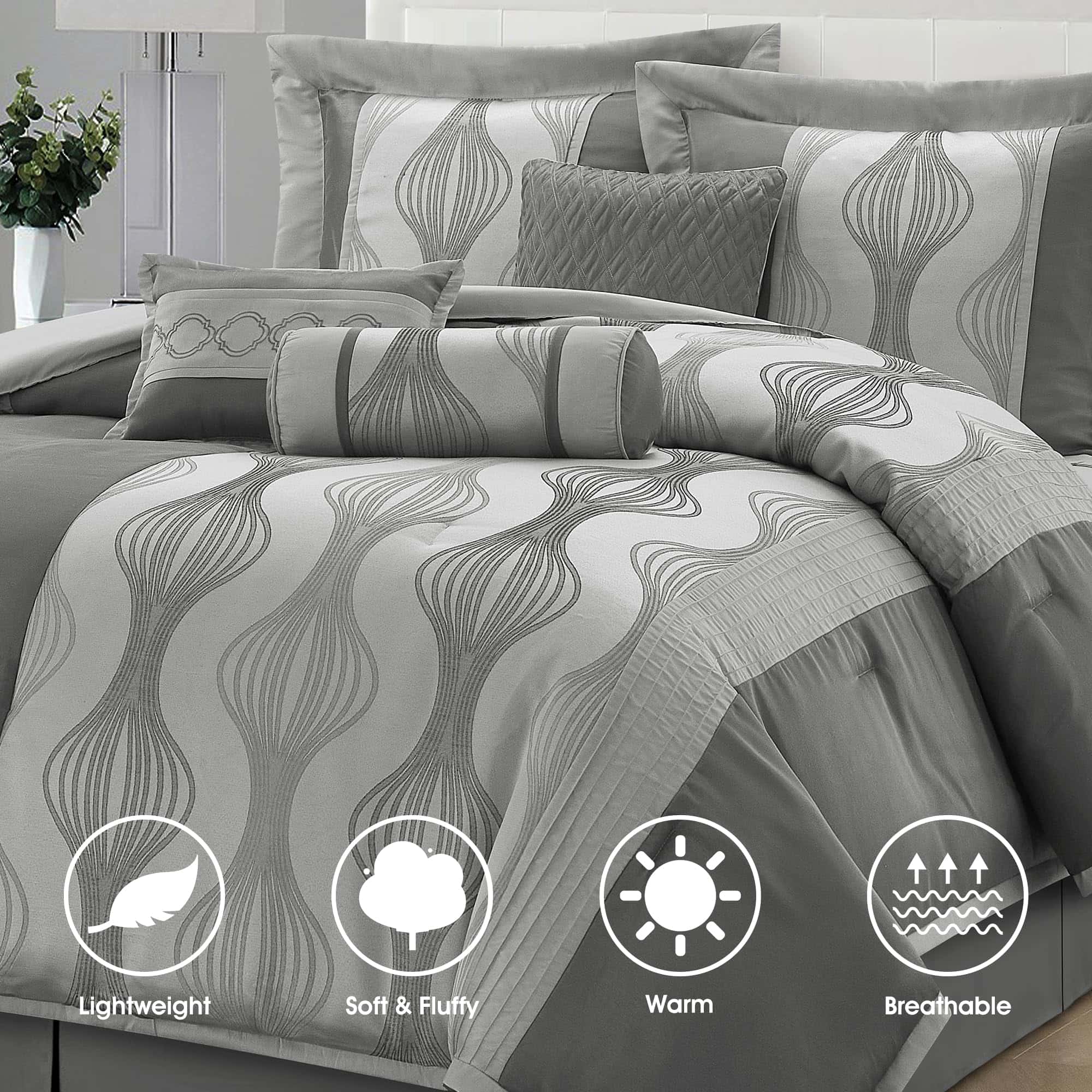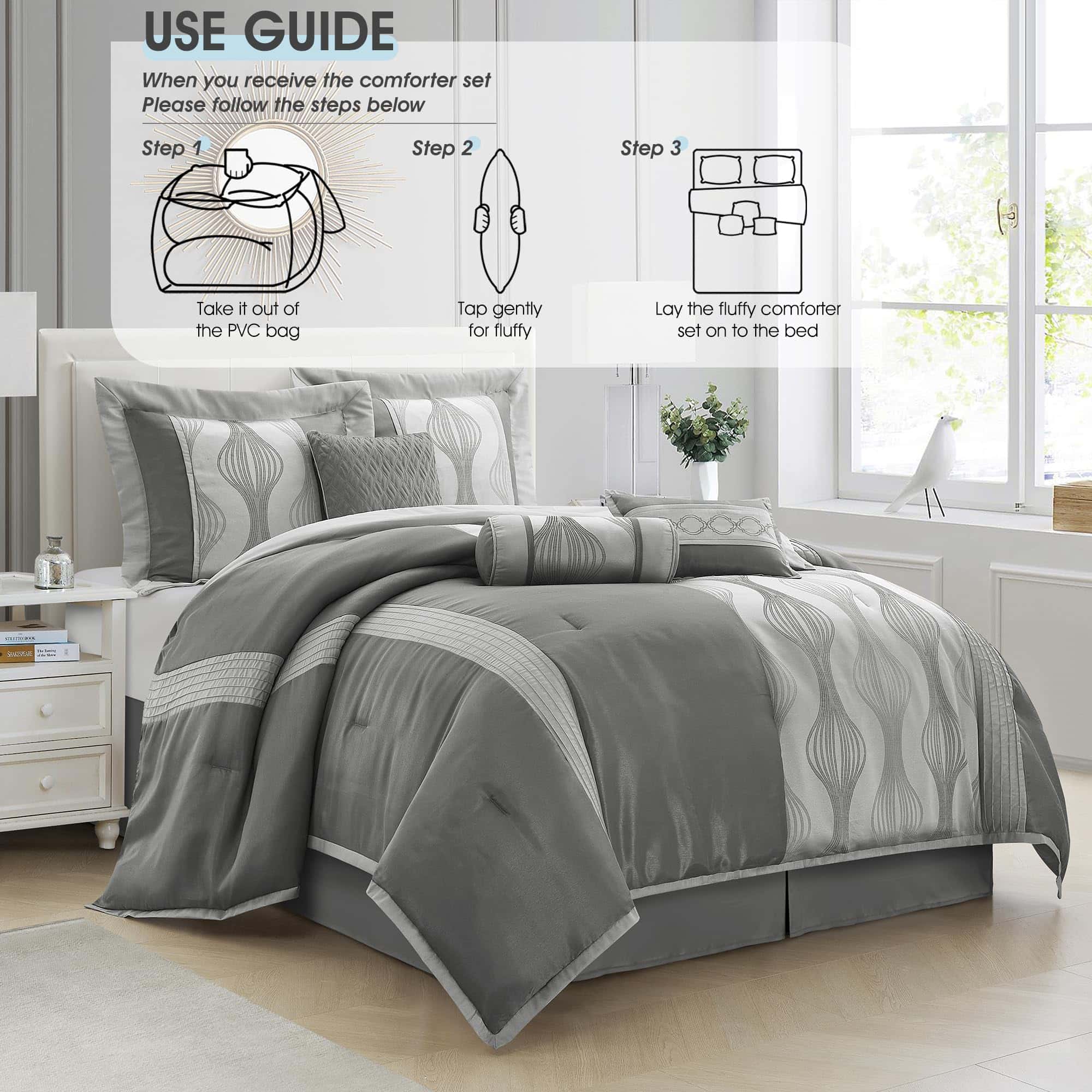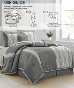 El juego de edredón LANCO MODERN LIFESTYLE California King ofrece una comodidad excepcional y un diseño elegante para mejorar la apariencia de tu habitación. La combinación de jacquard y un esquema de color gris se suma a la estética moderna y refinada de cualquier espacio. Con 7 piezas incluidas, este set es completo con edredón (104″x92″), faldón de cama (72″x84″+15″), 2 fundas de almohada (37″x21″) y 3 cojines decorativos (12″x16″, 16″x16″, 6.5″x16″). Cada juego viene empacado individualmente, lo que lo convierte en la elección ideal para uso personal o como regalo pensado. Fácil de mantener, este juego de edredón es apto para lavar a máquina en frío por separado, ciclo suave y secar a baja temperatura para un mantenimiento sencillo. ¡No dudes en elegir LANCO – Tu socio de confianza en moderno estilo de vida para calidad premium y servicio al cliente excepcional!