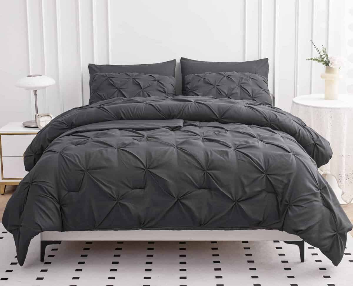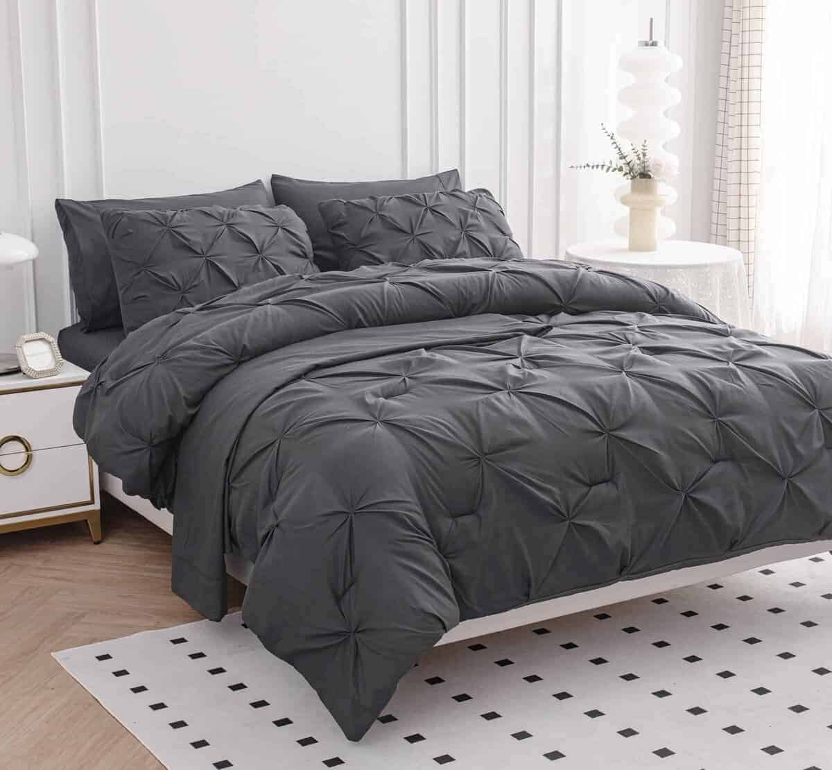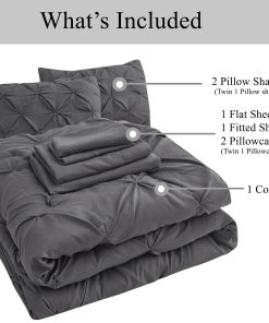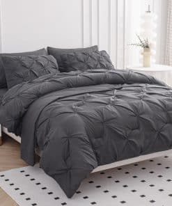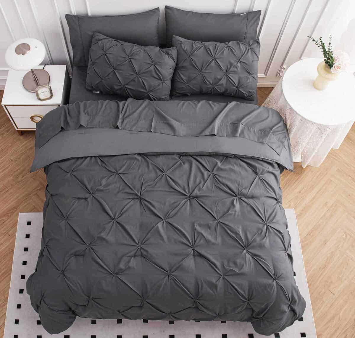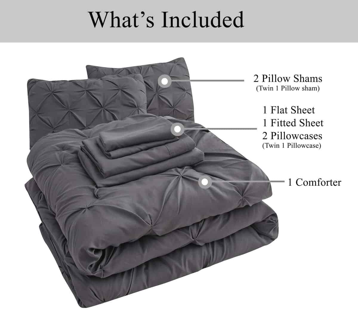 Juego de Edredón LANE LINEN para Cama Individual con Sábanas, Juego de Cama Individual de 5 Piezas, Juegos de Ropa de Cama Individuales con Pliegues, Juego de Cama Individual Ultra Suave, Edredón Esponjoso, Juego de Edredón Individual con Fundas de Almohada y Cojines – Gris