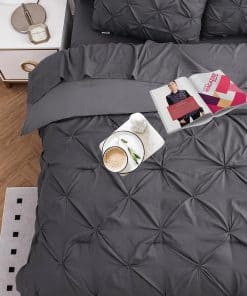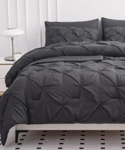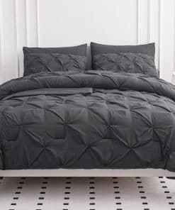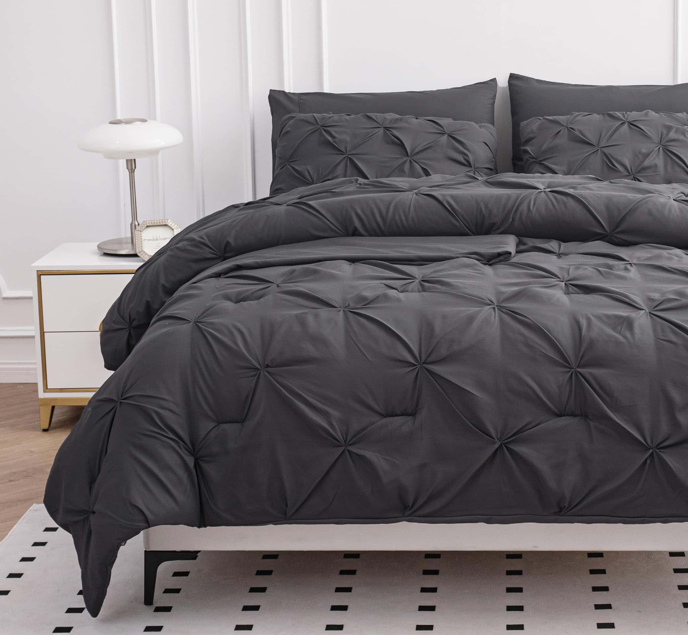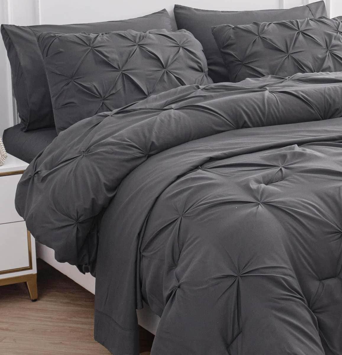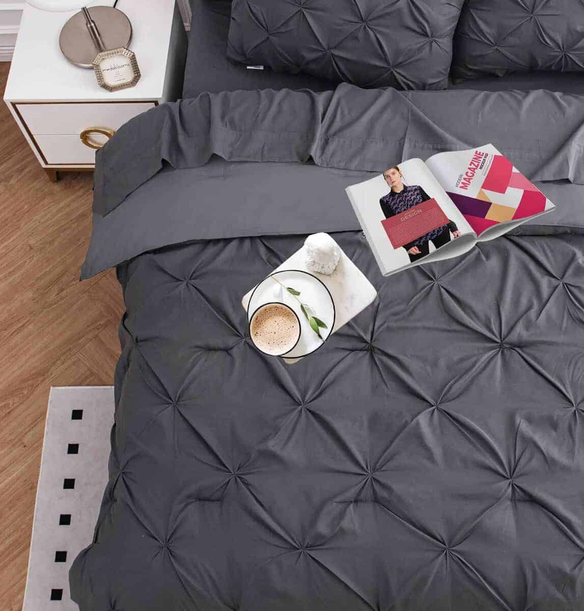 Juego de Edredón LANE LINEN para Cama Individual con Sábanas, Juego de Cama Individual de 5 Piezas, Juegos de Ropa de Cama Individuales con Pliegues, Juego de Cama Individual Ultra Suave, Edredón Esponjoso, Juego de Edredón Individual con Fundas de Almohada y Cojines – Gris