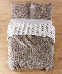 Uno de nuestros juegos de edredón más populares, Kasey está inspirado en diseños antiguos hindúes, con un intrincado paisley y un encantador patrón reversible de mini medallones azules y rojos. Un borde encuadernado proporciona contraste y textura para completar el look. Las fundas de almohada a juego están cortadas al azar del mismo tejido que el edredón, lo que hace que cada funda de almohada sea única y no idéntica a ninguna otra funda. Hecho de 100% algodón y relleno con un relleno rico en algodón (que incluye poliéster y otras fibras), este edredón nunca se sentirá pesado, rígido o incómodo. El juego de edredón y funda de almohada Kasey tiene un tacto ultra suave que simplemente te encantará. Nuestro edredón es muy generosamente dimensionado (106x92in.) para darle a tu dormitorio una sensación de comodidad y lujo. Pre lavado para tu conveniencia, el juego de edredón y funda de almohada es fácil de cuidar. Simplemente lavar a máquina en un ciclo frío y suave, luego secar al aire o secar en secadora a baja temperatura. Crea un maravilloso espacio para tu habitación con nuestro coordinado juego de cama reversible a juego. El intrincado diseño de paisley aporta detalles sofisticados e intrincados a tu hogar y combinará con una variedad de looks diferentes y decoración de dormitorios. También puedes refrescar tu habitación con fundas de cojín euro coordinadas, manta, paneles de cortina y valance de la colección Levtex Home.