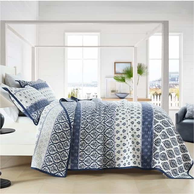2. Colcha Floral Elegante patrón floral con color azul estable hacen que el edredón tenga una apariencia más elegante y moderna. La costura exquisita mejora la durabilidad y longevidad.