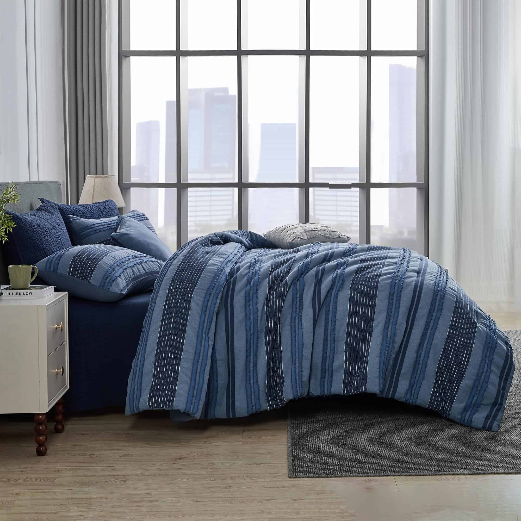 Juego de Edredón Maravilloso Azul Denim King Size, Edredón