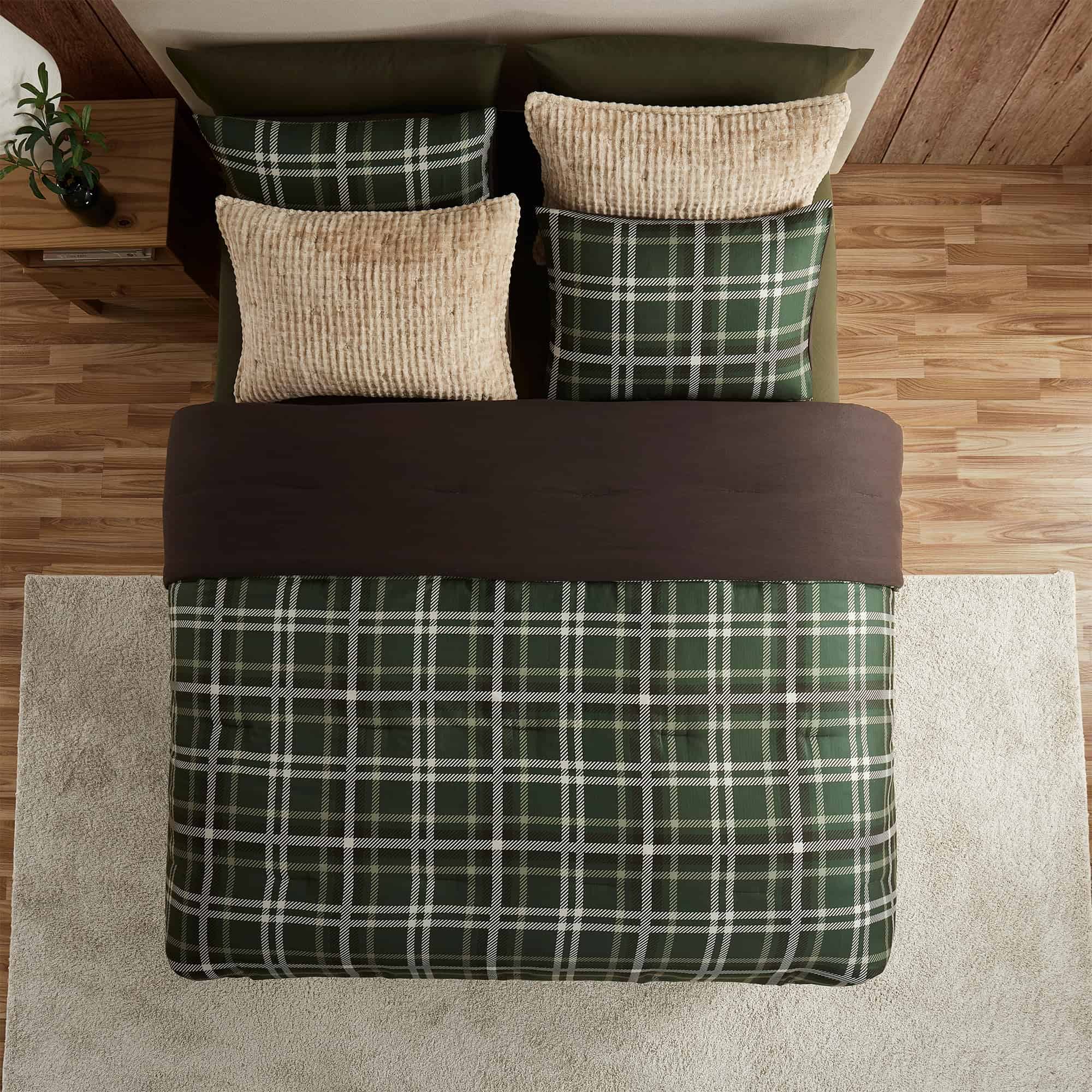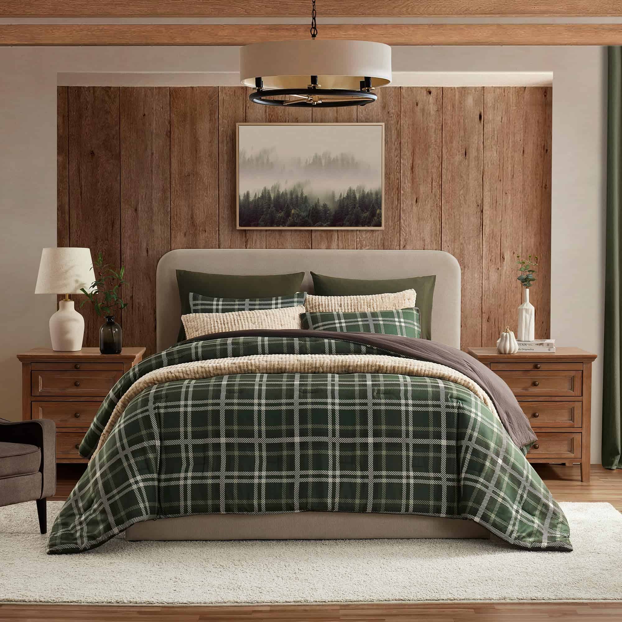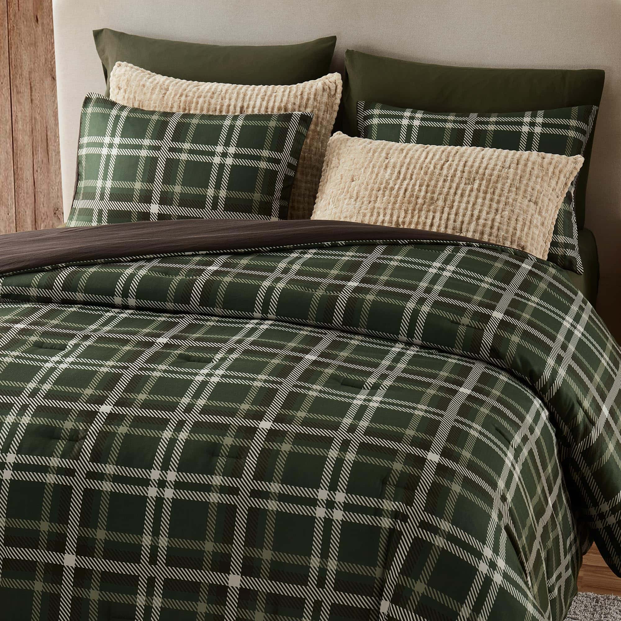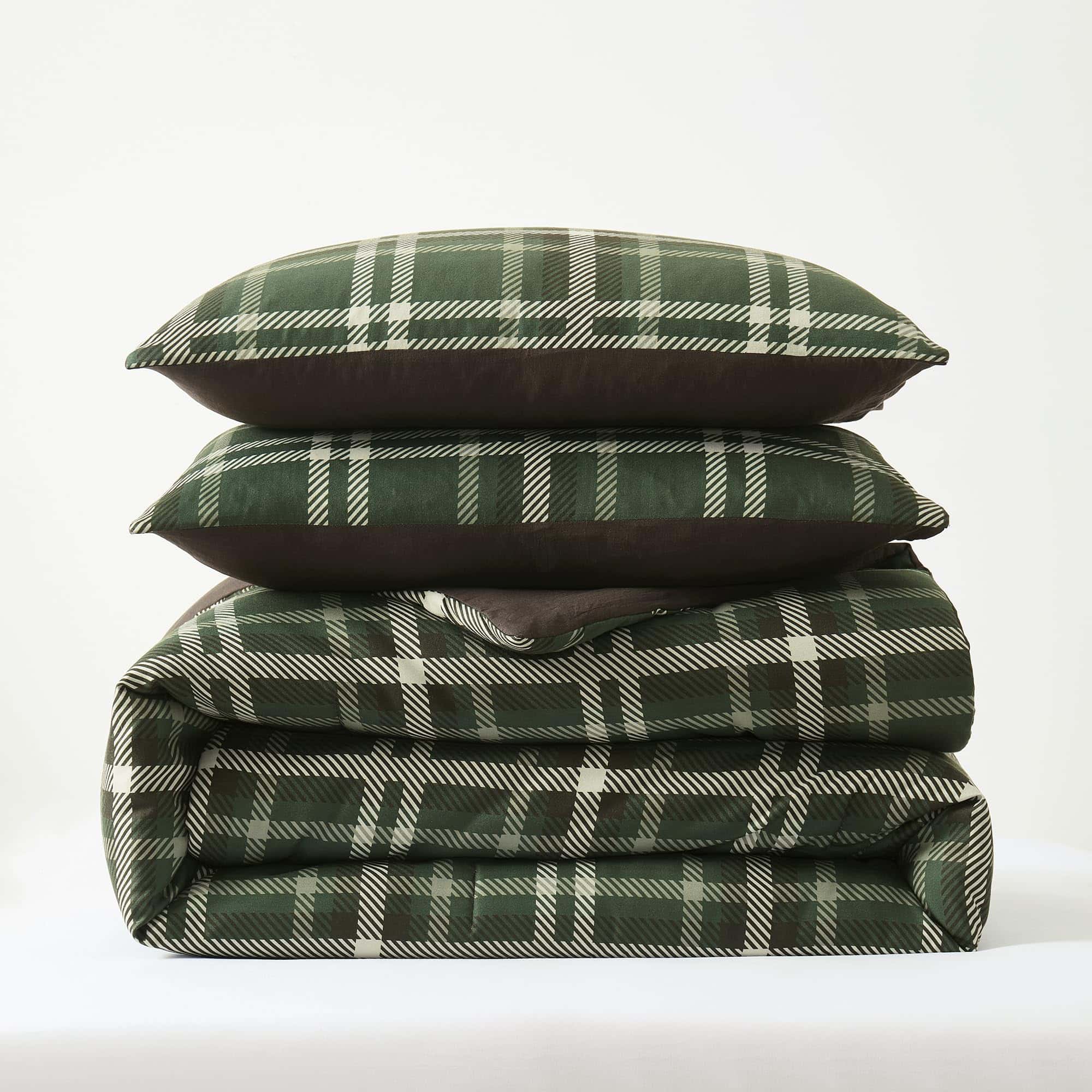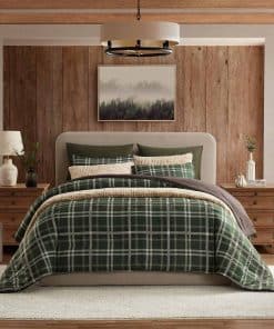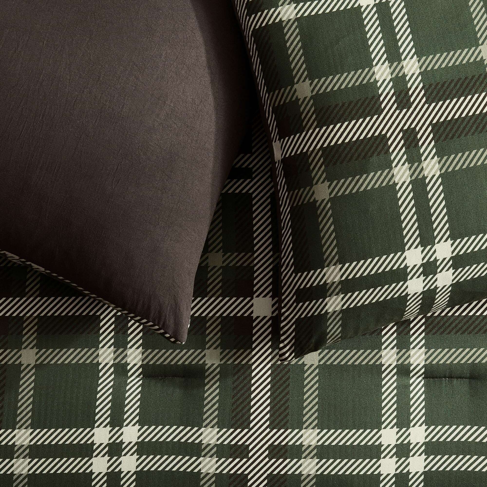 Este juego de edredón Parkston encarna la estética de estilo de vida de cabaña popular, agregando encanto campestre informal a tu espacio. Actualiza tu dormitorio con un diseño moderno de cuadros elegante, disfrutarás de un aspecto completo que es tan acogedor como invita. El juego de edredón utiliza tela texturizada de poliéster de primera calidad en la parte delantera, el acabado especial napped en la cara tiene una sensación ultra lanuda para mayor calidez y suavidad. Y el reverso hecho de hilo de microfibra de la más alta calidad está hidrocepillado para una sensación increíblemente suave sin materiales dañinos y hecho para durar. Cero ruido para un sueño tranquilo. Es un material ideal para uso diario. Duerme mejor con un edredón que se siente lujosamente suave al tacto. La tecnología que absorbe la humedad trabaja para mantenerte seco, mientras que el diseño ligero proporciona calor sin sentirse demasiado pesado. Te despertarás sintiéndote fresco cada mañana. Lavable a máquina y de poco mantenimiento, este juego de edredón es tan práctico como elegante. Simplemente lávalo con agua fría en un ciclo suave, seca a baja temperatura y disfruta de una limpieza sin problemas. La tela duradera garantiza que mantenga su suavidad y forma lavado tras lavado. Disponible en tallas Full/Queen y King, el edredón y las fundas a juego tienen un tamaño generoso para adaptarse perfectamente a tu cama: Full/Queen: Edredón 90″ An x 94″ L, Funda 20″ An x 26″ L (2 piezas); King: Edredón 106″ An x 94″ L, Funda 20″ An x 36″ L (2 piezas), Sin bolitas, sin encogimiento, sin decoloración. ESTÁNDAR 100 de OEKO-TEX.