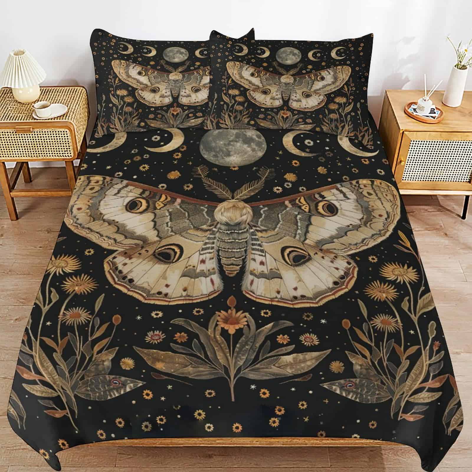 Juego de Edredón Mariposa Amarillo Estampado Floral Cuenco