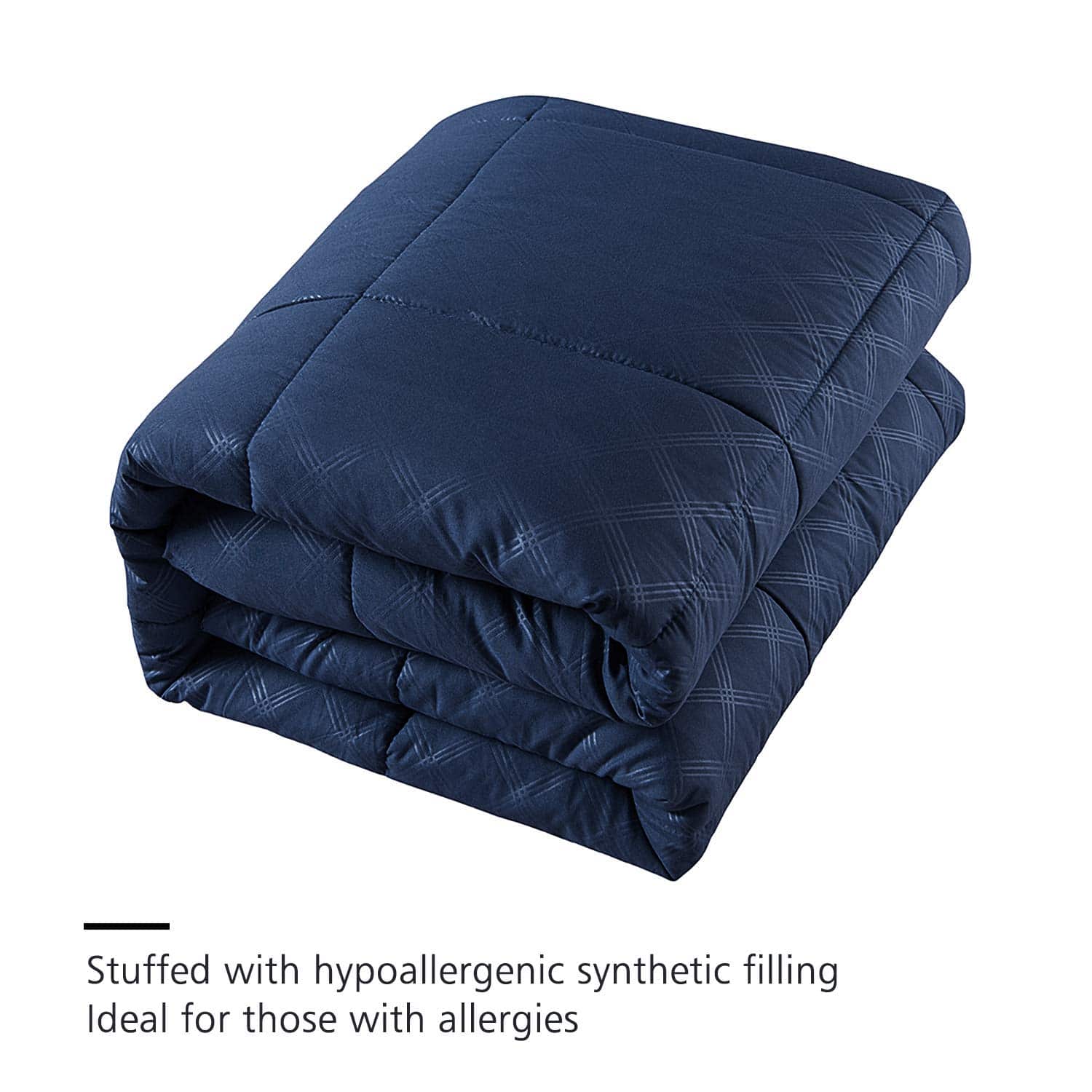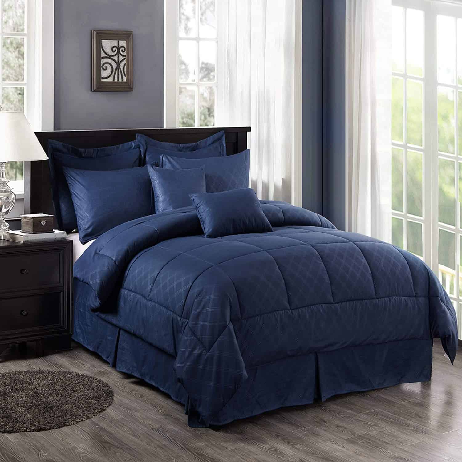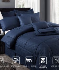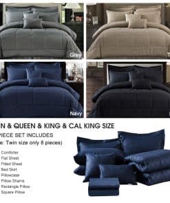1. SUAVE, DURADERO Y DISEÑO ELEGANTE – El juego de edredón de ropa de cama está fabricado con tela de microfibra de primera calidad duradera de 430GSM (110GSM de microfibra cepillada y 210GSM de relleno de poliéster) que proporciona una mejor textura suave y resistencia a las arrugas, se sentirá ultra suave y cómodo, y mejorará su experiencia de sueño. La tela expresa efectos de patrón liso, agregando una sensación chic a su dormitorio. 2. JUEGO DE EDREDÓN DE REINA EN BOLSA 10 PIEZAS – 1x Edredón 90″x90″, 1x Sábana Plana 90″x102″, 1x Sábana Ajustada 60″x80″+14″, 2x Fundas de almohada: 20″x26″, 1x Falda de cama 60″x80″+14″, 2x Fundas de almohada 20″x26″+2″, 1x Almohada decorativa rectangular 12″x18″, 1x Almohada decorativa cuadrada 17″x17″. 3. MANTÉNGASE CALIENTE Y FRESCO BAJO LA COBERTURA – Todo el año con el diseño moderno y simple del edredón con detalles bordados acolchados con relleno de alternativa sintética ligera de plumón, el edredón lo mantendrá caliente en el invierno y cómodo en el verano. 4. MANTÉNGASE CALIENTE Y FRESCO BAJO LA COBERTURA – Todo el año con el diseño moderno y simple del edredón con relleno de alternativa sintética ligera de plumón, el edredón lo mantendrá caliente en el invierno y cómodo en el verano. 5. EMBALAJE ECOLÓGICO – Hemos desarrollado nuestra técnica de envasado al vacío para reducir las emisiones de gases de efecto invernadero. Para lograr la máxima esponjosidad, seque el juego de edredón a baja temperatura durante 30 minutos.