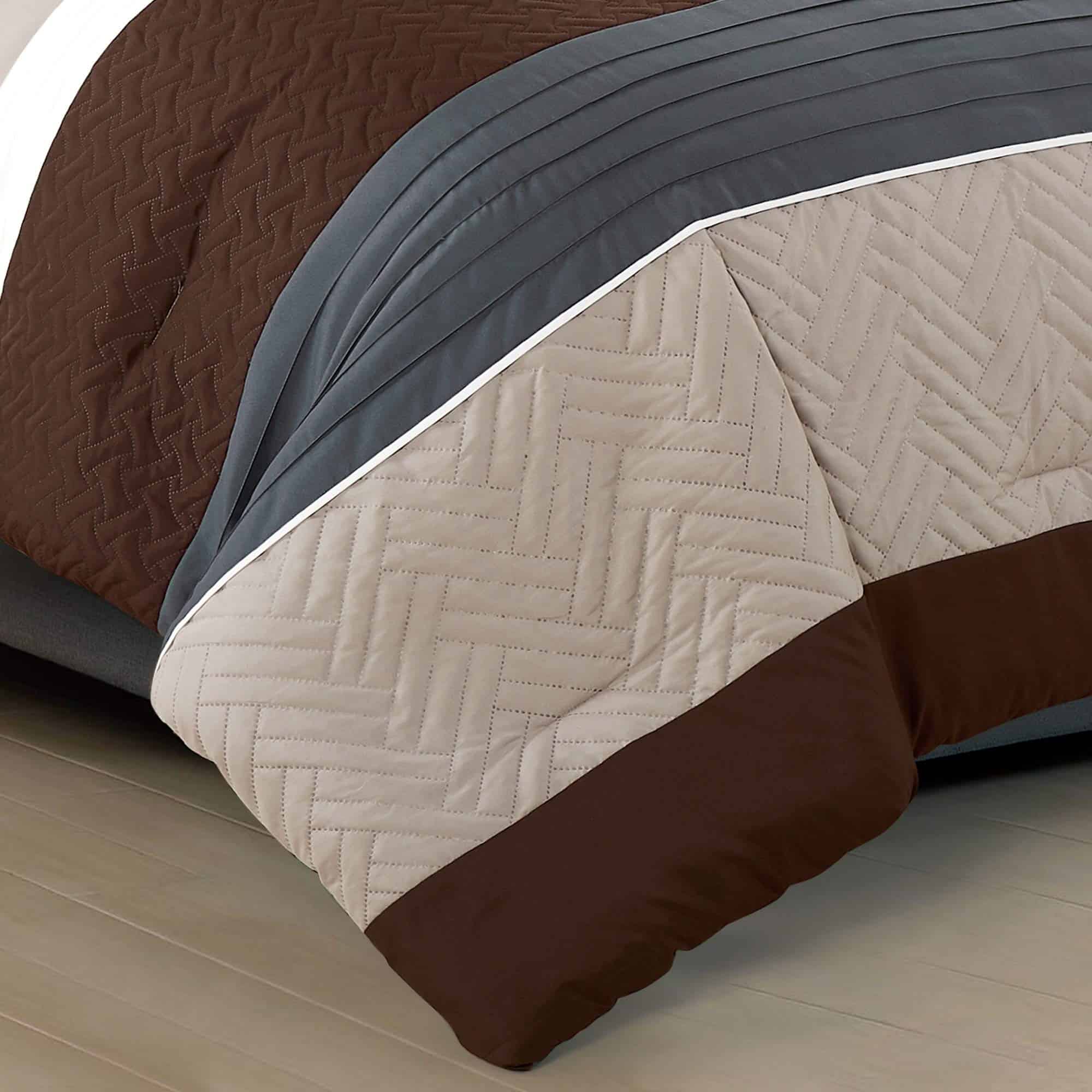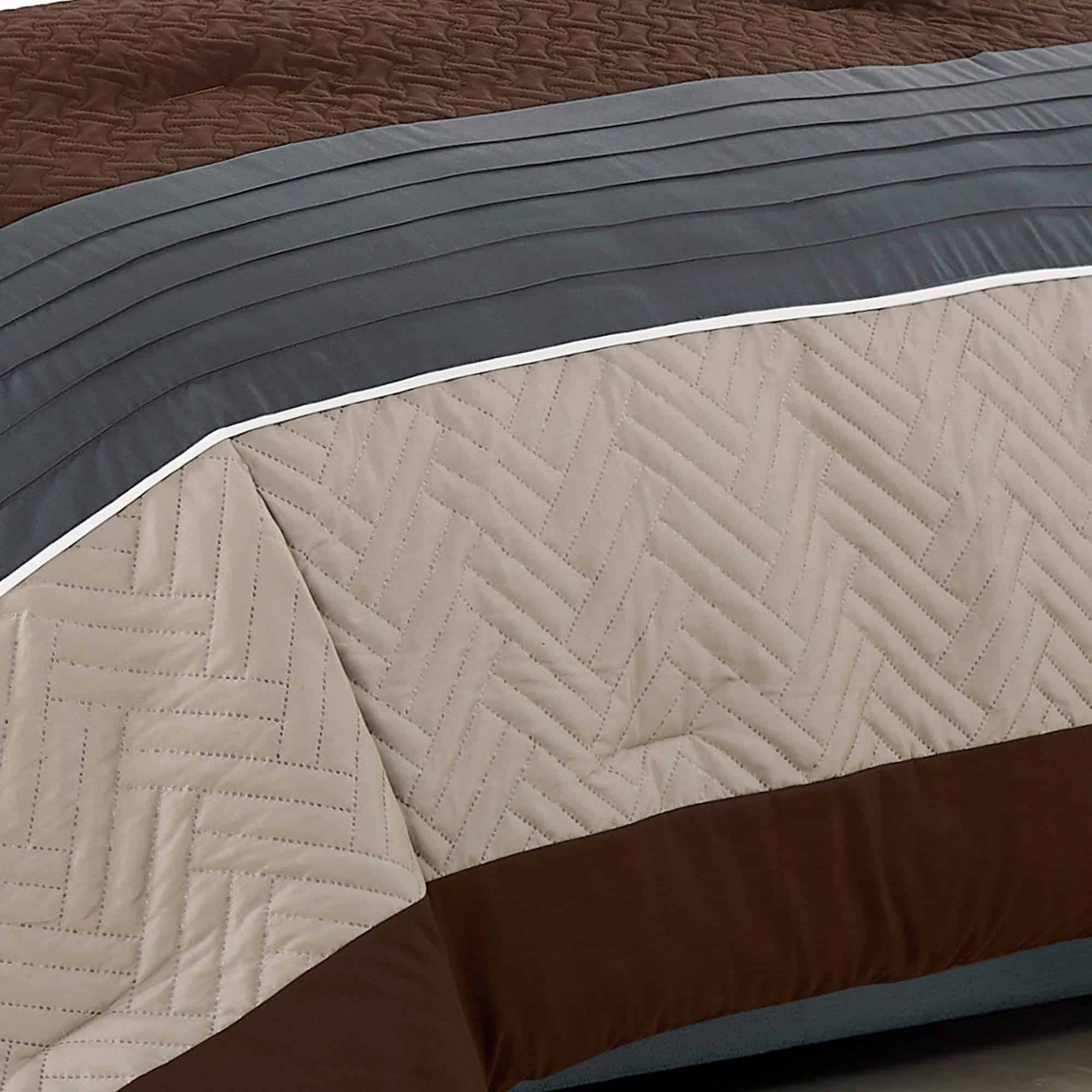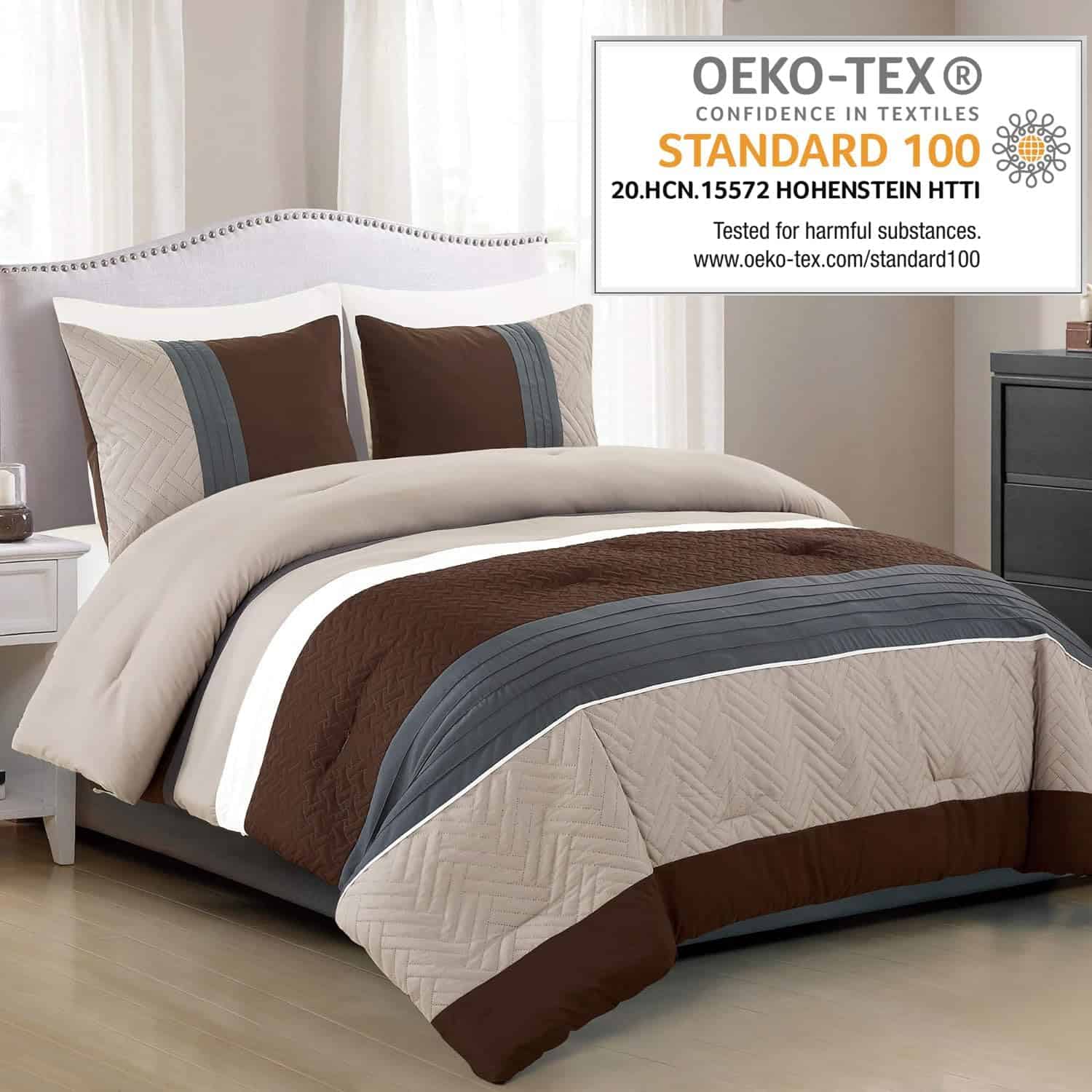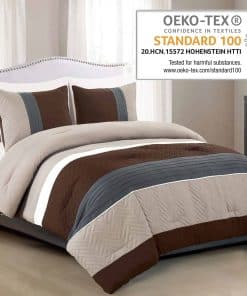 1. DISEÑO: El edredón moderno de varios colores llevará un tema moderno y limpio a tu dormitorio. Coordinar con fundas de almohada a juego y completar tu cama con un decoración de dormitorio de tema de colores marrón, beige, topo y gris. 2. MATERIAL: Hecho con microfibra cepillada, el edredón de alternativa al plumón es suave, ligero y no demasiado cálido, ideal para usar durante todas las estaciones del año. Decora tu hogar con esta ropa de cama moderna y elegante. 3. TAMAÑO: Viene en 3 tamaños para que elijas – Twin, Queen o King. 4. El tamaño Twin tiene 68 pulgadas de ancho x 86 pulgadas de largo + 1 funda de almohada de 20 x 26 pulgadas. 5. El tamaño Queen tiene 90 pulgadas de ancho x 90 pulgadas de largo + 2 fundas de almohada de 20 x 26 pulgadas. 6. El tamaño King tiene 104 pulgadas de ancho x 90 pulgadas de largo + 2 fundas de almohada de 20 x 36 pulgadas. 7. Lavar a máquina con agua fría, ciclo delicado sin lejía. Secar en secadora a baja temperatura o secar al aire. 8. Hecho en una fábrica certificada OEKO-TEX Standard 100, un sistema de certificación independiente que garantiza la confianza del cliente al asegurar que los textiles se prueban para sustancias nocivas y cumplen con altos estándares de seguridad del producto y ambientales.