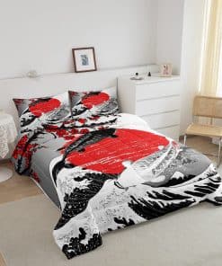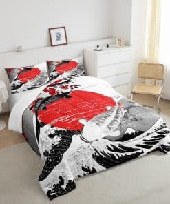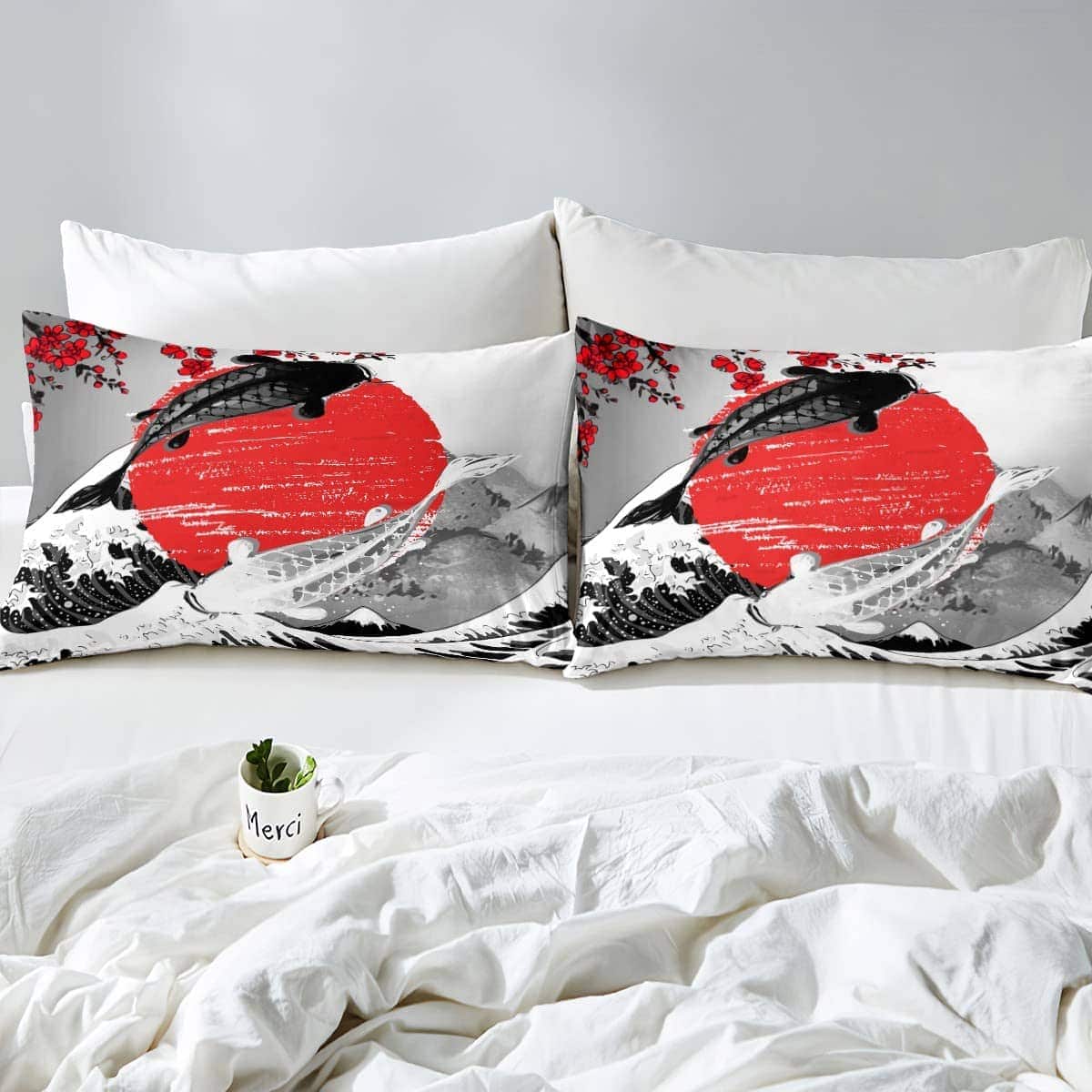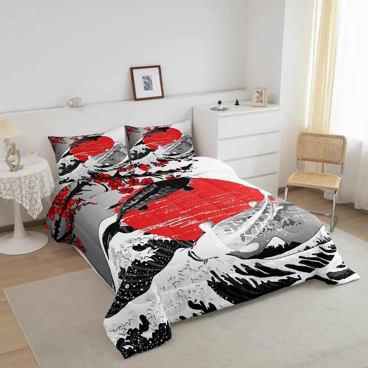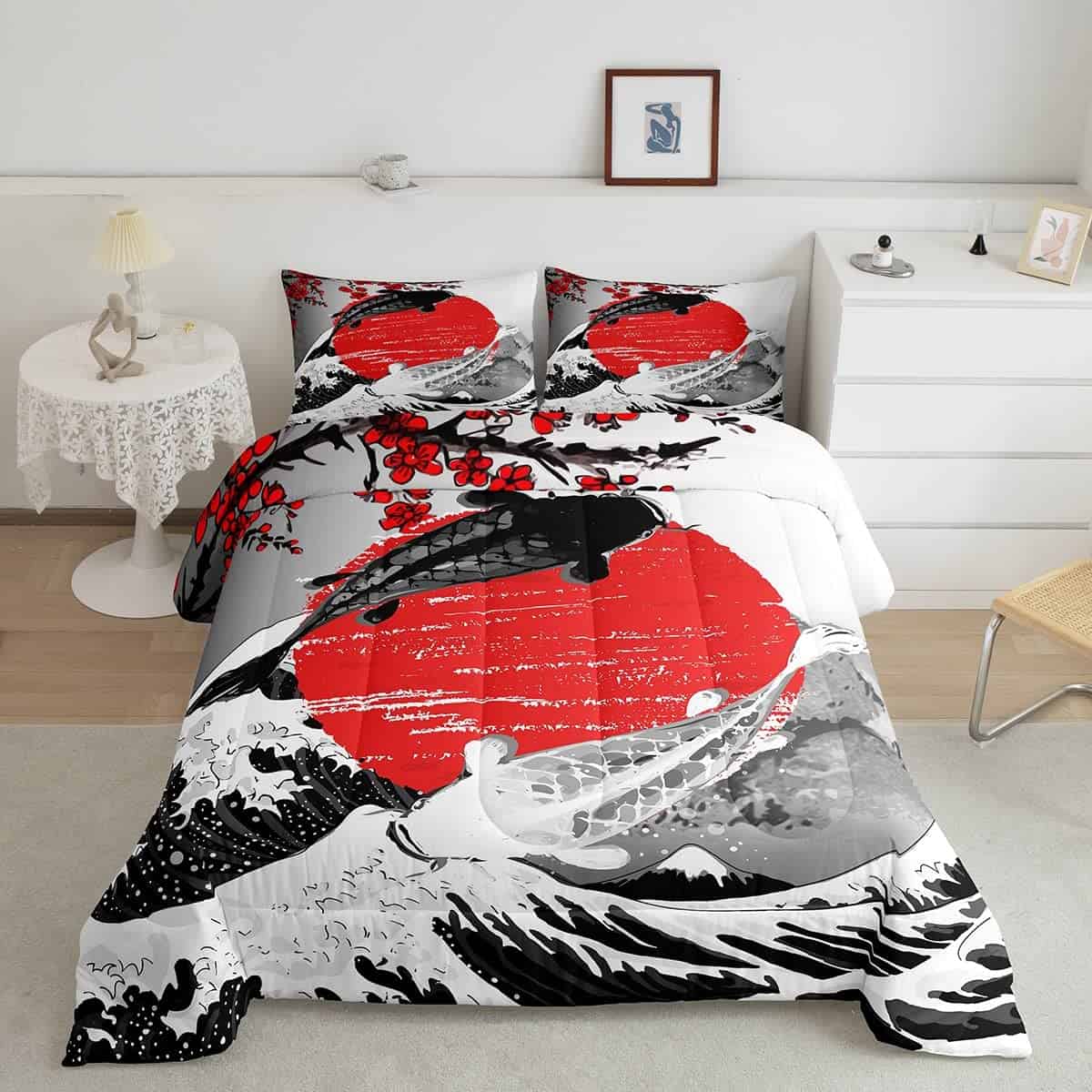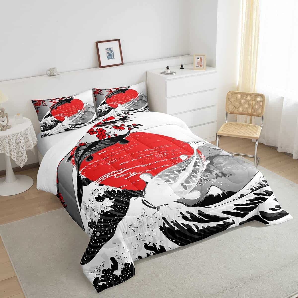 Juego de Edredón Montaña Fuji Estilo Japonés Peces Koi Tema