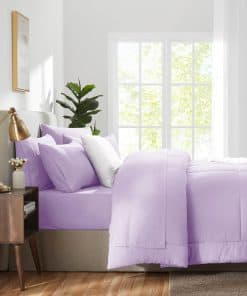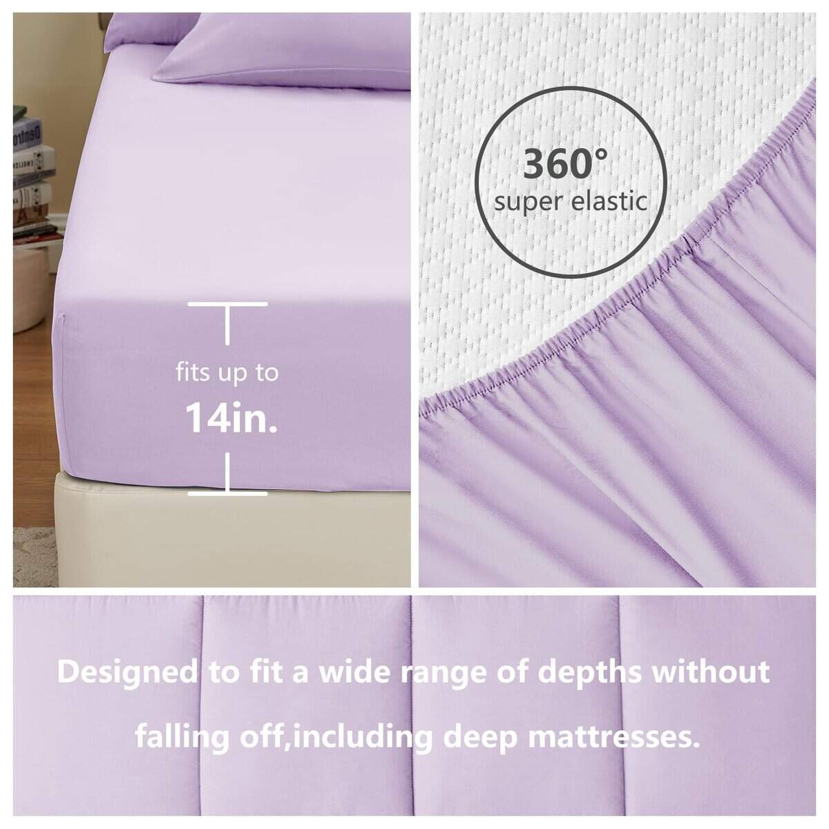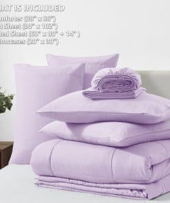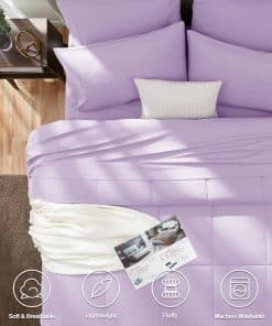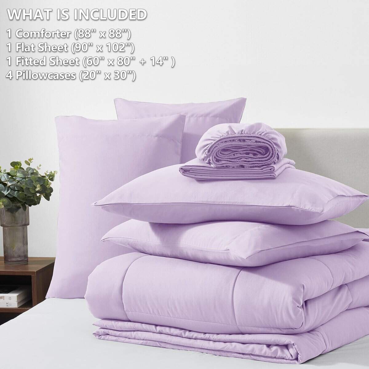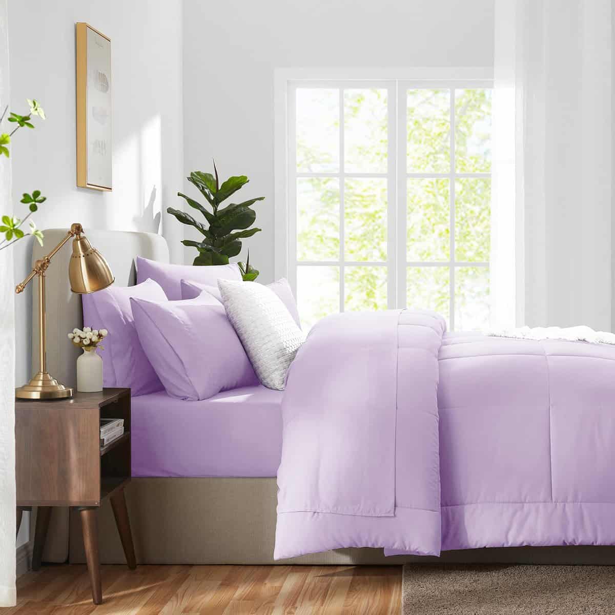 Juego de edredón morado claro CozyLux para cama queen 7 piezas Bed in a Bag Lavanda Juego de cama morado para mujeres Ropa de cama con edredón acolchado para todas las estaciones, Sábana, Sábana ajustable, Fundas de almohada