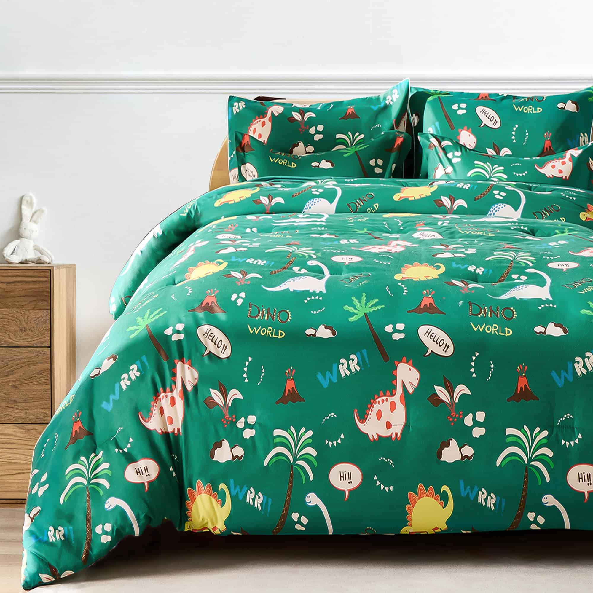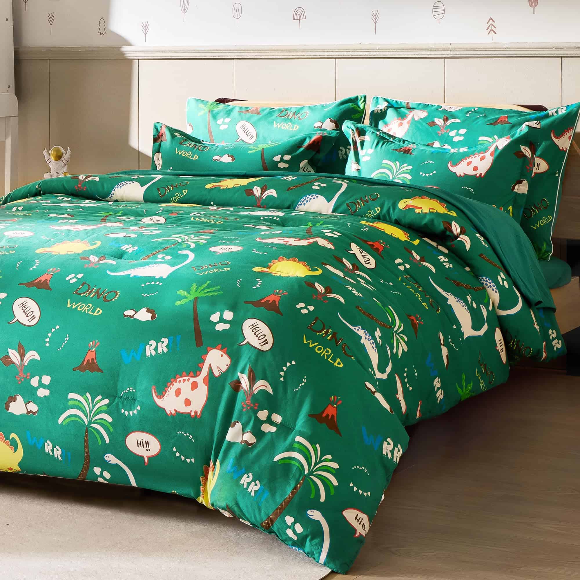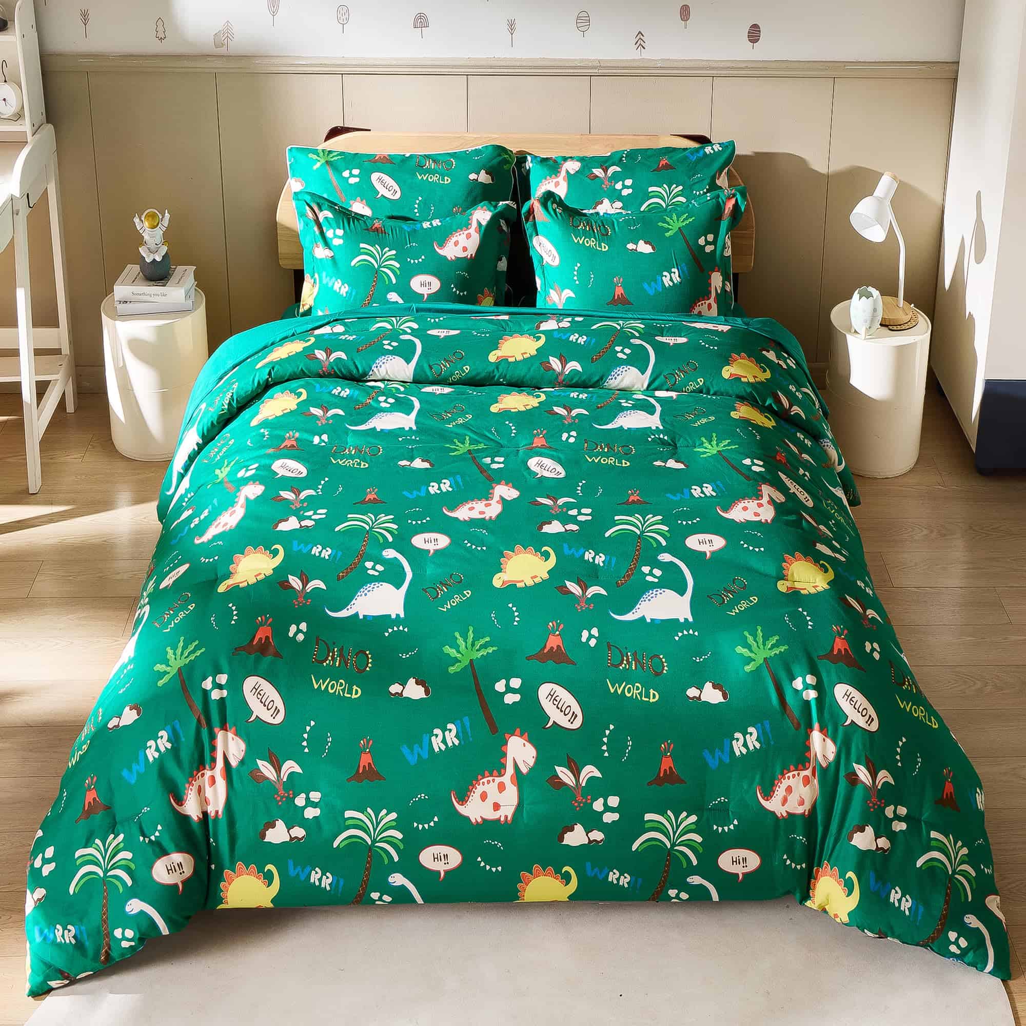 Juego de Edredón Morais Queen, 7 Piezas Dinosaurio Verde