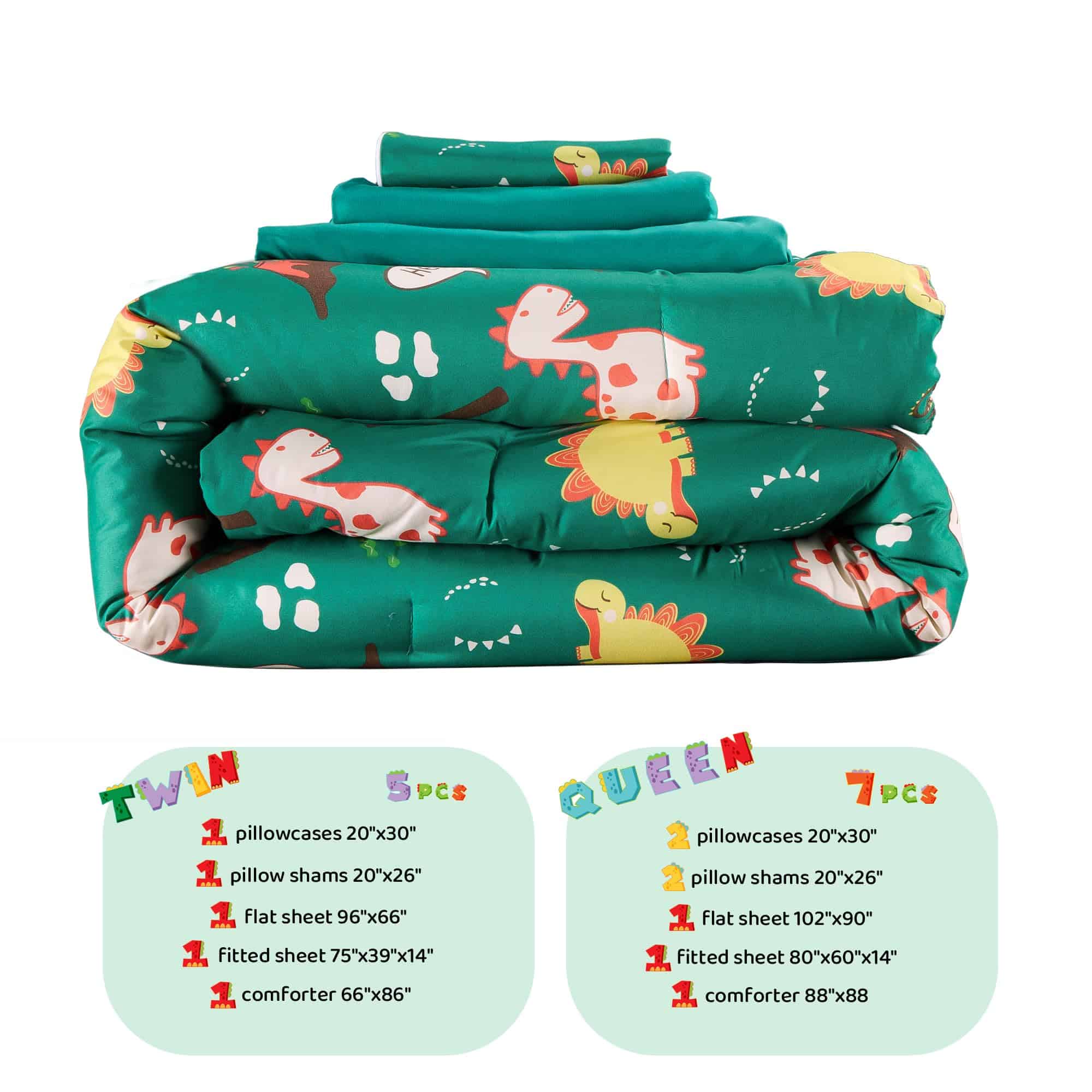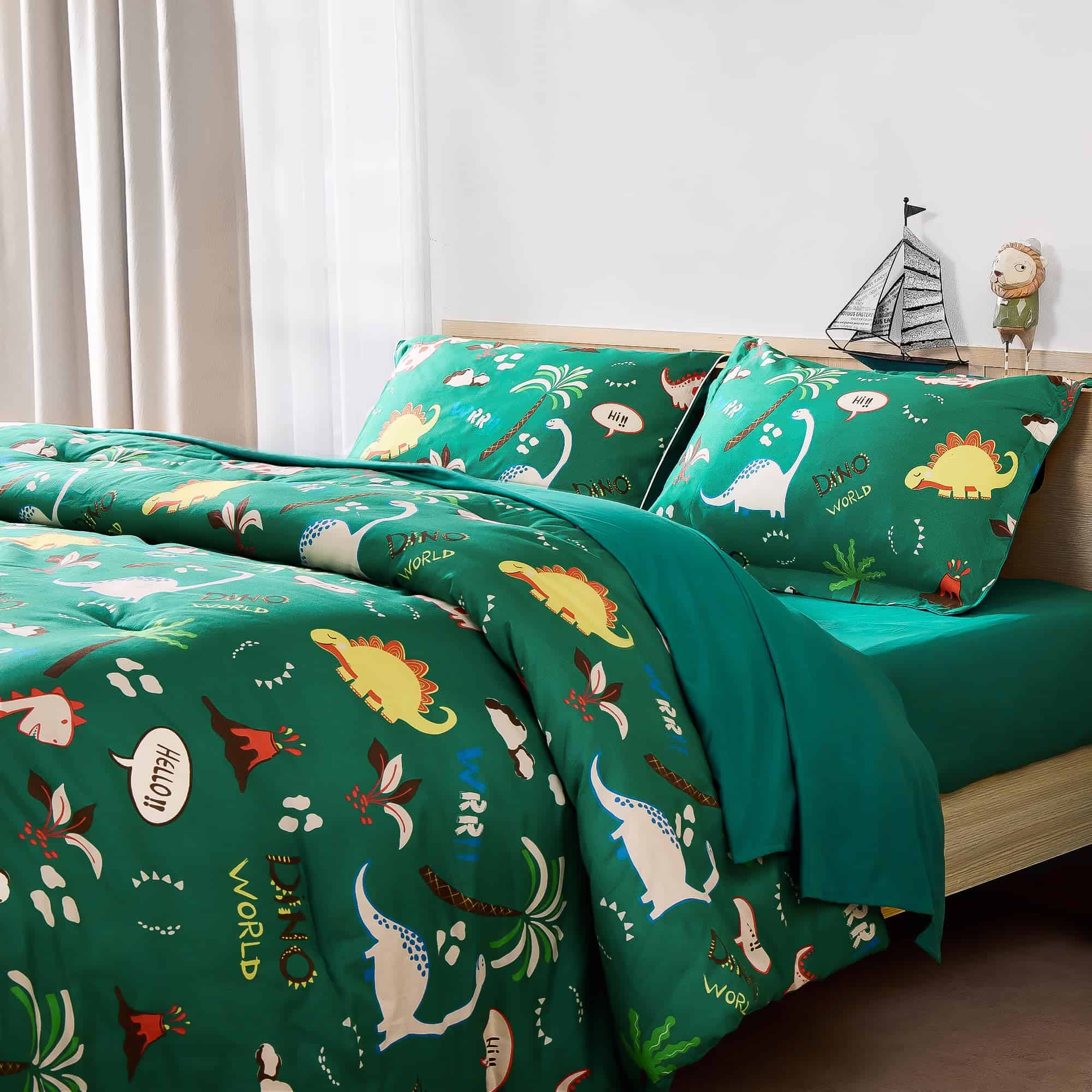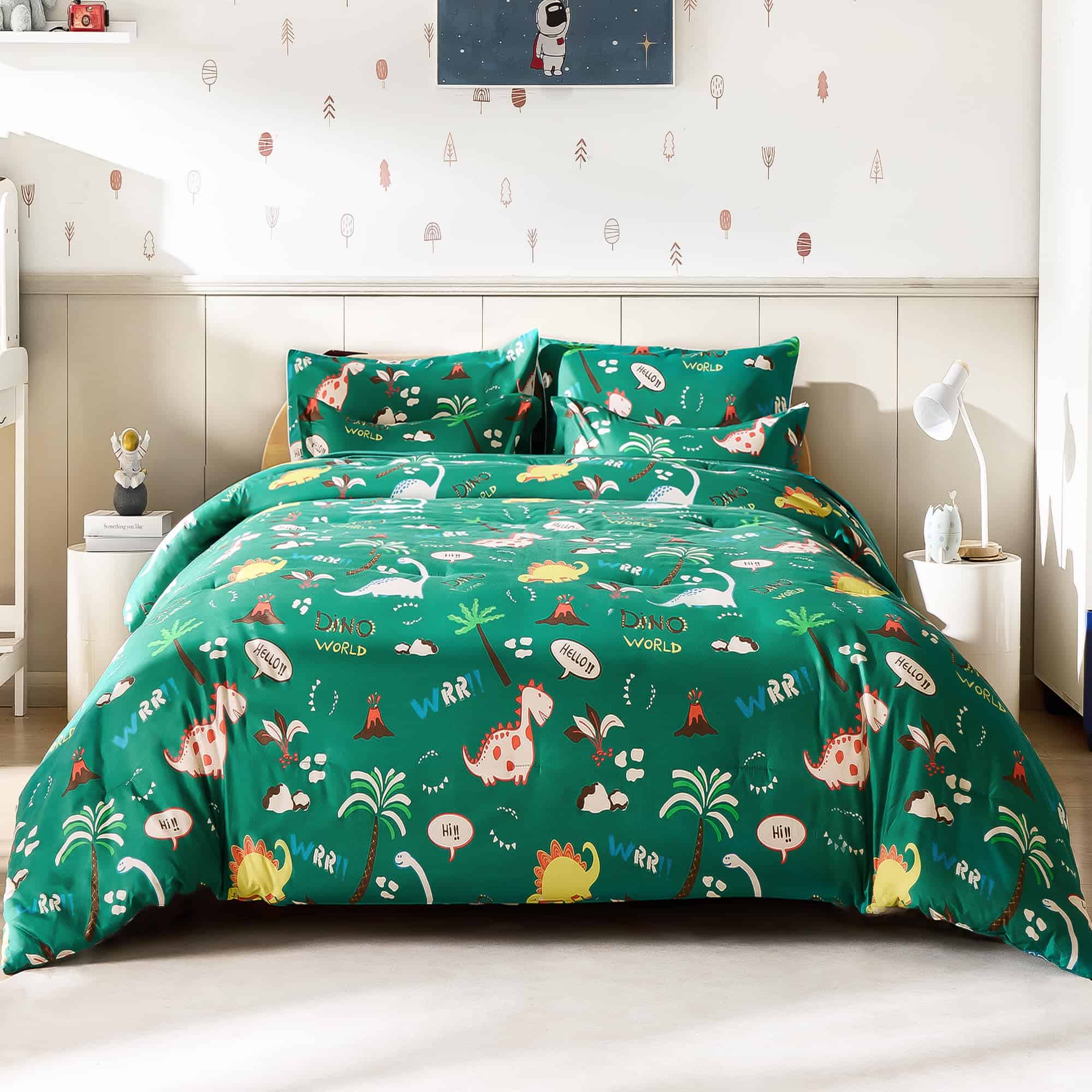 Juego de Edredón Morais Queen, 7 Piezas Dinosaurio Verde