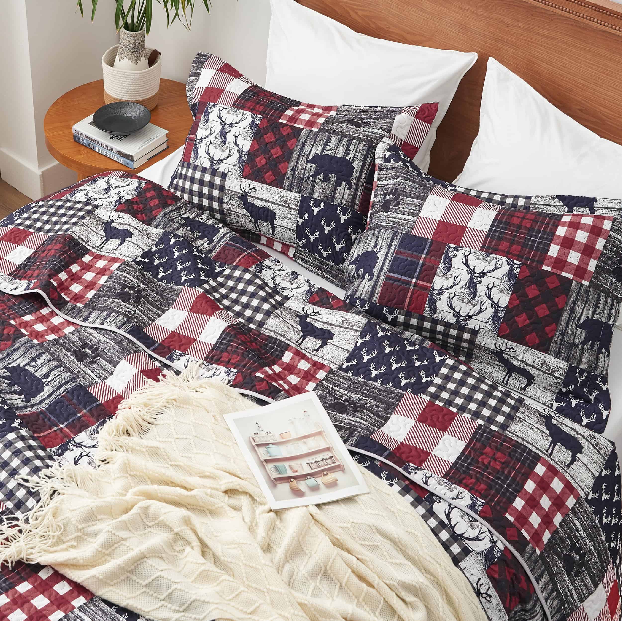 4. Multifuncional: El juego de edredón de cabaña puede servir como colcha, cubrecamas o edredón para proporcionar comodidad y suavidad. Es perfecto para decorar su dormitorio, habitación de invitados, habitación de niños, cabaña o casa de campo. También puede ser un regalo maravilloso para bodas, cumpleaños, Navidad, otras fiestas y muchas otras ocasiones.