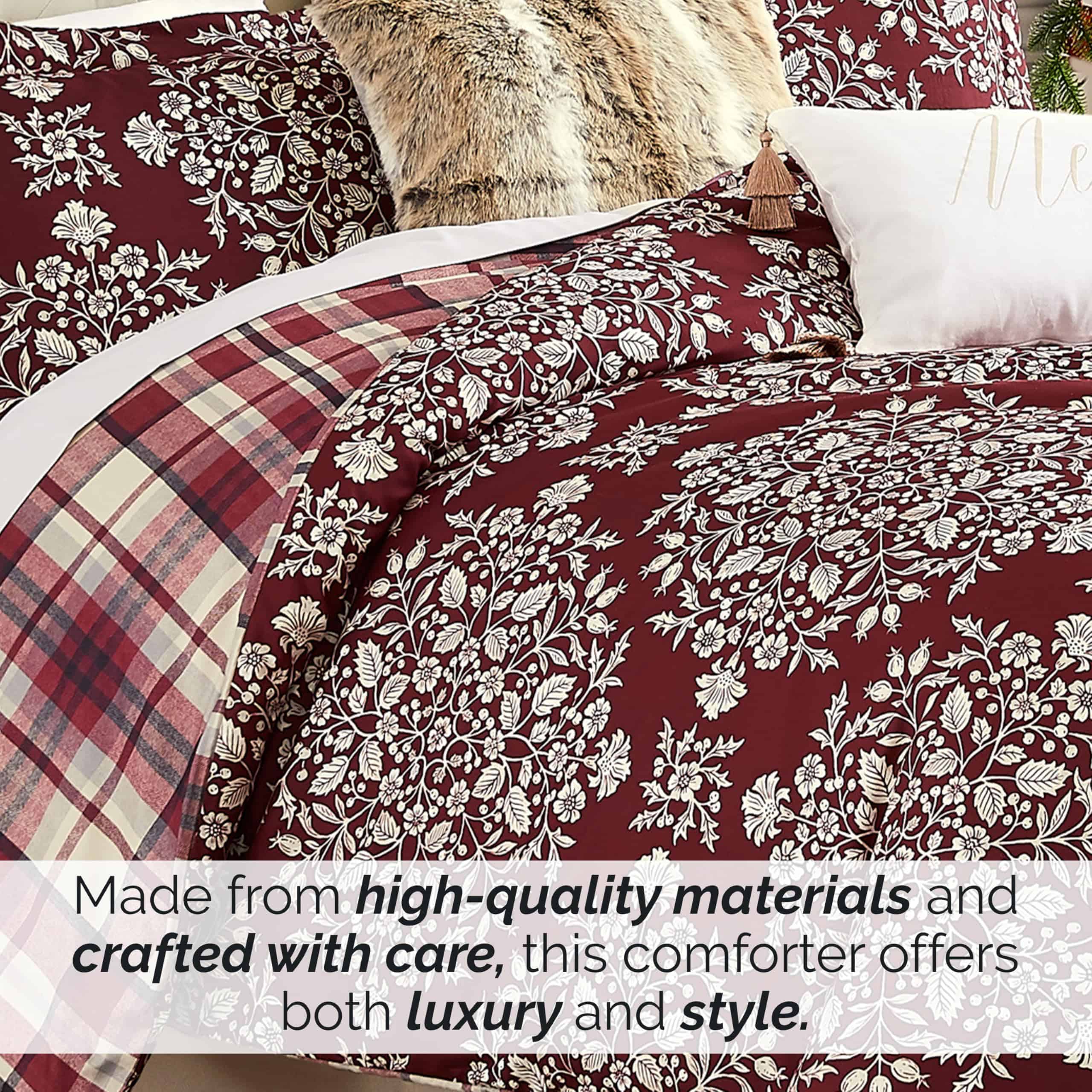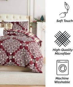 1. ¡JUEGO DE CAMA DE NAVIDAD INDIVIDUAL XL O TWIN EN UNA BOLSA: Complementa tu conjunto de ropa de cama navideña con este acogedor edredón, almohadas decorativas y juego de fundas de almohadas navideñas que pondrá a tu familia e invitados en el espíritu navideño! Renovación hermosa de ropa de cama navideña. 2. TRANSFORMA TU RECAMARA EN UN REFUGIO ACÓGEDOR DE NAVIDAD: Juego de edredón individual rojo con tema navideño con ramas de acebo en un lado y un estampado festivo rojo a cuadros en el otro. Las almohadas decorativas navideñas y las fundas de almohadas navideñas completan el look. 3. TODO LO QUE NECESITAS PARA RENOVAR TU ROPA DE CAMA PARA NAVIDAD: Divertido y hermoso juego de edredón individual XL para Navidad completo con almohadas navideñas para cama o sofá y dos fundas de almohadas decorativas navideñas. Agrega algo de espíritu navideño con nuestra decoración navideña para dormitorios. 4. EDREDÓN INDIVIDUAL XL DE NAVIDAD EXTRA SUAVE, FÁCIL DE CUIDAR, LAVABLE A MÁQUINA: Edredón de microfibra cepillada doblemente suave que se vuelve más suave en cada lavado, mientras que la ropa de cama resistente a las arrugas, que no hace bolitas y resiste el pelo de mascotas se mantiene como nueva, lavado tras lavado. 5. ESPECIFICACIONES DEL JUEGO DE EDREDÓN DE NAVIDAD INDIVIDUAL/TWIN XL: (4 Piezas) Un Edredón: 69 pulgadas de ancho x 98 pulgadas de largo; Un Funda de Almohada Estándar: 20 pulgadas x 26 pulgadas; Una Funda para Almohada Decorativa: 18 pulgadas x 18 pulgadas; Una Almohada Decorativa (rellena): 12 pulgadas x 20 pulgadas