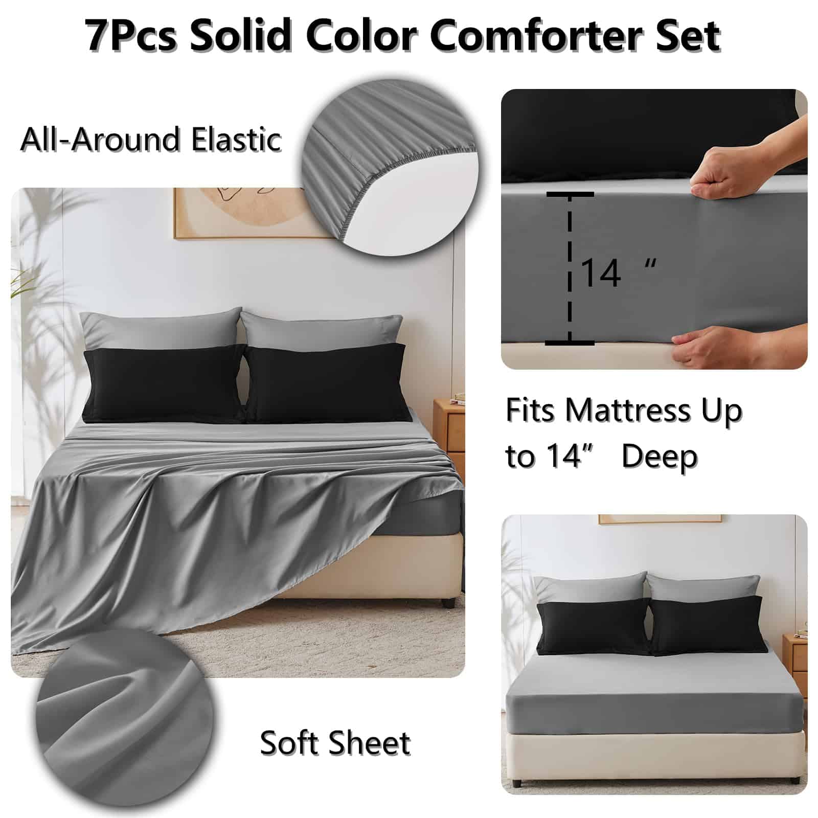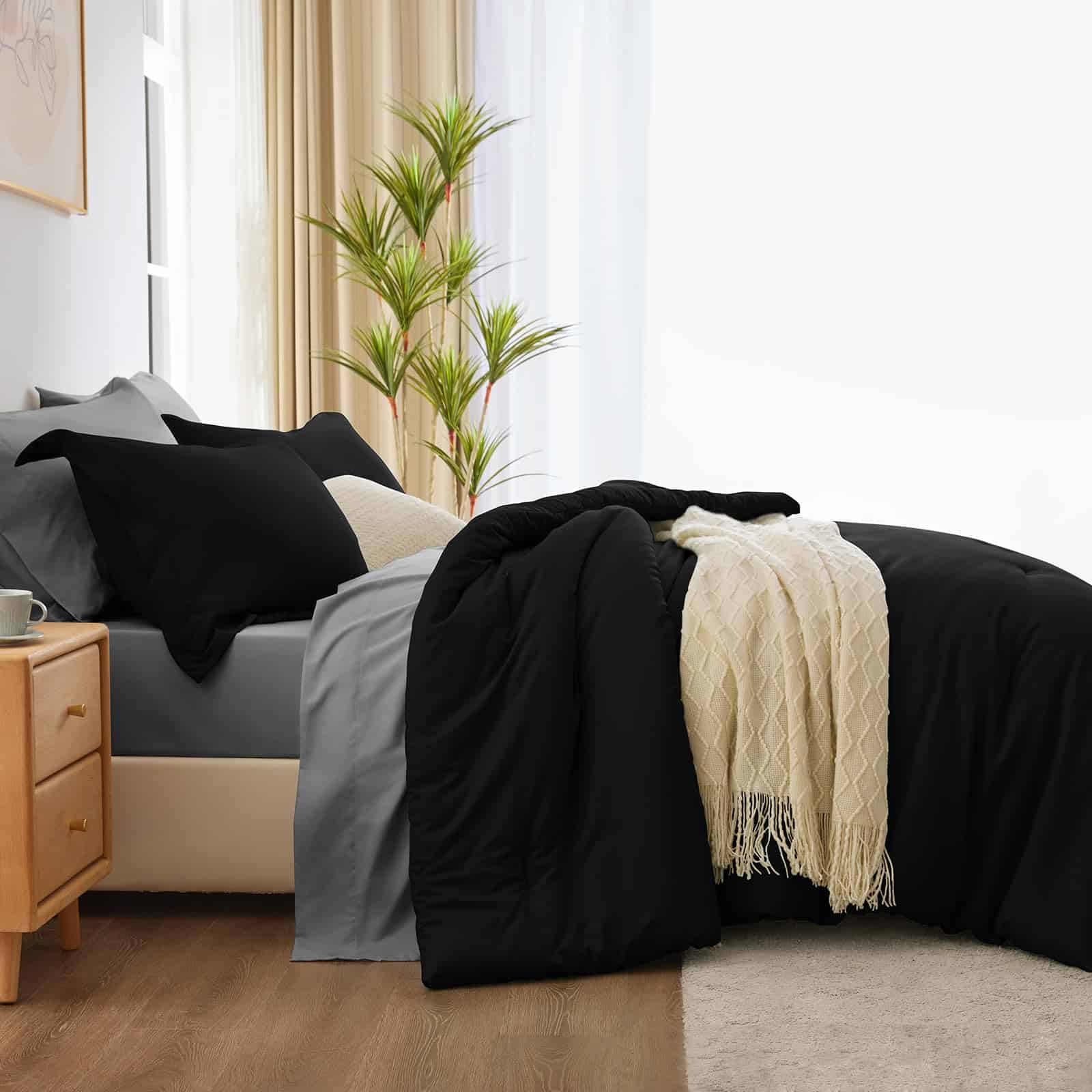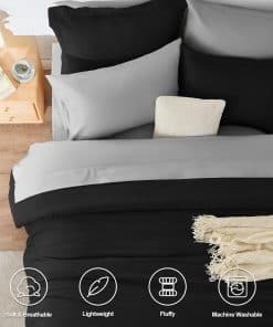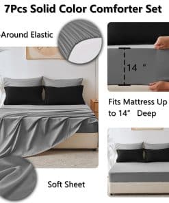 Juego de edredón negro CozyLux en tamaño King de 7 piezas