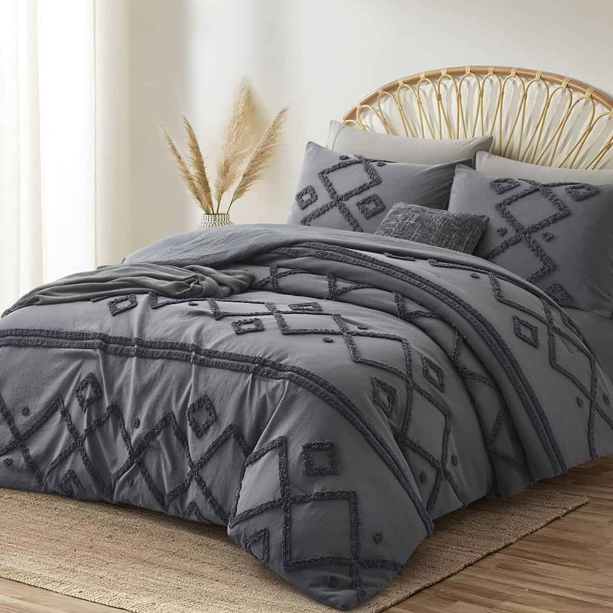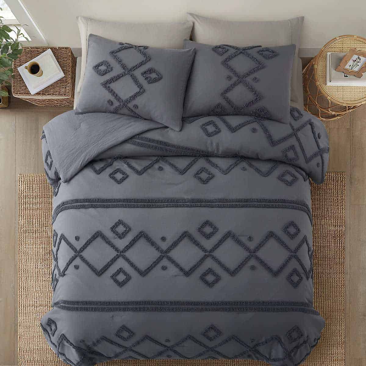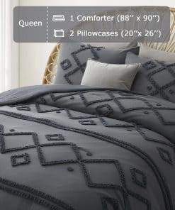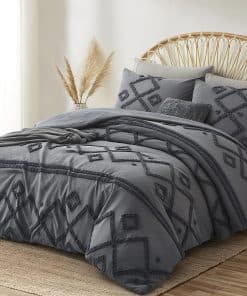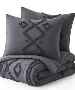 Nuestro juego de edredón Oli Anderson Dark Grey Queen es perfecto para quienes buscan una combinación de elegancia y comodidad en su hogar. El diseño tufted con patrón geométrico le da un toque sofisticado a cualquier habitación, mientras que el relleno de poliéster de alta calidad proporciona una sensación esponjosa y transpirable. La tela suave mantiene el calor de manera óptima, permitiéndote disfrutarlo durante todo el año. Además, el edredón shabby chic Oli Anderson ha sido cuidadosamente diseñado para evitar que el relleno se desplace o se agrupe después de cada lavado. El paquete incluye un edredón gris de tamaño Queen y dos fundas de almohada a juego, todo lo que necesitas para darle un toque acogedor a tu dormitorio. Para mantenerlo en óptimas condiciones, recomendamos lavarlo a máquina en frío y secarlo a baja temperatura. Atrévete a transformar tu espacio con nuestro juego de edredón Oli Anderson Dark Grey Queen.