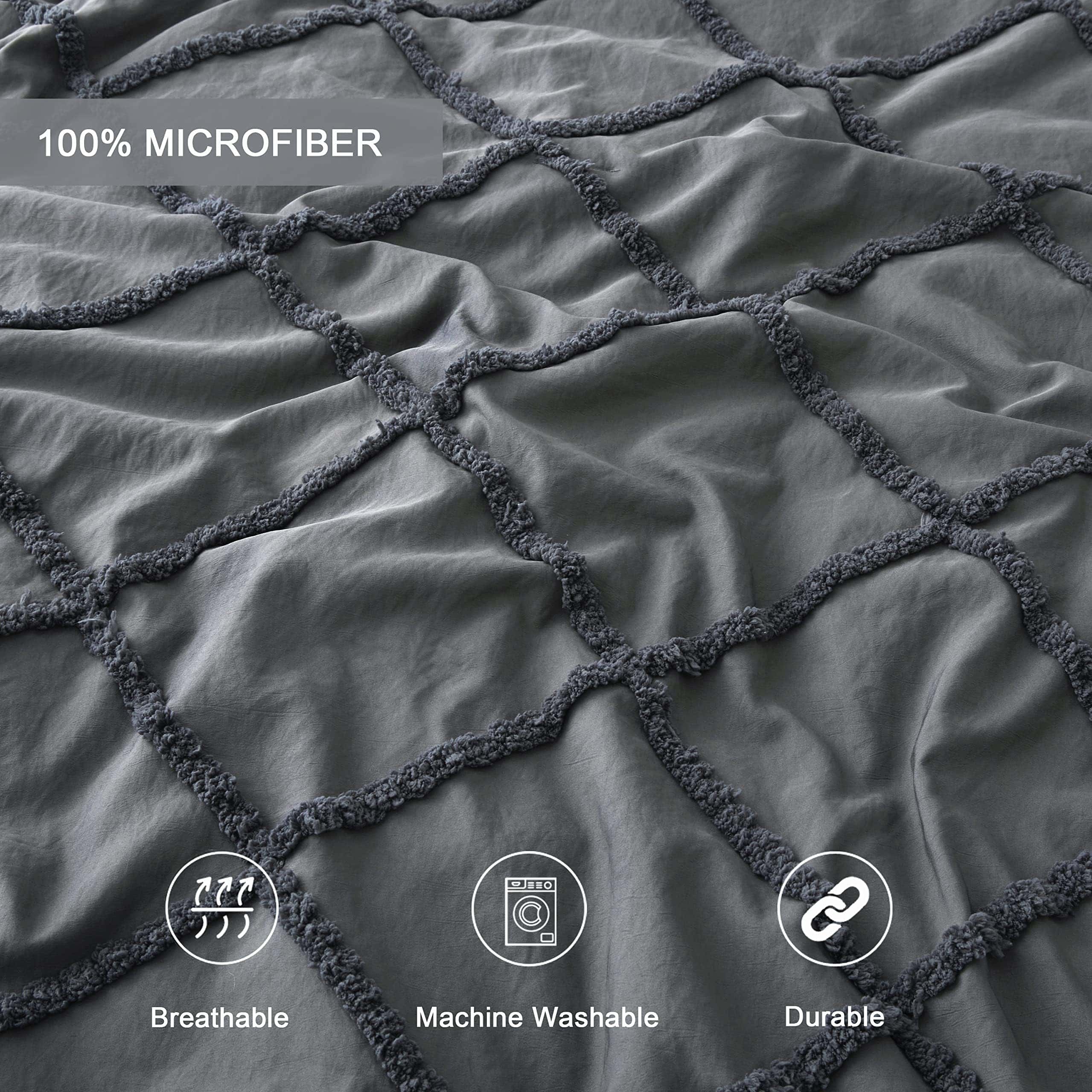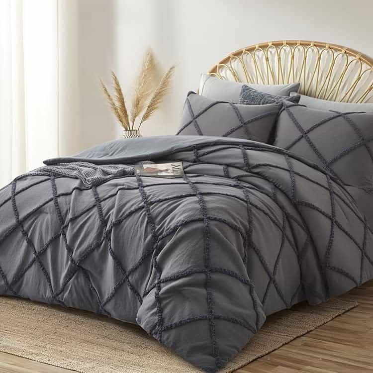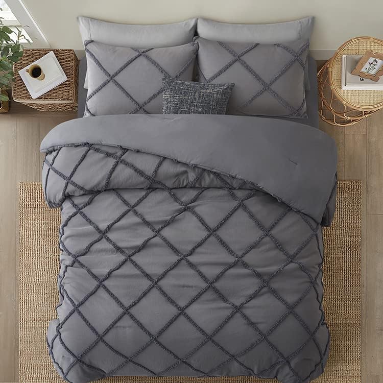1. Diseño de Adorno – Nuestro edredón boho gris con un patrón de adorno geométrico crea una atmósfera elegante en tu dormitorio, sala de estar o cualquier otro lugar. 2. Suave y Transpirable – El set de ropa de cama está relleno de poliéster de alta calidad, que ofrece una óptima transpirabilidad y esponjosidad. La tela suave te mantiene acogedor y cálido, para que puedas disfrutarlo en todas las estaciones. 3. Detalles Considerados – El edredón shabby chic de Oli Anderson tiene un diseño oculto de costura ordenada que evita que el relleno se desplace o se apelmace después de lavarlo. 4. Paquete y Tamaño – El set de edredón tamaño Queen incluye 1 edredón gris (88″x88″) y 2 fundas de almohada (20″x26″) sin relleno de almohada. 5. Cuidado Fácil – Lavar a máquina en frío por separado en un ciclo suave/delicado. Secar a baja temperatura. Debido al empaque sellado al vacío de los edredones, golpéalo suavemente para que quede esponjoso antes del primer uso.