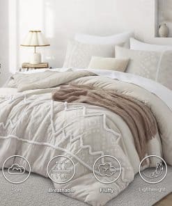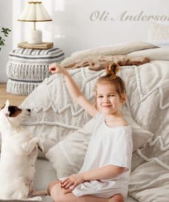 Nuestro set de edredón Oli Anderson está hecho con una superficie de microfibra premium 100%, relleno de fibra de poliéster ultra suave de alta calidad, que combina confort y transpirabilidad, permitiéndote relajarte y aclarar durante todo el día y la noche, con una textura sedosa que te hace sentir como si estuvieras cayendo en una nube. Esta ropa de cama con nuevos avances en la artesanía siempre mantendrá un buen acabado esponjoso y ligero cuando esté extendido en la cama, resistente a la suciedad y sin arrugas con un suave golpeteo. Inspirado en estilos bohemios tradicionales, este juego de ropa de cama king presenta un patrón geométrico sofisticado impreso con relieve y lindos mechones de chevrón, añadiendo características exóticas y modernas a tu dormitorio, mostrando también tu gusto único, una buena opción de decoración para regalar en vacaciones a familiares y amigos. Lava el set de ropa de cama en la lavadora con agua fría, secado al sol o a baja temperatura en secadora está bien, pero por favor no uses cloro. Consejo de calentamiento: La ligera aglomeración y desplazamiento son normales, la paciencia y el suave golpeteo del edredón seco al sol harán que vuelva a esponjarse.