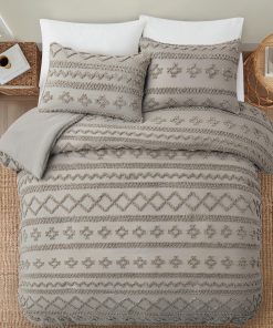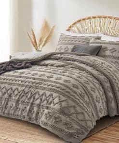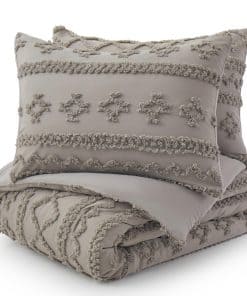4. Paquete y Tamaño: El juego de edredón tamaño King incluye 1 edredón gris claro (102×88 pulgadas) y 2 fundas de almohada (20×36 pulgadas) sin inserto de almohada.