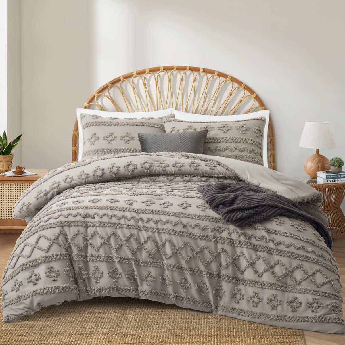 1. Diseño Capitonado: Nuestro edredón boho gris claro con un patrón geométrico capitonado crea un ambiente elegante en tu dormitorio, sala de estar o cualquier otro lugar.