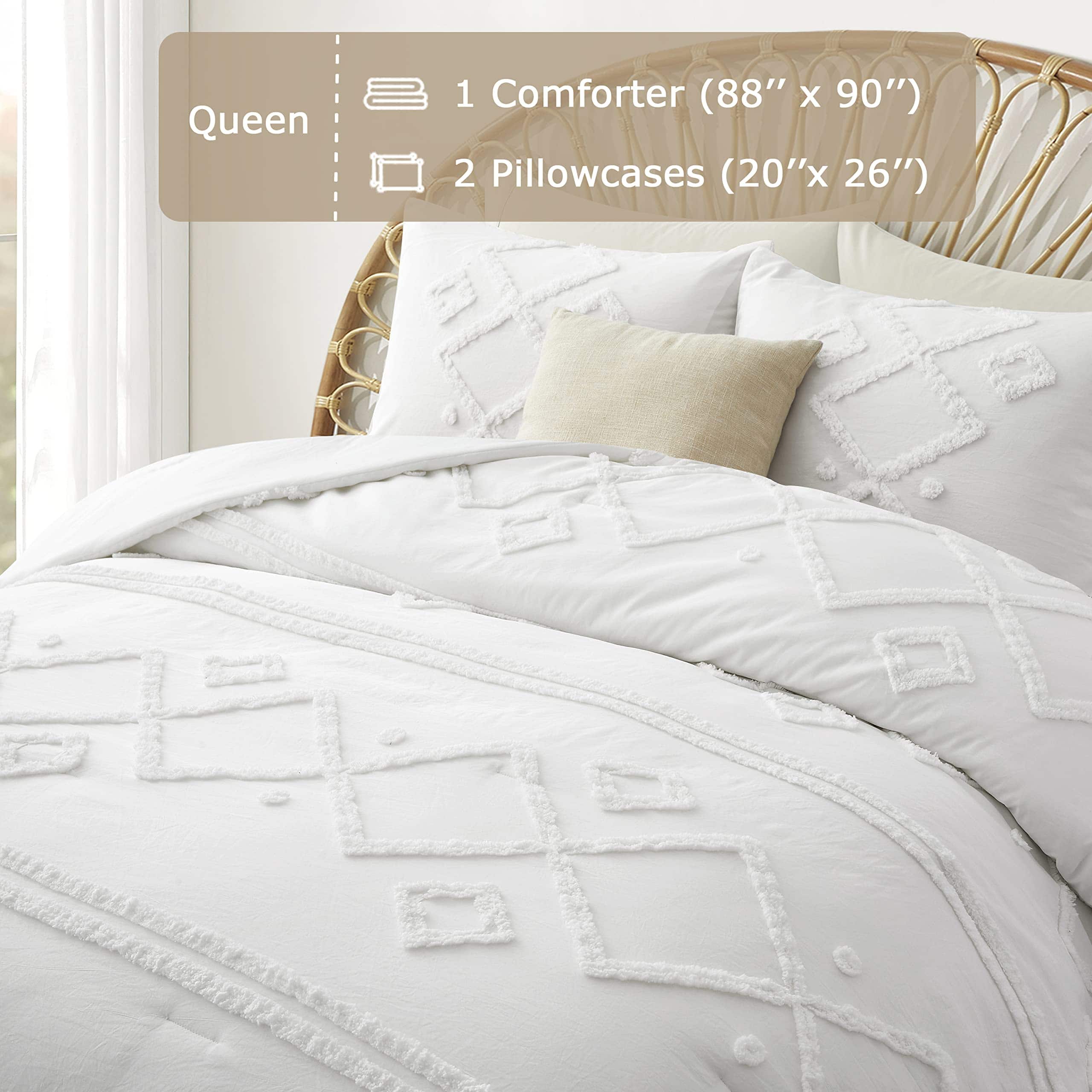 4. Paquete y Tamaño: El juego de edredón tamaño Queen incluye 1 edredón blanco (90×88 pulgadas) y 2 fundas de almohada (20×26 pulgadas) sin inserto de almohada.