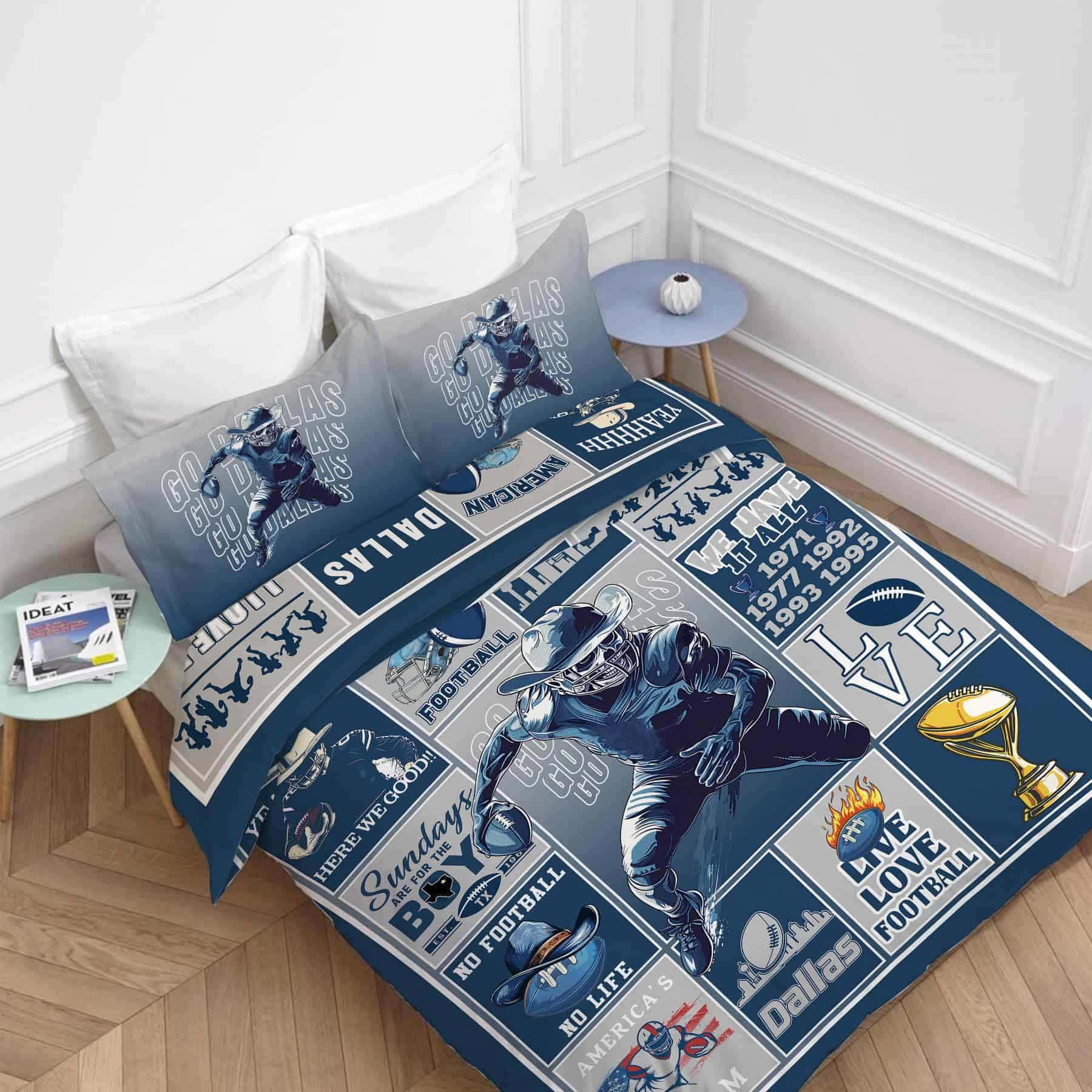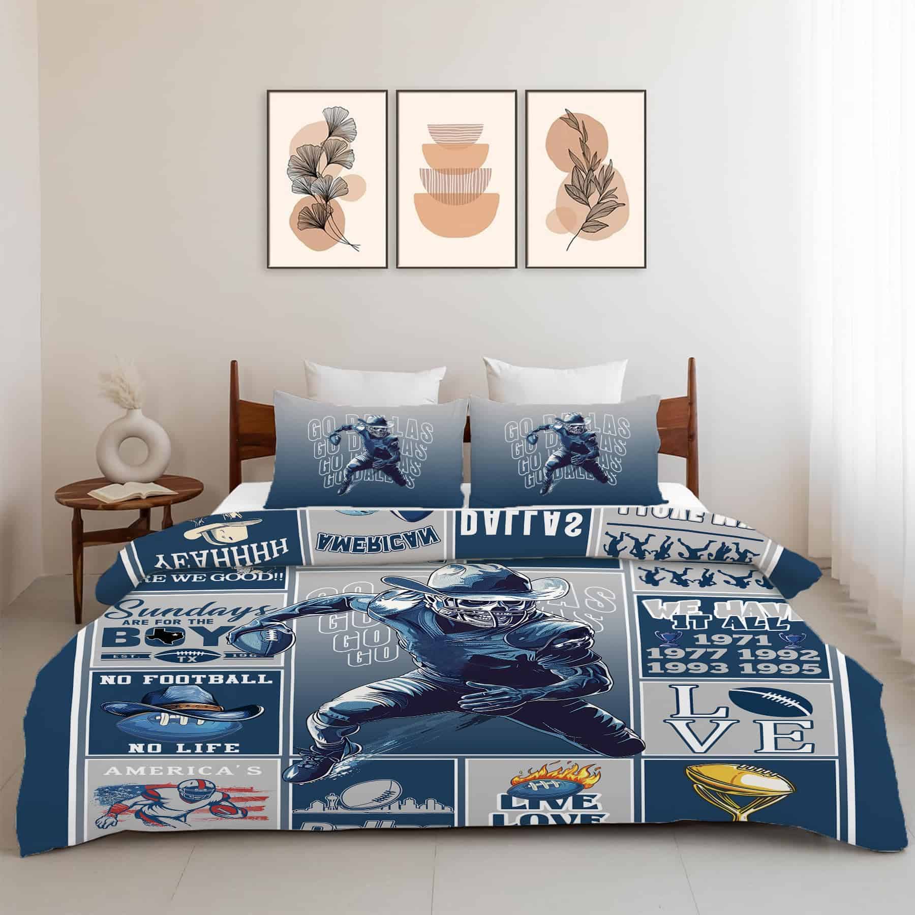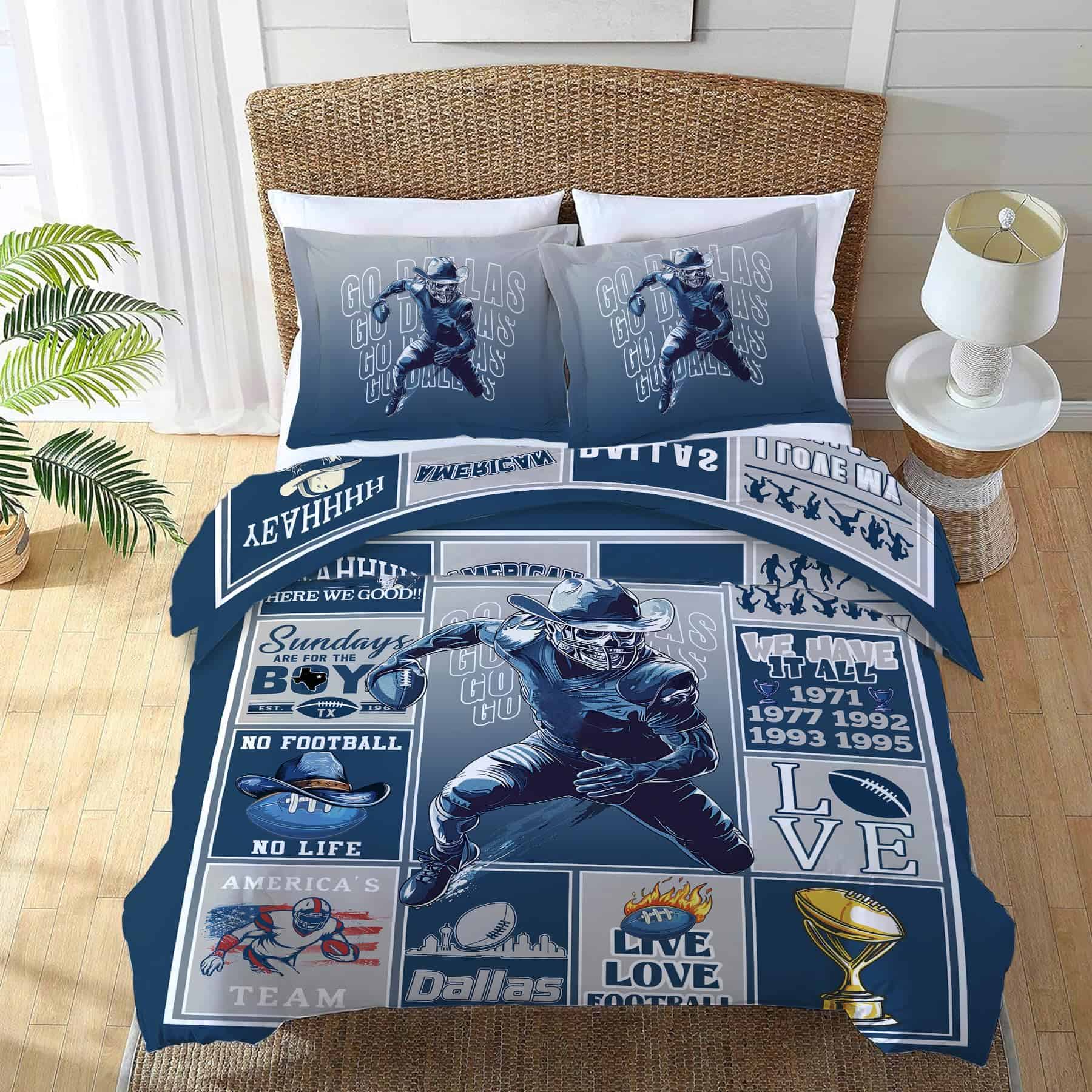 Este set de edredón Oradabo está diseñado para los amantes del fútbol americano y rugby, ofreciendo un diseño exclusivo inspirado en los equipos deportivos. El material de alta calidad garantiza una noche de sueño confortable y placentera, siendo suave, transpirable y amigable con la piel. La funda nórdica y fundas de almohada incluidas en el set proporcionan una solución completa de ropa de cama con un tema cohesivo, ideal para un look coordinado en tu dormitorio. Con un diseño temático de fútbol único según las características del equipo, este set crea un fuerte ambiente deportivo que es perfecto para todos los fanáticos del fútbol. Fácil de cuidar, este set es lavable a máquina para una limpieza sencilla, manteniendo los colores vibrantes y la suavidad sin requerir cuidados especiales. Ya sea para uso personal o como regalo, este set de ropa de cama de 3 piezas es una elección práctica y perfecta para los amantes del fútbol, ofreciendo una forma de mostrar su amor por el deporte.