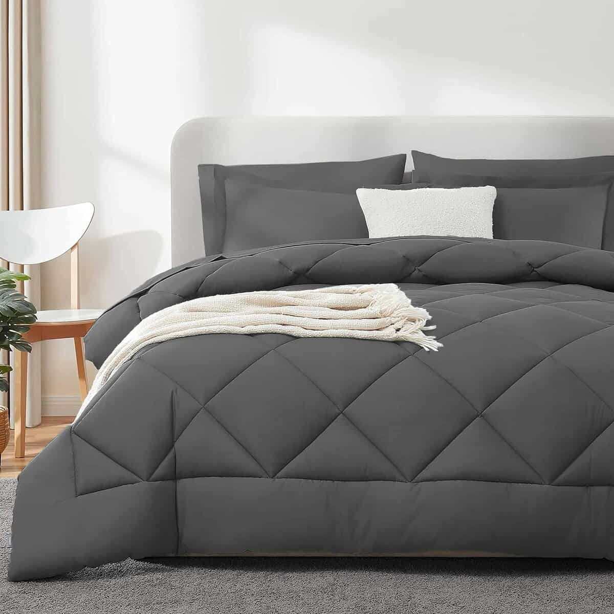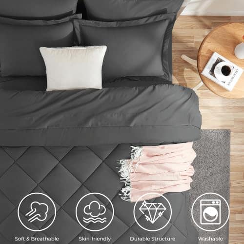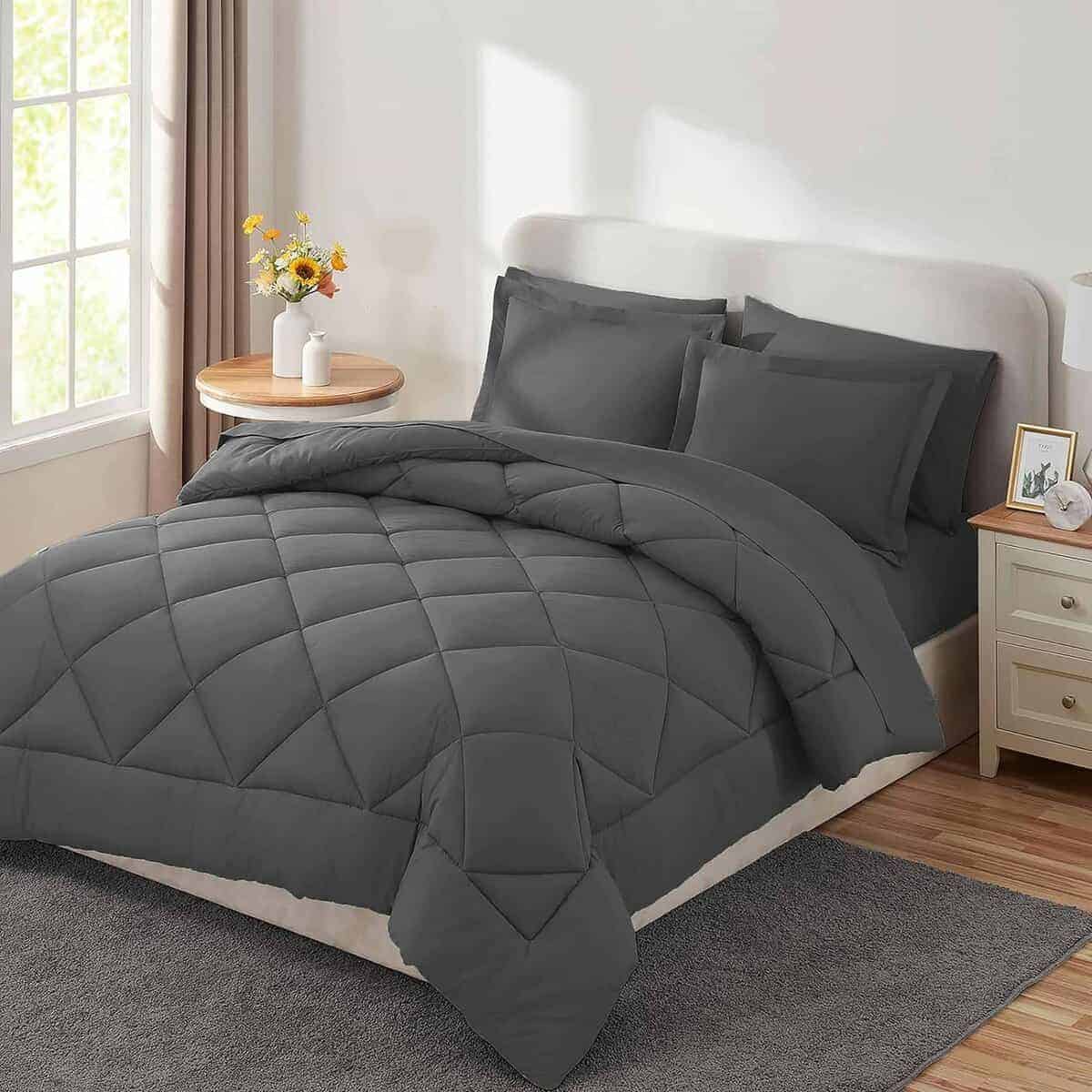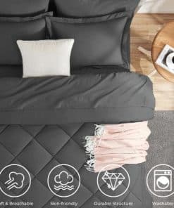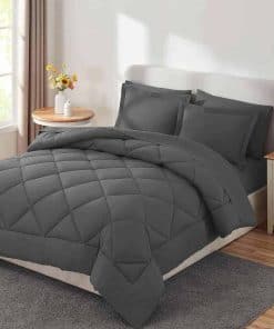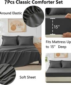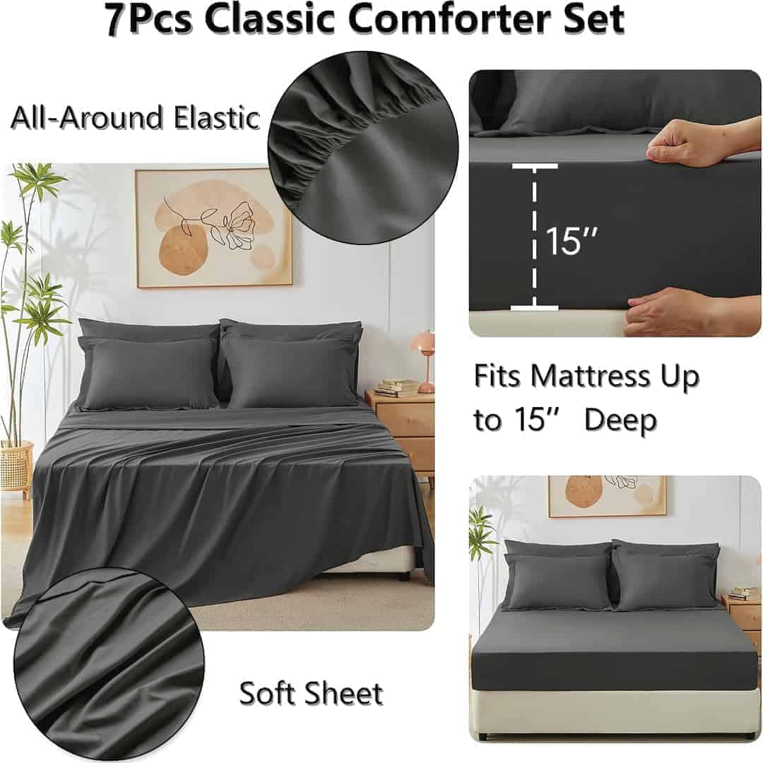 PERFECTO PARA TODAS LAS ESTACIONES – Queremos que estés cómodo todo el año. Tener que sacar el viejo y pesado edredón de plumón para el invierno es una molestia. Te traemos un edredón diseñado para ser utilizado durante todo el año. Mantente abrigado en el invierno y fresco en el verano. Nuestra microfibra doble cepillada transpirable fue diseñada pensando en ti. Sé cómodo y dale un toque de elegancia hoy con este hermoso set de 7 piezas.