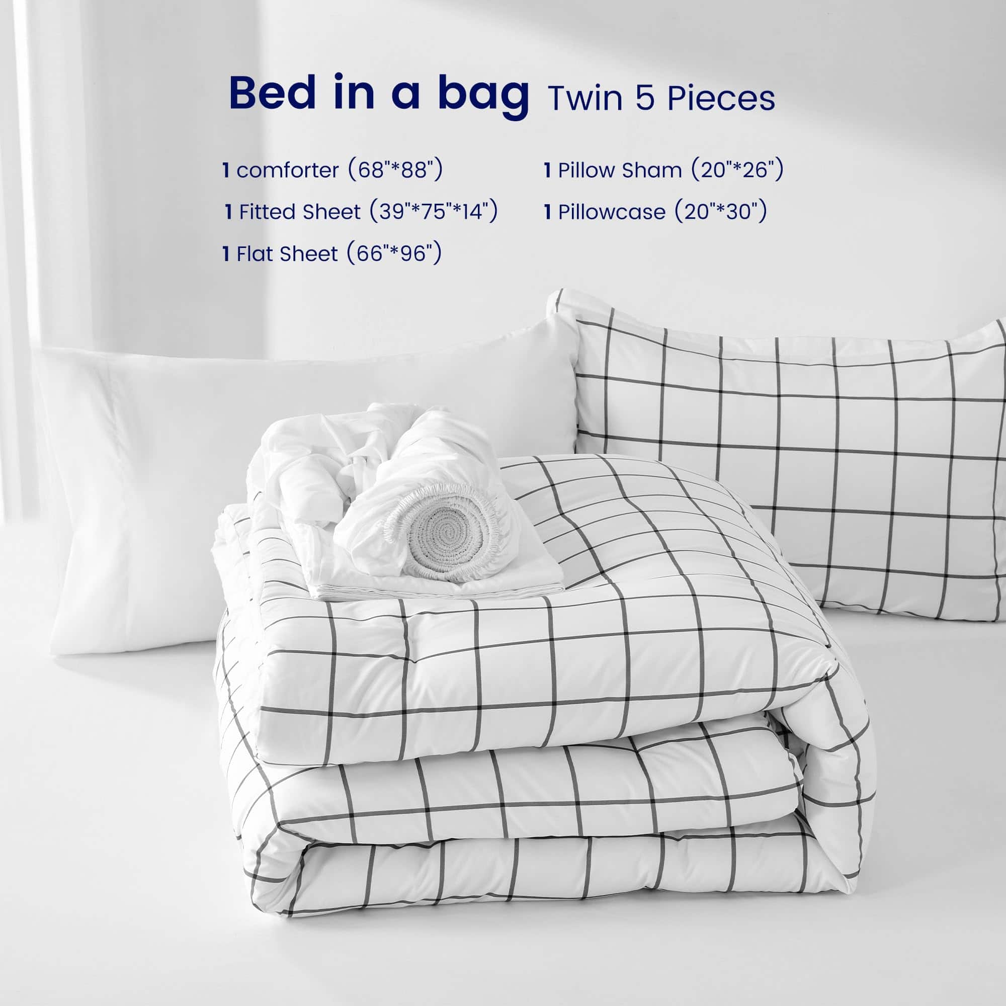 3. LO QUE PUEDES OBTENER – Este juego de edredón twin incluye 1 Edredón (68″ 88″) 1 Sábana Ajustable (39″ 75″+14″) 1 Sábana Plana (66″ 96″) 1 Funda de Almohada (20″ 26″) 1 Funda de Almohada (20″ 30″).