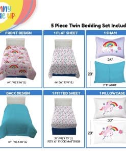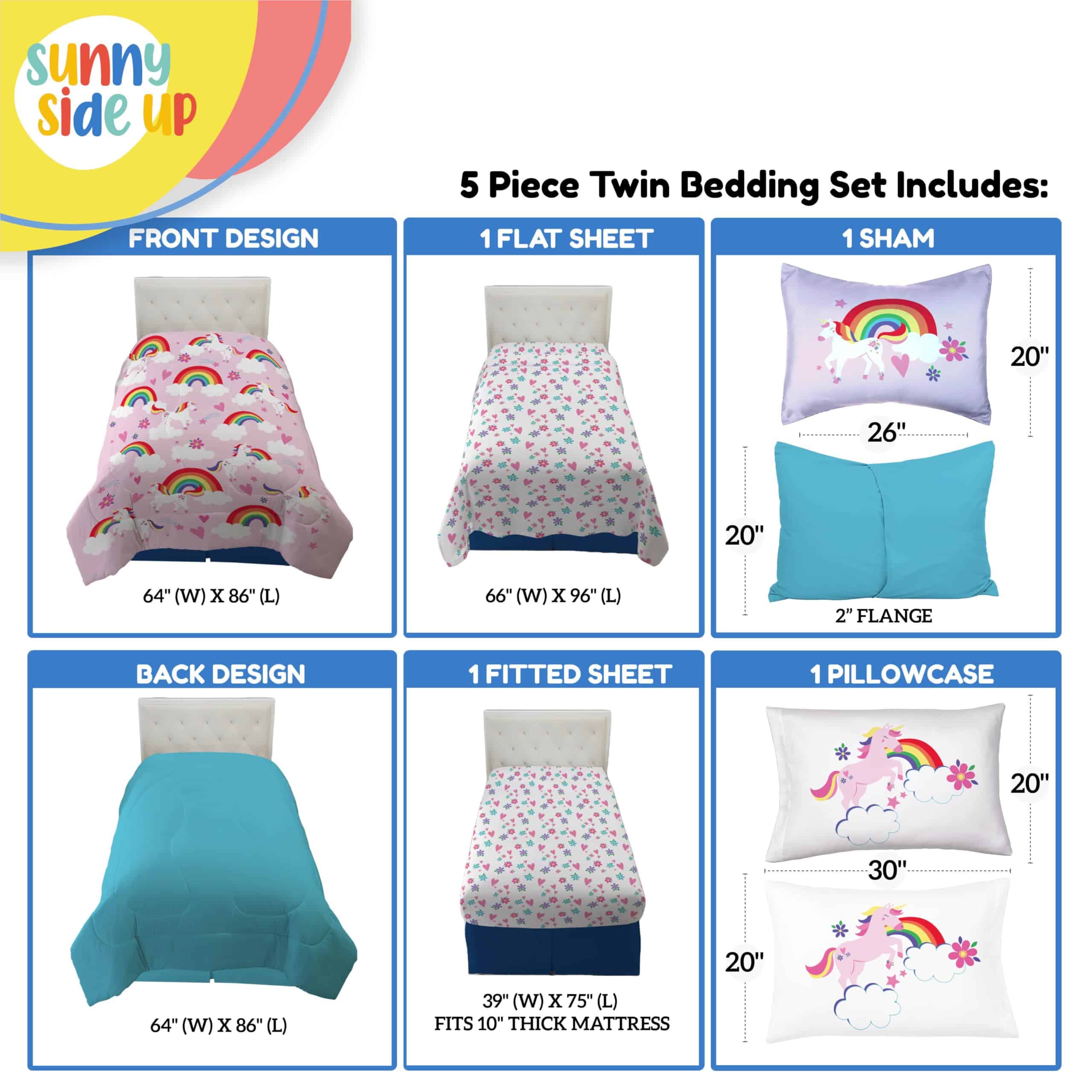 Haz de la hora de dormir la mejor parte del día con nuestro conjunto de cama caprichoso, que presenta un diseño de arcoíris y unicornio absolutamente adorable, en colores vibrantes. Nuestro suave material de microfibra permitirá a su hijo dormirse y comenzar los sueños alegres. Nuestro tejido transpirable es súper suave y genial todo el año! Para limpiar, lavar a máquina en frío. Secar en ciclo suave. Proporcione a su hijo los sueños más dulces con nuestras otras colecciones de ropa de cama: Bedding y accesorios coordinados disponibles (se venden por separado). Descubre un mundo de ropa de cama, pensado para niños pequeños, preescolares y jóvenes de corazón. En Sunny Side Up, creemos que cada sueño debería ser una aventura encantadora, por lo que hemos creado el destino perfecto para todas tus necesidades de ropa de cama. ¡Nuestros conjuntos de ropa de cama son una celebración de la luminosidad y la felicidad, creados con amor para llevar calidez y comodidad a cada dormitorio. ¡Abraza el lado más alegre del sueño y deja que los sueños comiencen en la comodidad de la Ropa de Cama Sunny Side Up!