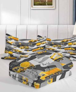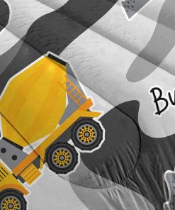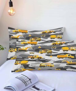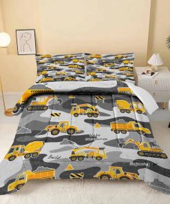 Juego de edredón para niños con temática de coches de dibujos animados HCHUANG Conjunto de cama de construcción de camuflaje Juego de cama de equipo de camiones Juego de edredón Tractor Excavadora Gris Amarillo Conjunto de colcha de dormitorio