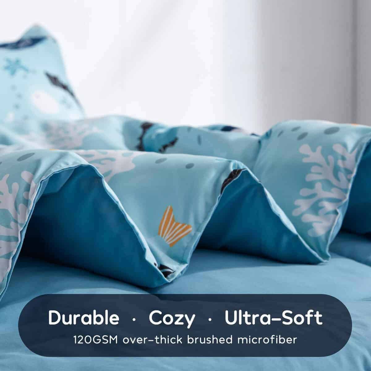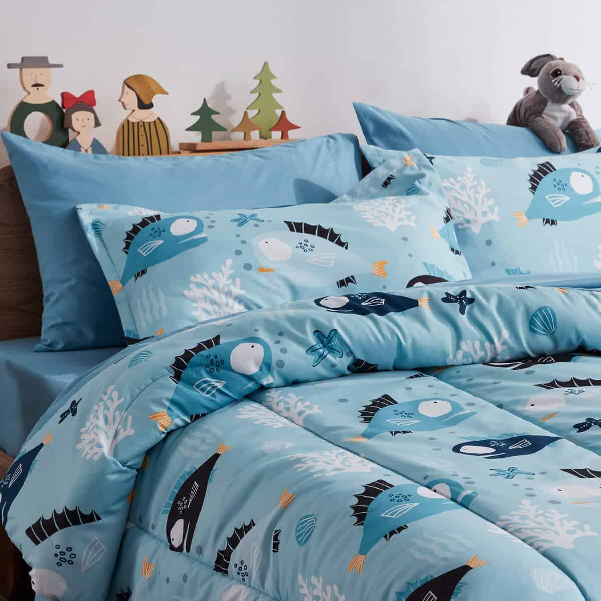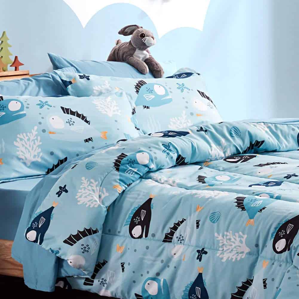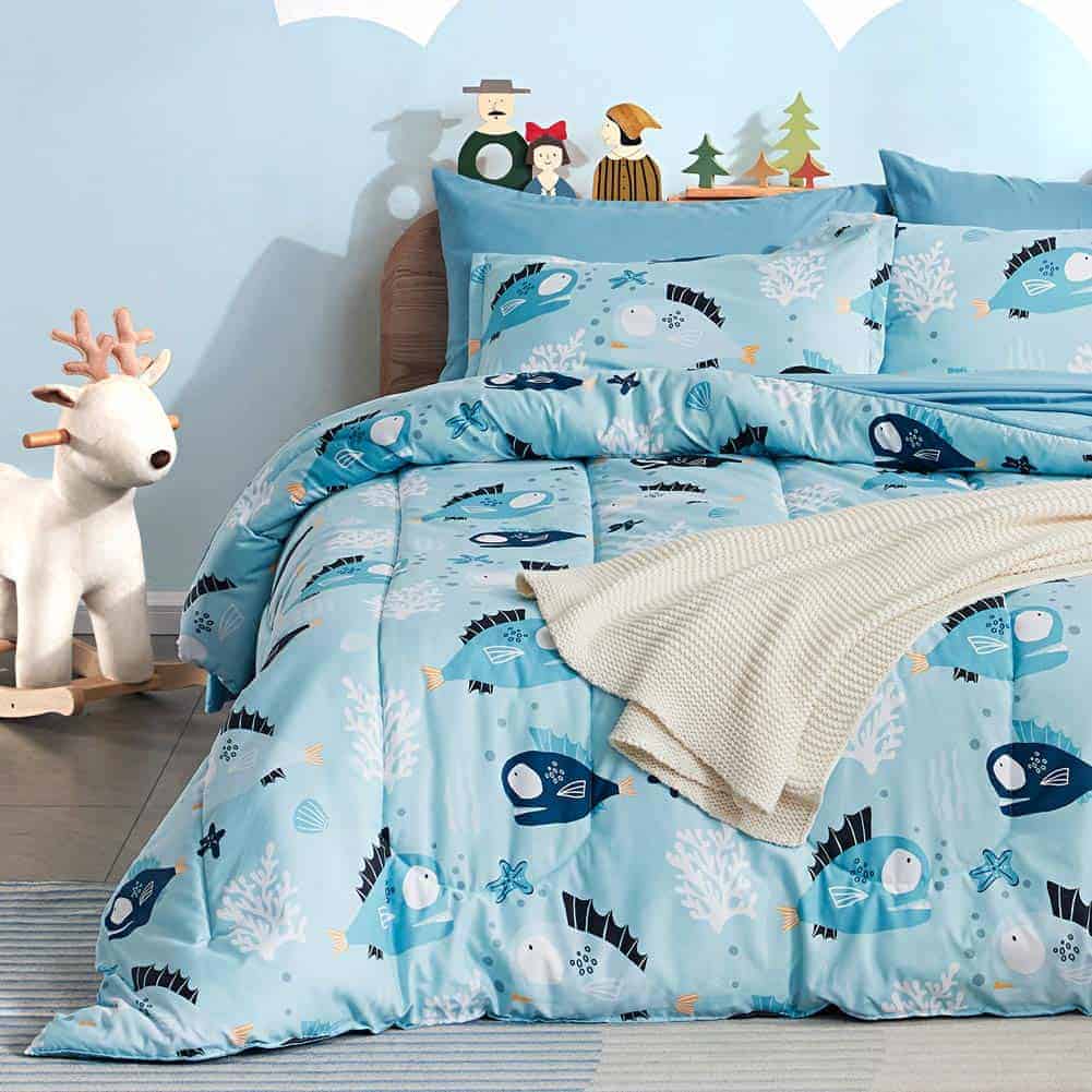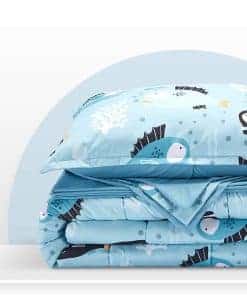 Nuestra ropa de cama para niños SLEEP ZONE es tanto linda como funcional. El tejido del edredón es microfibra cepillada gruesa, se siente súper suave y cómodo. El relleno es una fibra resiliente de 200 gsm mezclada con fibra de enfriamiento INVISTA, súper transpirable y esponjoso. Liviano, silencioso y sin olor. El diseño de acolchado clásico lo mantiene ajustado al cuerpo. El elegante ribete no solo es hermoso, sino que también evita eficazmente la rotura del borde. La costura precisa y duradera evita que los rellenos se aprieten incluso después de muchos lavados. Proceso de teñido e impresión respetuoso con la piel, excelente solidez del color. Este juego de ropa de cama incluye: 1 edredón de tamaño completo/ queen 90×90 pulgadas, 1 sábana ajustable 60x80x14 pulgadas, 1 sábana plana 90×102 pulgadas, 2 fundas de almohada 20×26 pulgadas, 2 fundas de almohada 20×30 pulgadas. La promesa de satisfacción de SLEEP ZONE le brinda más de 40 años de experiencia en el diseño y fabricación de ropa de cama de alta calidad. Nuestros productos están certificados por Oeko-Tex Standard 100 para estar libres de productos químicos dañinos. Puede comprar con confianza bajo nuestra excelente calidad de producto y servicio al cliente. Si tiene alguna pregunta o problema, no dude en comunicarse con nosotros, le responderemos en 24 horas.