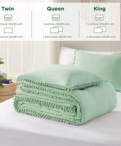 Los juegos de edredón Codi en color verde salvia son la combinación perfecta entre comodidad, estilo y calidad. Confeccionados con material de microfibra lavada ultrasuave, estos edredones te mantendrán cálido y acogedor durante toda la noche, brindándote un sueño profundo y reparador. El diseño de borla pom pom añade un toque único y alegre a tu habitación, creando una atmósfera bohemia y elegante. La alta calidad en el acabado garantiza que los pom pom estén firmemente fijados al edredón, evitando que se caigan fácilmente. Este juego de edredón es ligero y versátil, perfecto para usar durante todo el año, adaptándose a las estaciones y a cualquier estilo de habitación. Para mantenerlo en óptimas condiciones, recomendamos lavarlo en agua fría y secarlo suavemente. Los juegos de edredón Codi no solo son decorativos, también son duraderos y útiles. ¡Atrévete a añadir un toque de elegancia y alegría a tu dormitorio con este juego de edredón de borla pom pom en color verde salvia!
