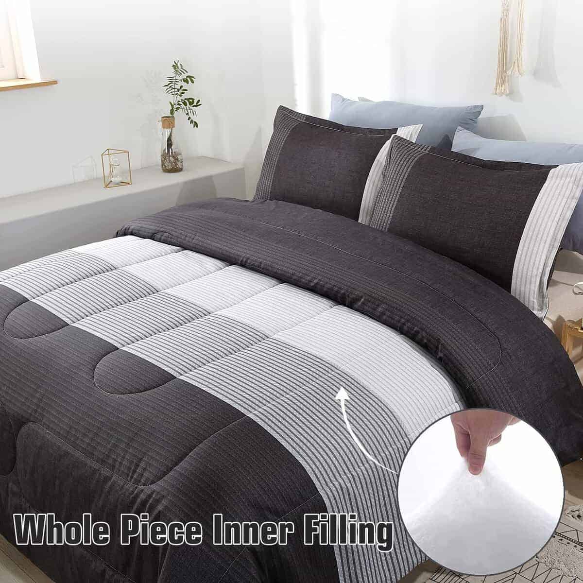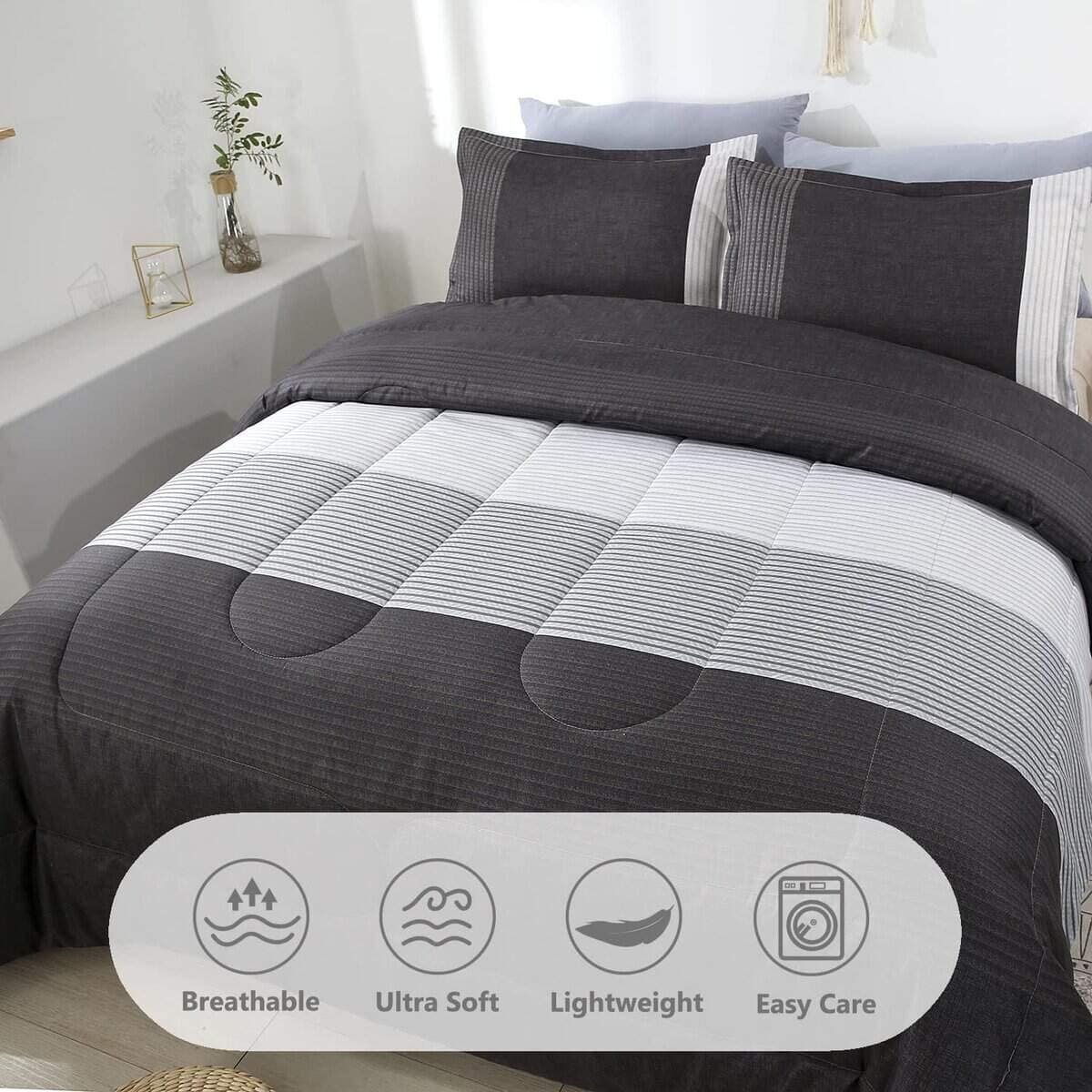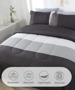 Juego de Edredón PERFEMET Gris y Blanco para Cama Queen, 3