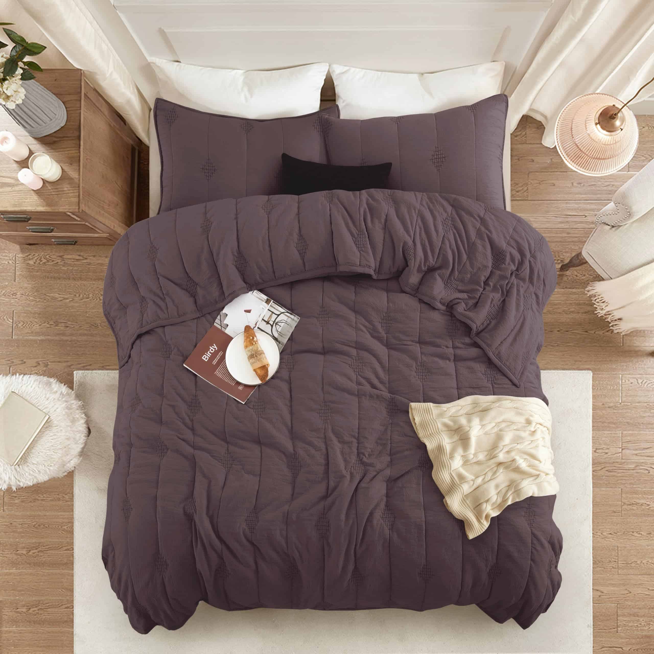 1. Versatilidad para todas las estaciones: Perfecto para uso durante todo el año. Suficientemente ligero para el verano y lo suficientemente cálido para el invierno, brindando comodidad óptima en cada estación. 2. Tela ultra suave: Hecho de tela de calidad premium y prelavada que se siente increíblemente suave y gentil contra tu piel, asegurando la máxima comodidad. 3. Transpirable y que absorbe la humedad: La tecnología avanzada garantiza una excelente transpirabilidad y propiedades que absorben la humedad para mantenerte fresco y seco durante toda la noche. 4. Diseño y colores: El moderno y elegante patrón de bordado de diamantes junto con opciones de colores de tendencia para ti, esta amplia gama de juegos de edredones coloridos hace que sean los dormitorios acogedores perfectos para cada hogar. Colores: LG- Gris Plateado, FG- Beige Vintage, CH-Gris Medio, CB-Azul Claro, IR- Marrón Hierro, NY-Azul Marino, YE- Amarillo Cálido, PK- Rosa Rubor. 5. Tamaño y cuidado: Incluye: 1 edredón Queen 90 X 90 , 2 fundas de almohada 20 X 26 . Lavable a máquina para una limpieza sin complicaciones. Mantiene su suavidad y durabilidad lavado tras lavado.