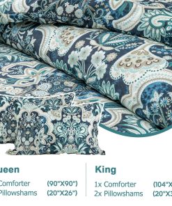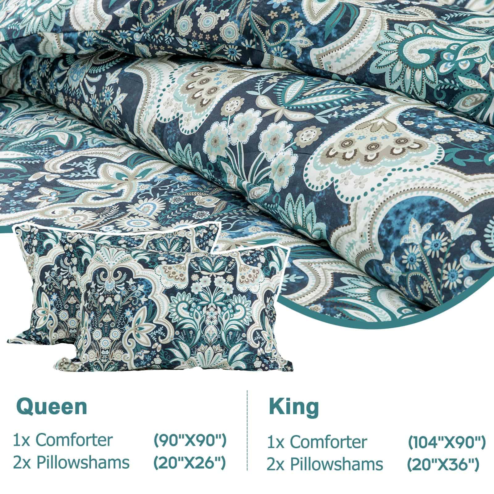 Juego de Edredón Queen Finlonte Damask, -Azul Marino/Taupe