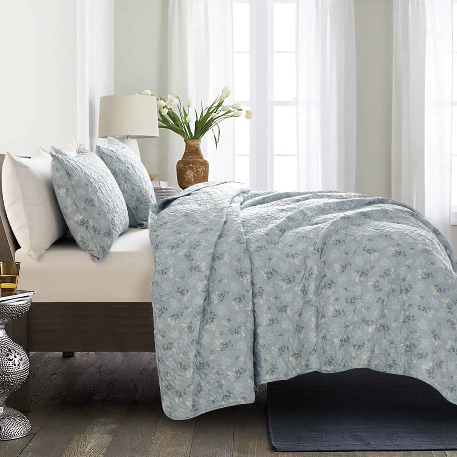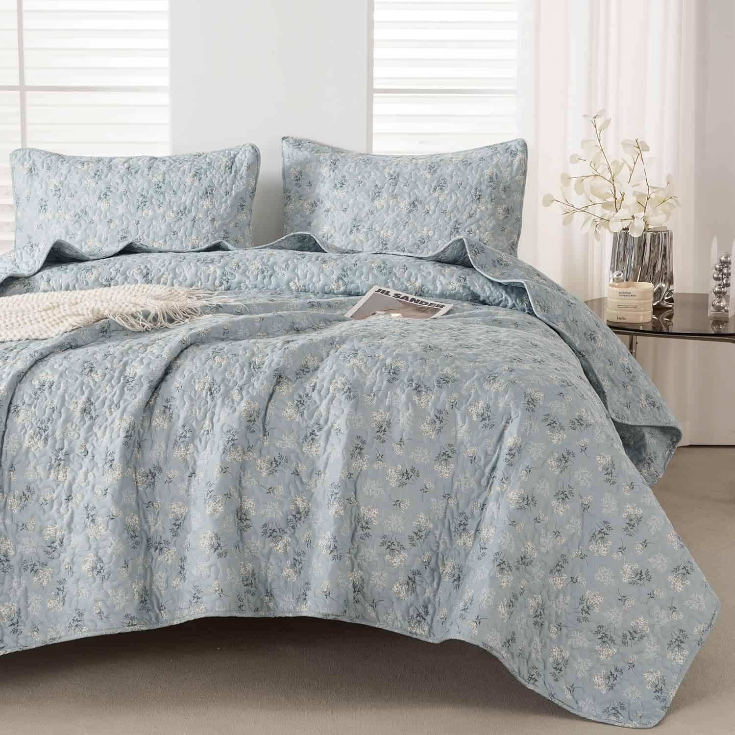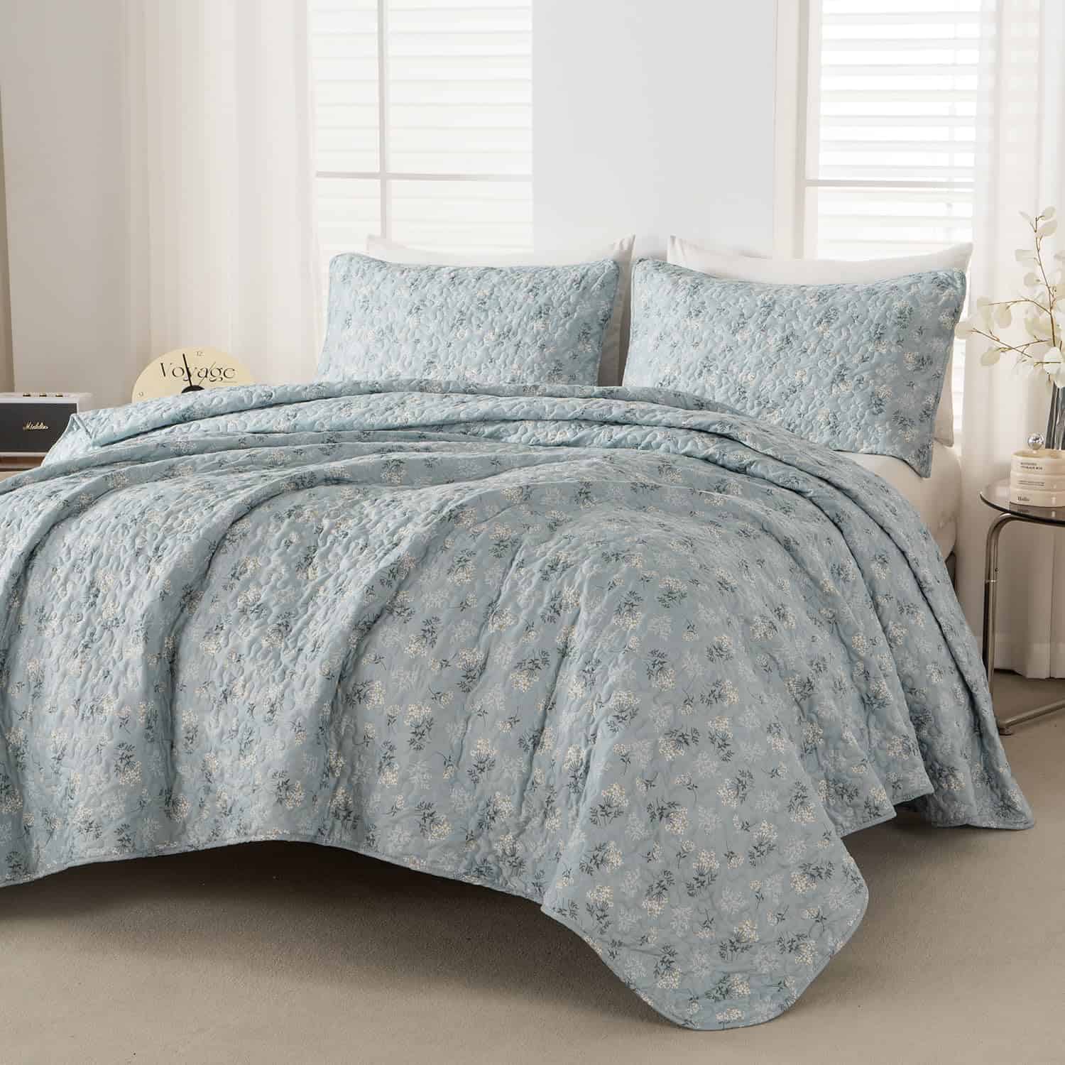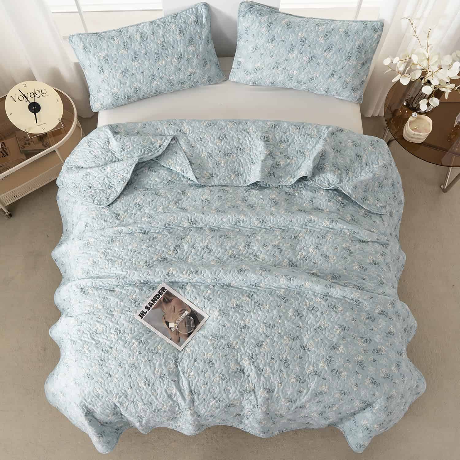 Juego de Edredón Queen Floral 3 Piezas Suave y Ligero de