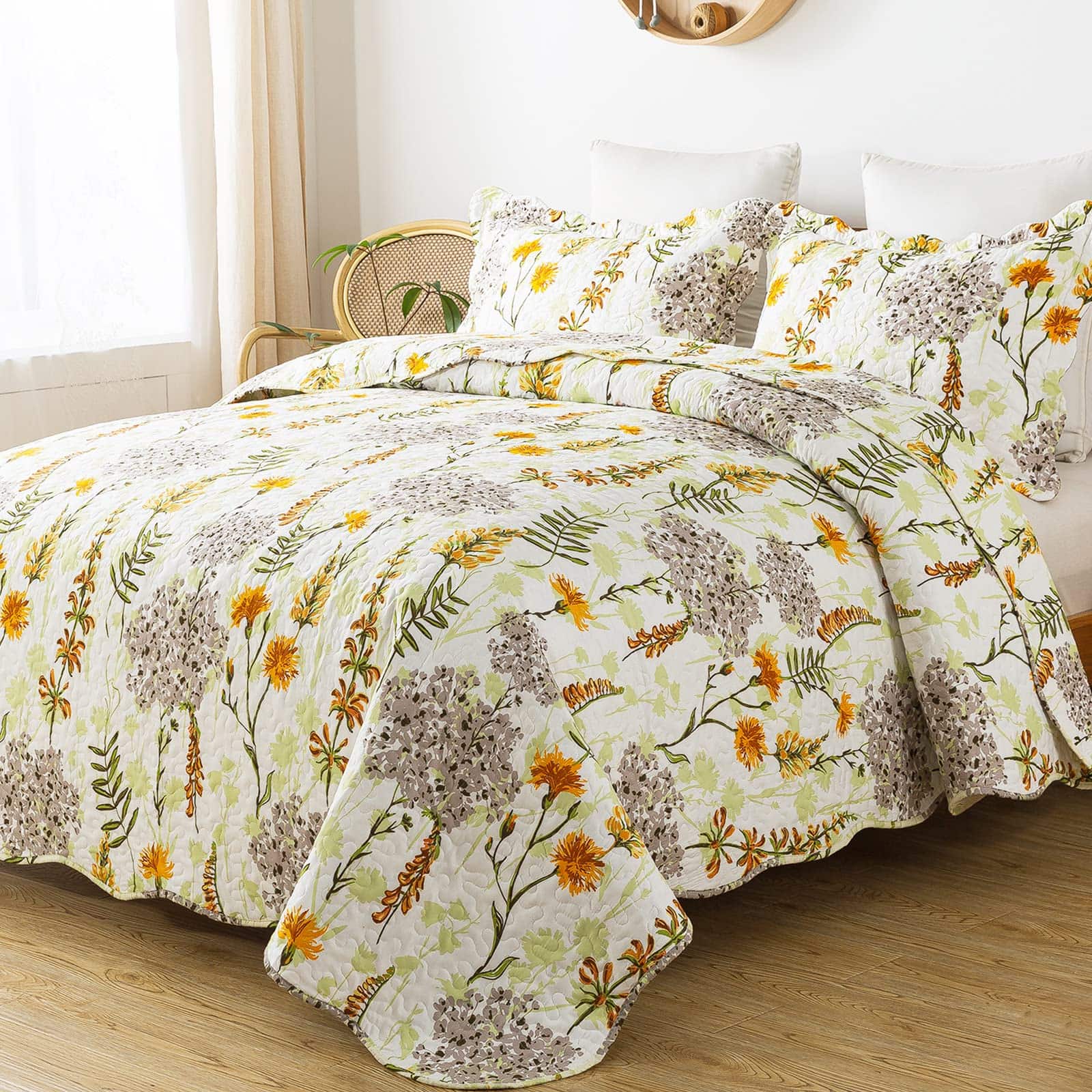 Juego de Edredón Queen HoneiLife – 3 -Verde y Amarillo