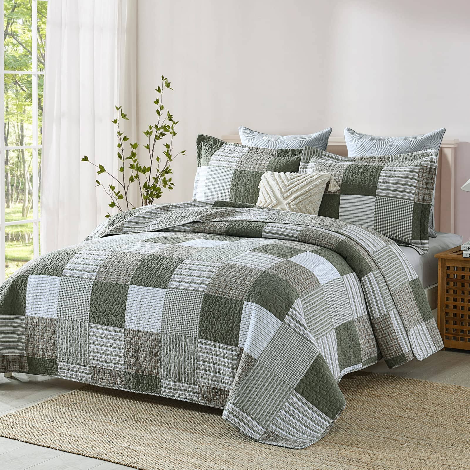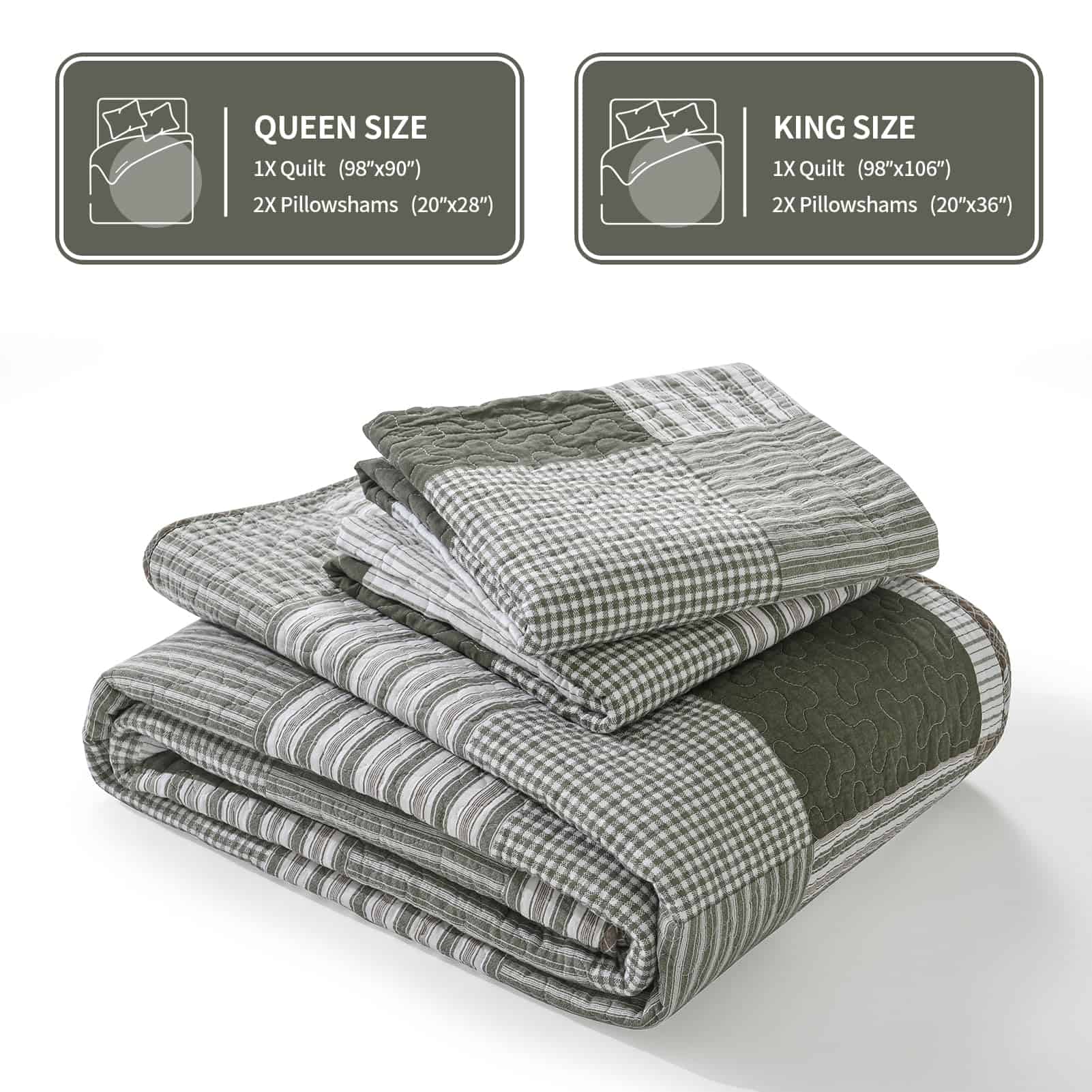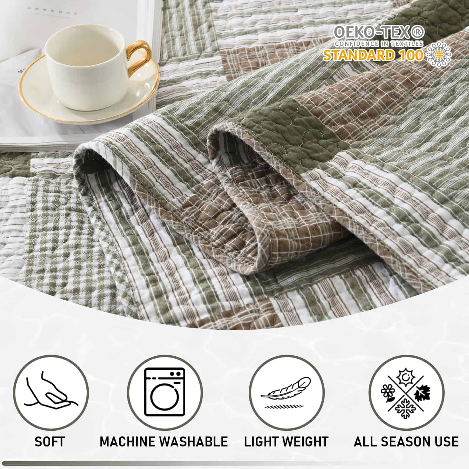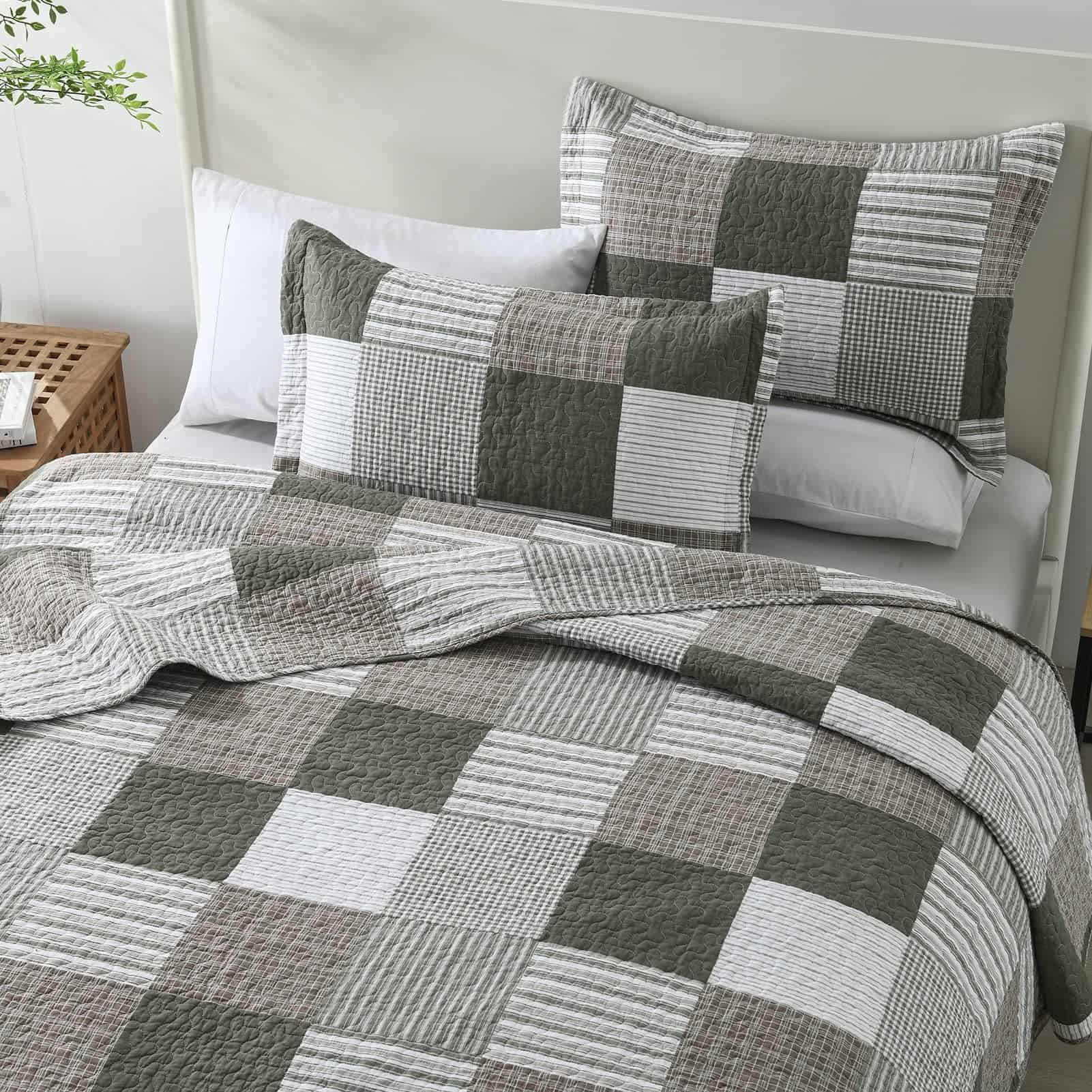En días calurosos, puedes usarlo solo para acompañarte mientras duermes. En clima más frío, no solo sirve como decoración en la cama, sino que también proporciona calor adicional. Su excelente transpirabilidad y ligereza previenen los sudores nocturnos y la incomodidad, garantizando una experiencia de sueño confortable. Nuestro set de edredón tamaño queen incluye: 1 Edredón (90 x 98 pulgadas) + 2 Fundas de Almohada (20 x 28 pulgadas). Un set completo puede simplificar tu proceso de selección y mejorar el atractivo estético general y la coherencia estilística de tu ropa de cama. Lavar a máquina el set de edredón por separado en agua fría. Secar en línea o en secadora a baja temperatura. Evita usar lejía para mantener su calidad. Después de varios lavados, el edredón de algodón se volverá más suave. Este juego de ropa de cama está prelavado, ofreciendo un mejor toque y reduciendo eficazmente el encogimiento y la decoloración posteriores. Nuestros sets de ropa de cama han pasado la certificación OEKO-TEX Standard 100, asegurando que los productos estén libres de sustancias dañinas, permitiéndote usarlos con tranquilidad. Si tienes alguna pregunta sobre nuestros sets de edredón, no dudes en contactarnos. Responderemos tus consultas lo antes posible y te brindaremos un servicio de alta calidad.