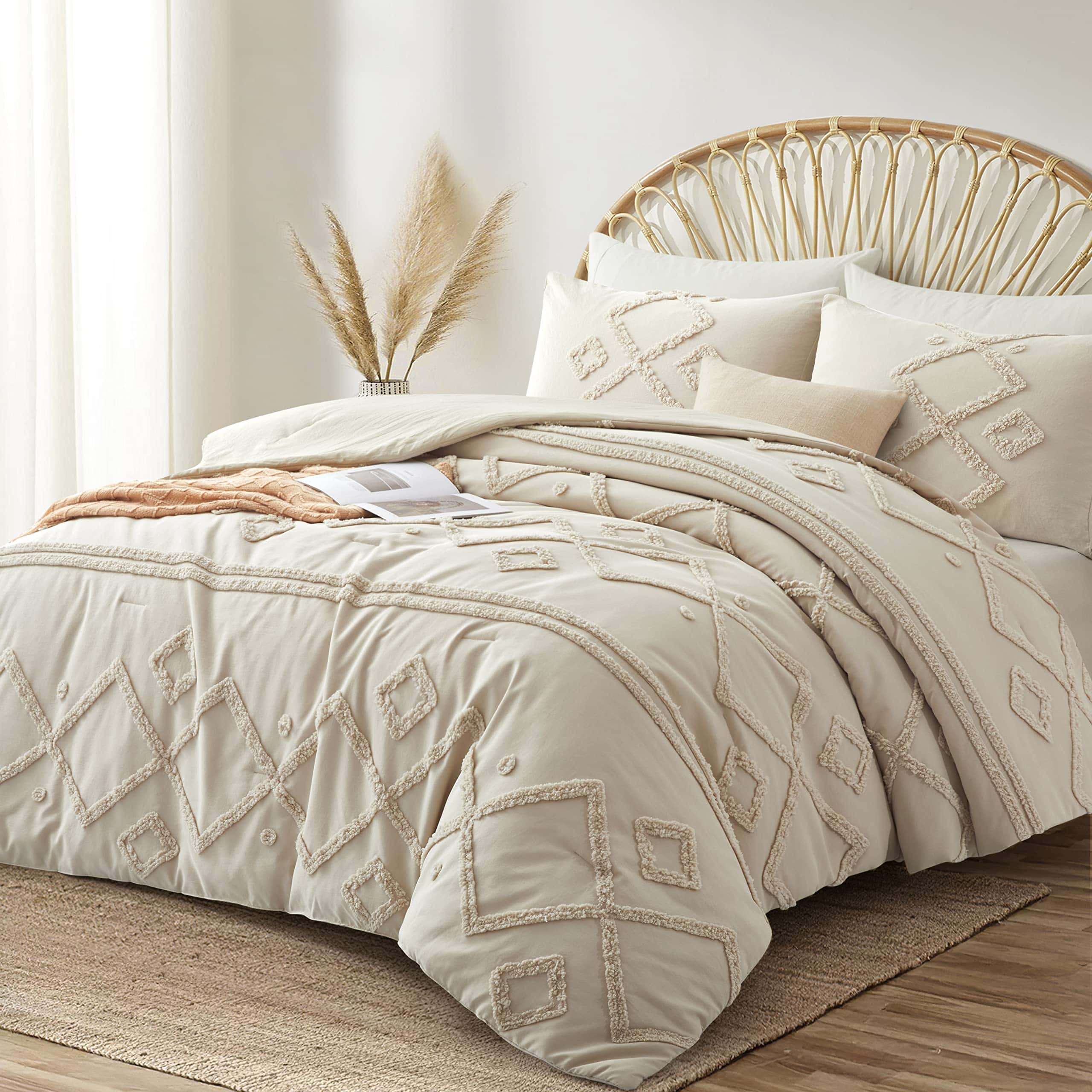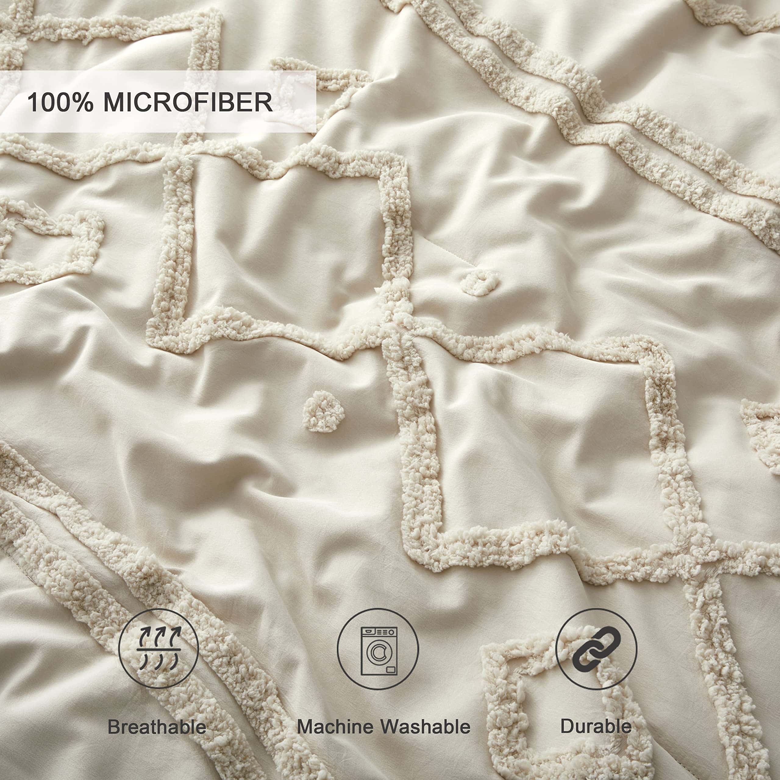 4. Paquete y Tamaño: El juego de edredón tamaño queen incluye 1 edredón beige (90×88 pulgadas) y 2 fundas de almohada (20×26 pulgadas) sin inserto de almohada.