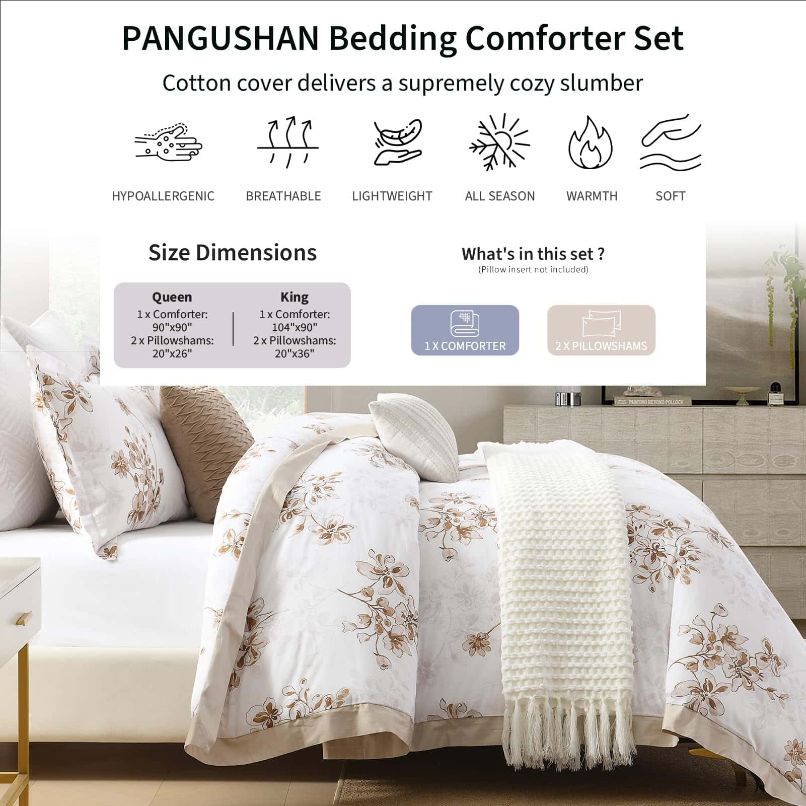 Juego de Edredón Queen PANGUSHAN, Edredón Acolchado de