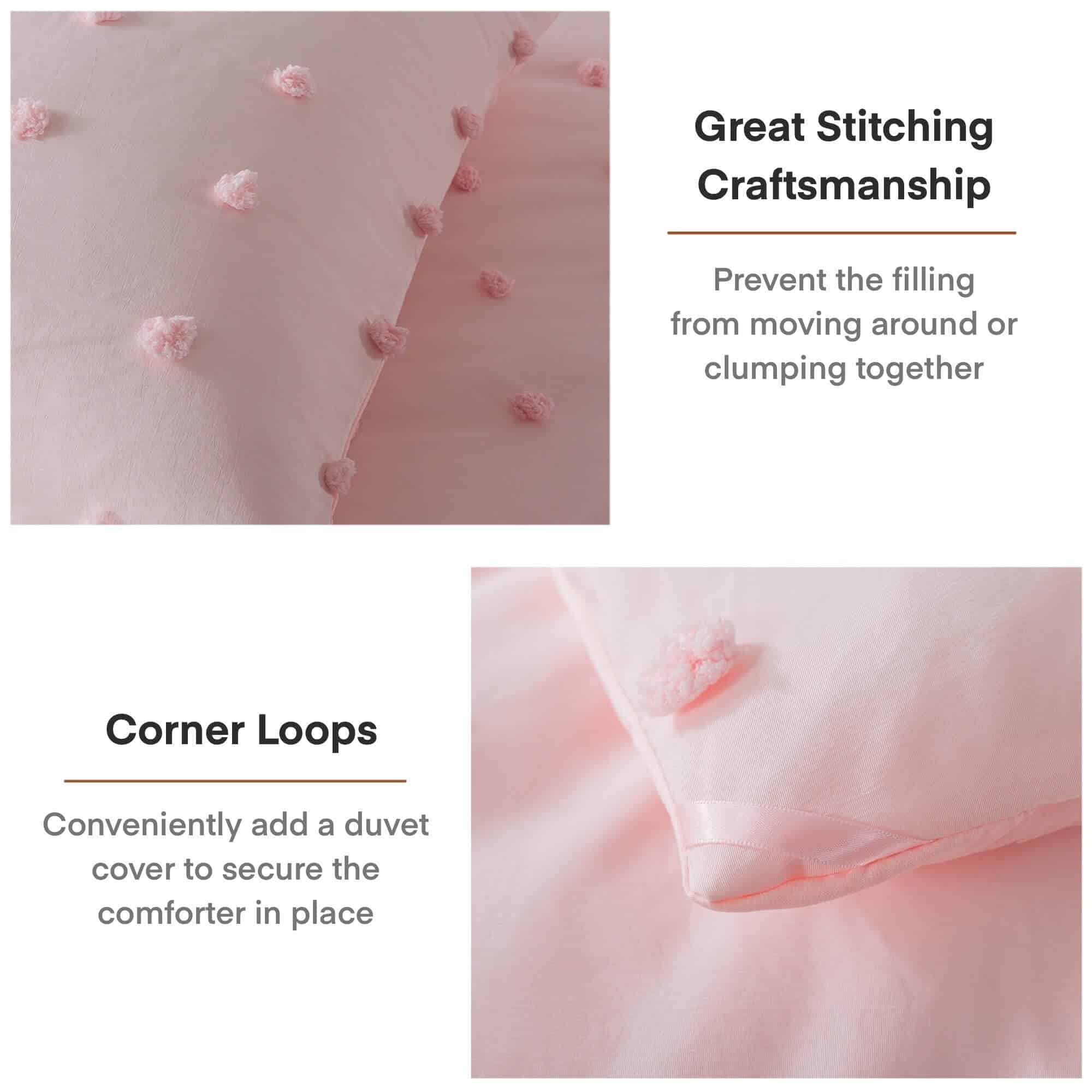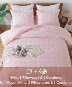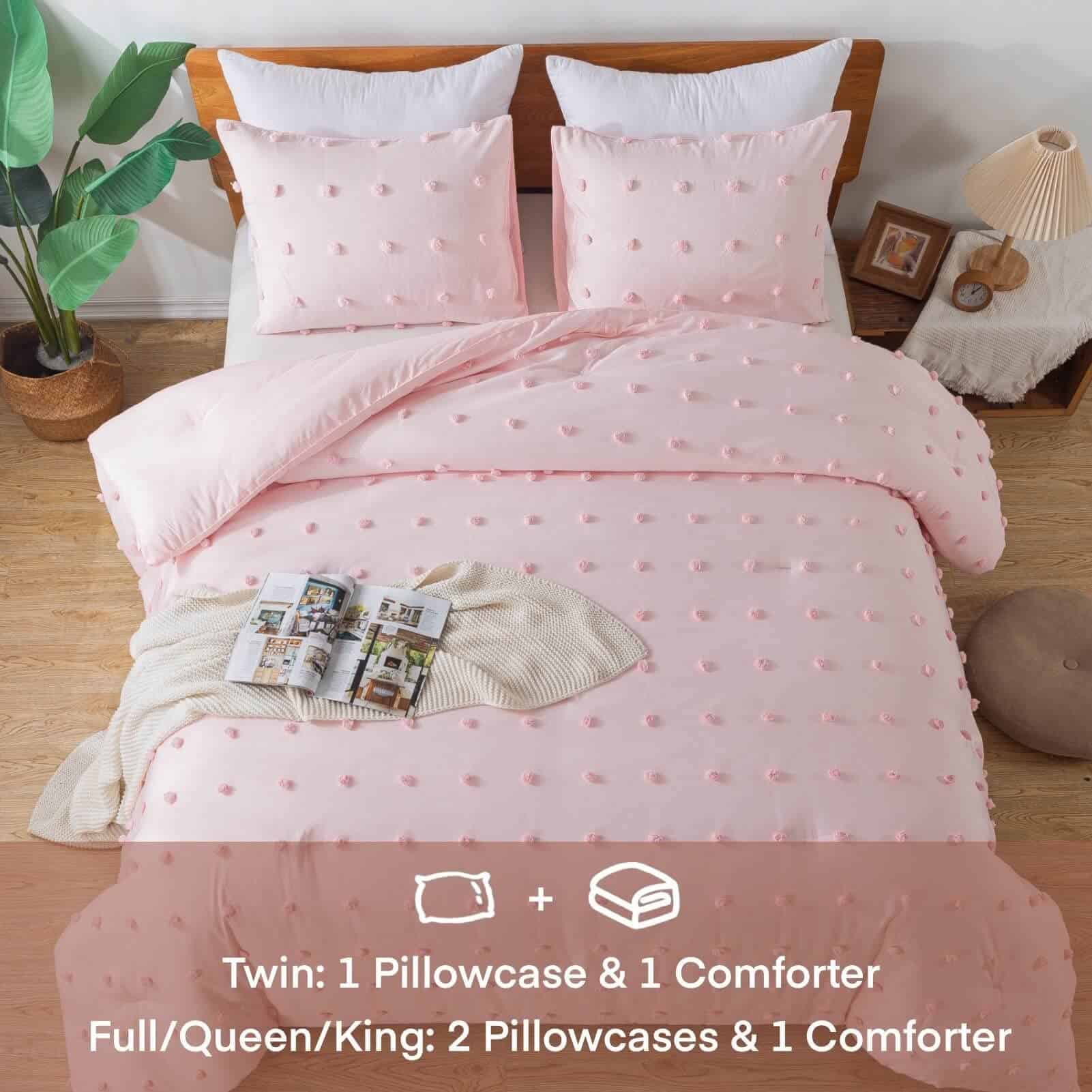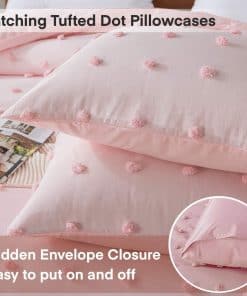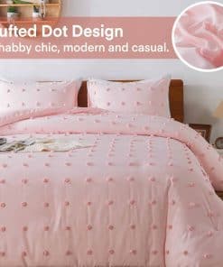 1. Diseño de Capitonado con Lunares Atractivos: Encantadores lunares de textura capitonada están dispersos en este juego de edredón rosa, respaldado con sábana de algodón suave al tacto. La belleza y la funcionalidad están perfectamente integradas en este juego de edredón queen de botón capitonado.