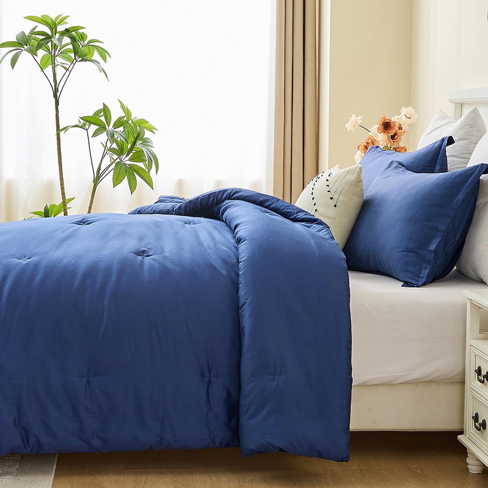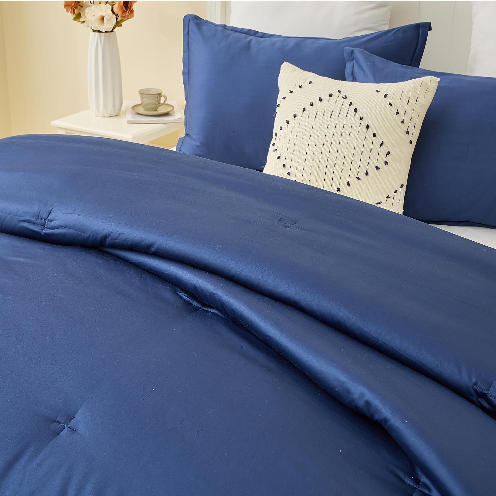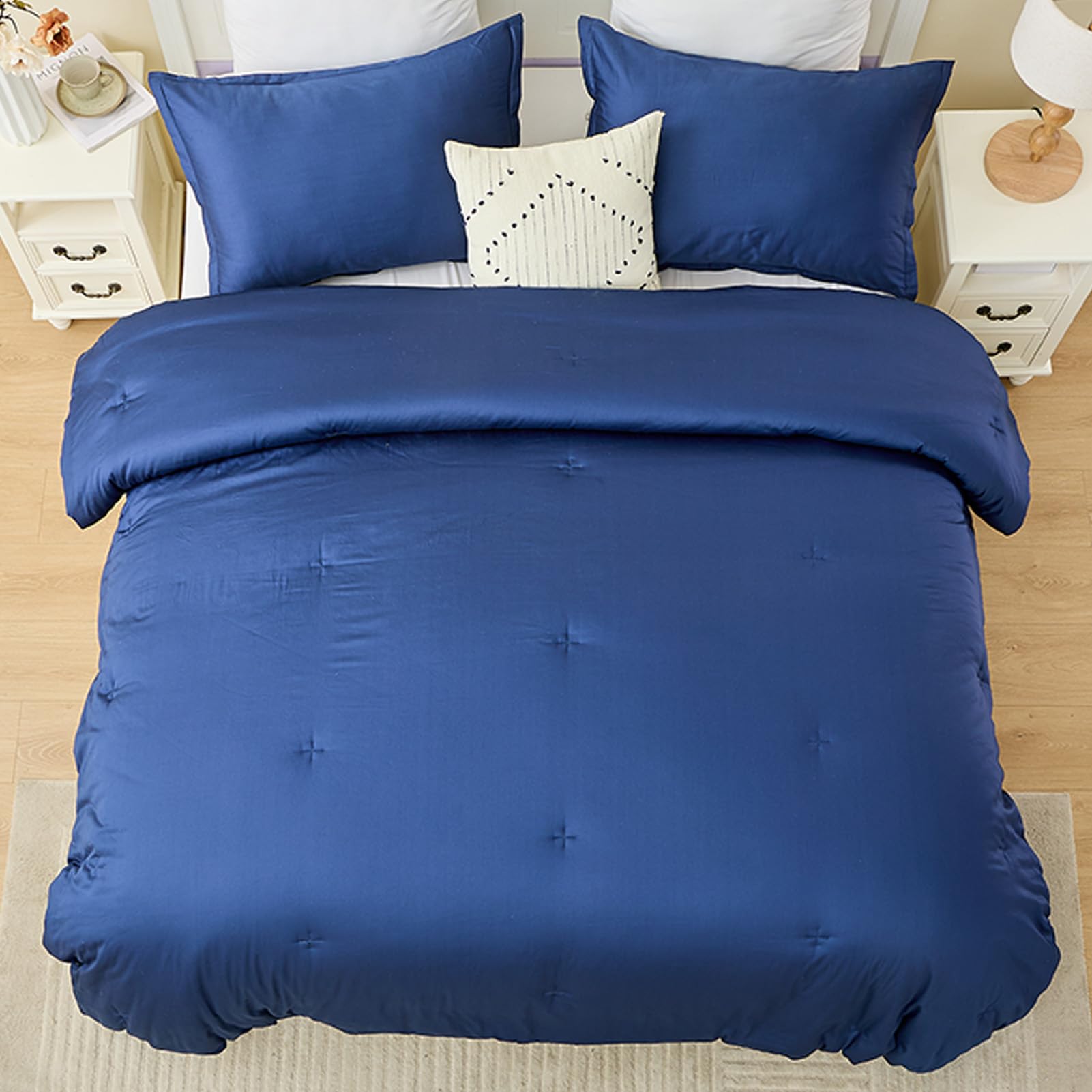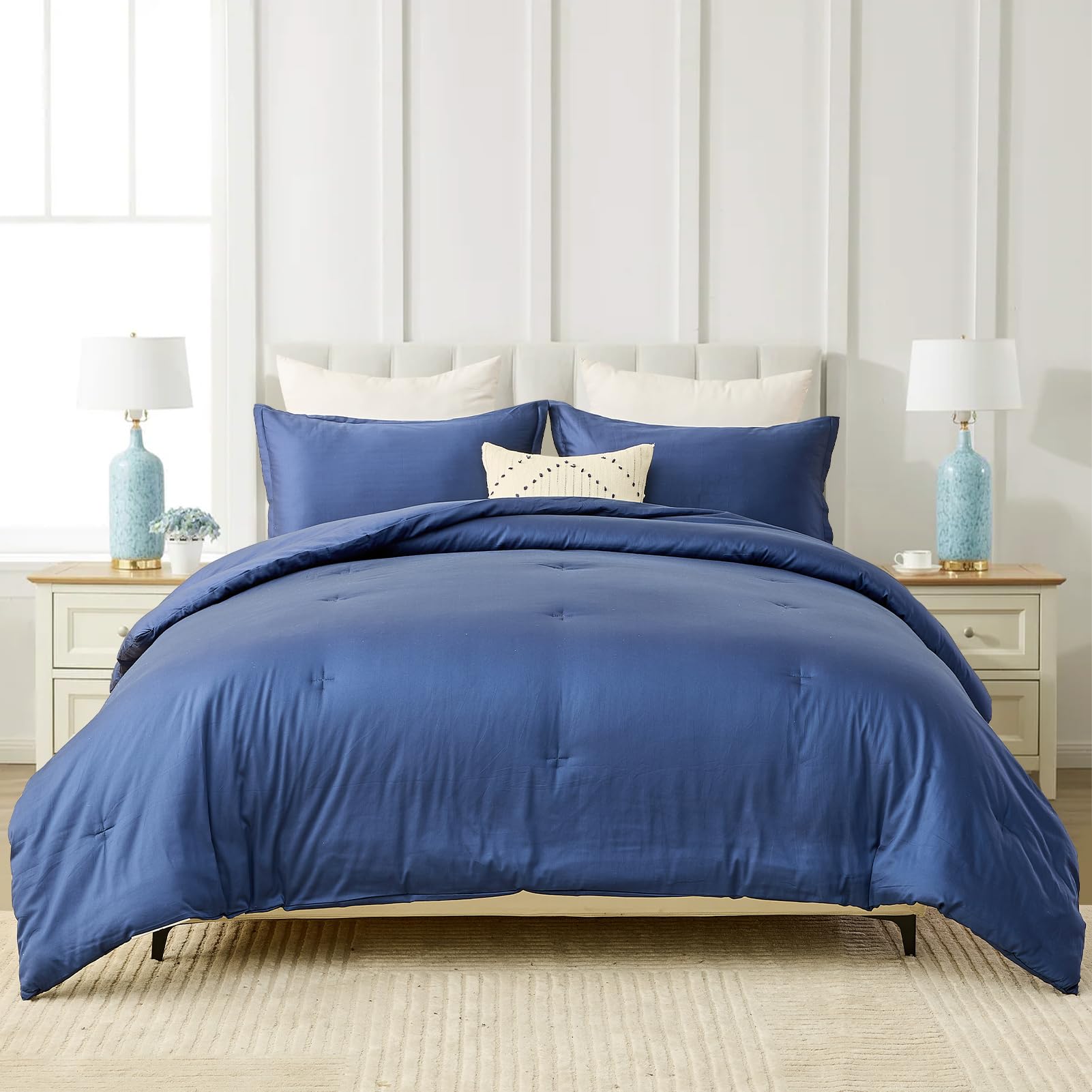 3. Elegante y lujoso: Edredón acolchado de color sólido azul marino clásico. Infundido con un sentido único de moda y creatividad, este edredón no es simplemente ropa de cama; es una pieza artística para su espacio. Tela delicada, artesanía de costura exquisita. Aporta un atractivo estético sin precedentes a su espacio, creando una atmósfera de lujo discretamente noble.