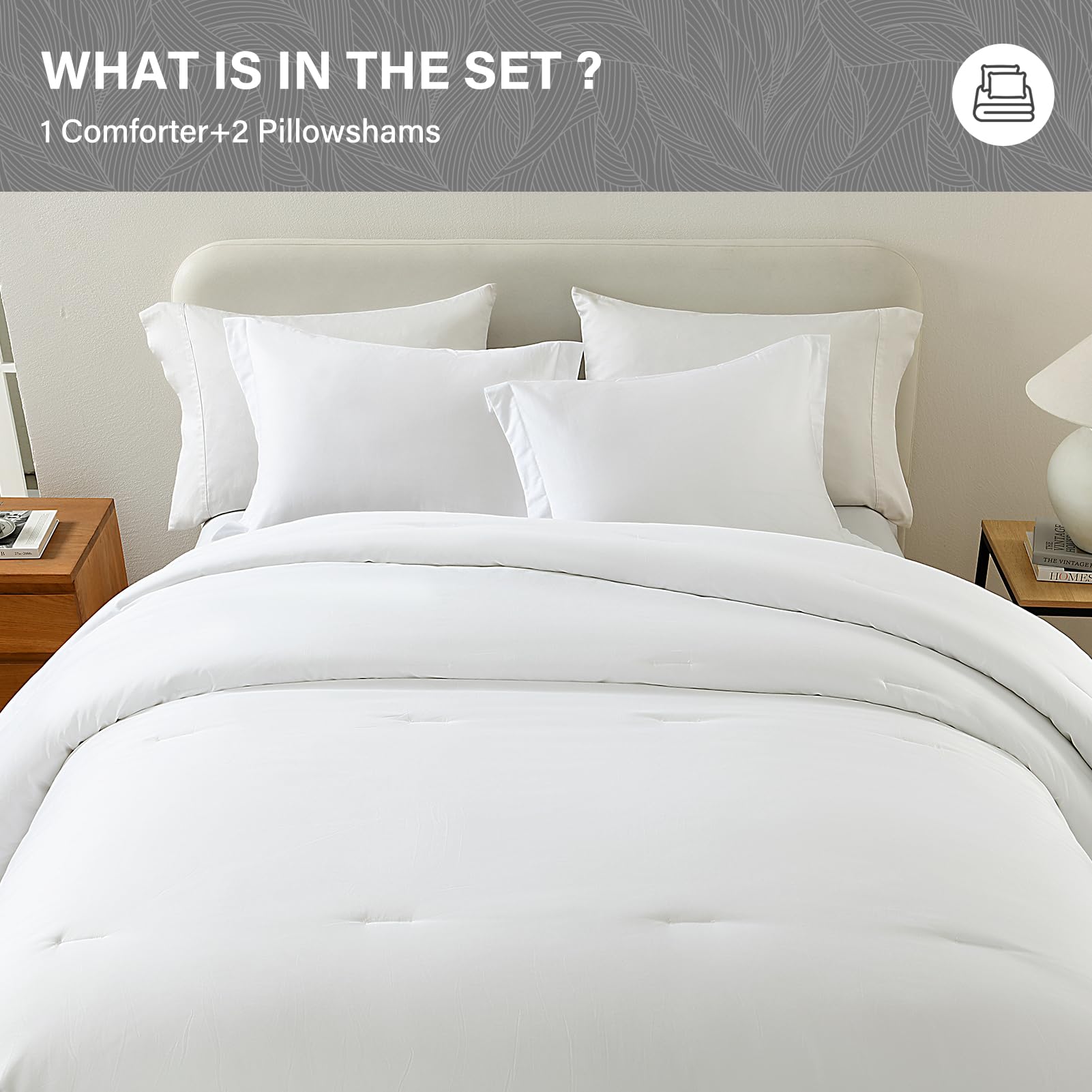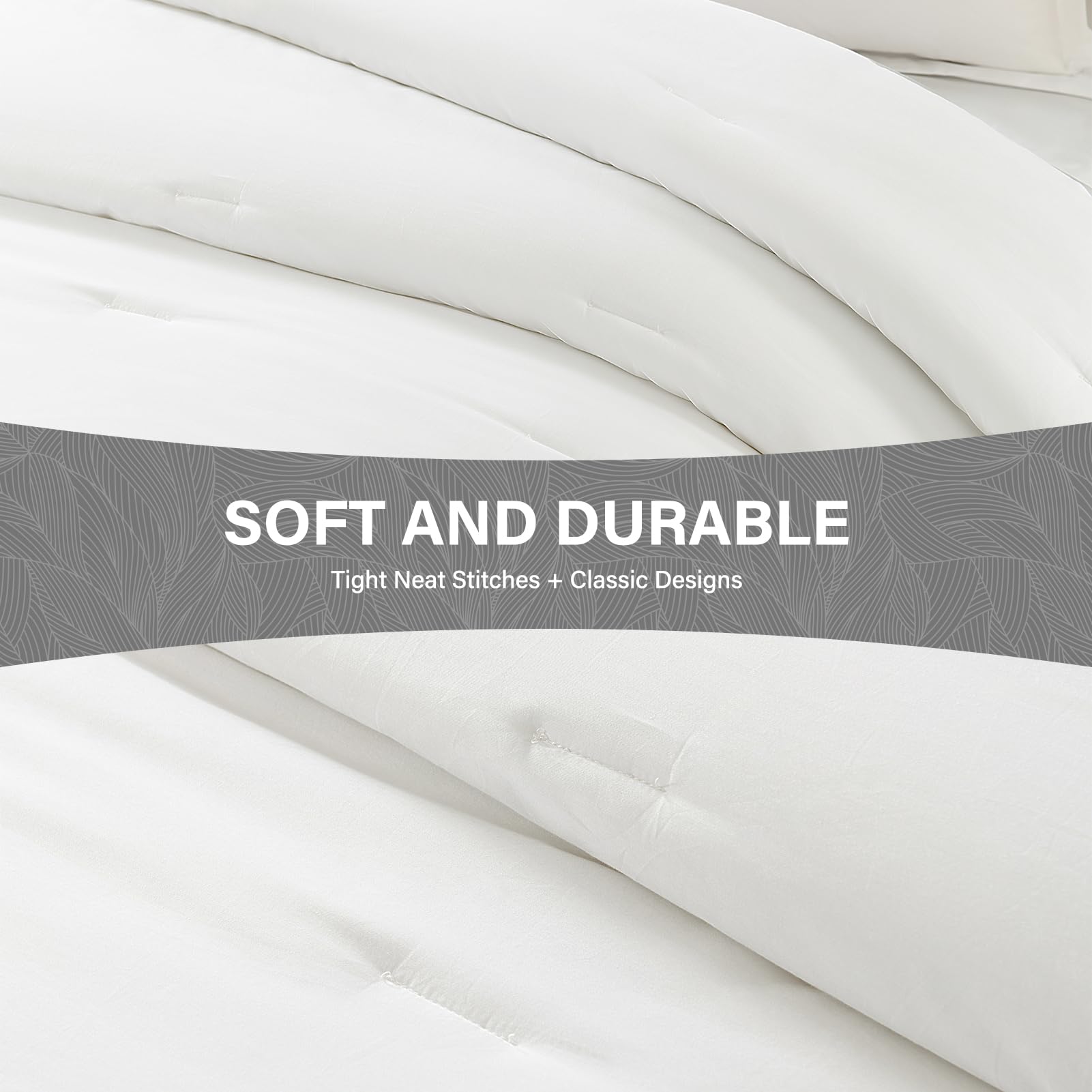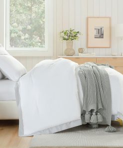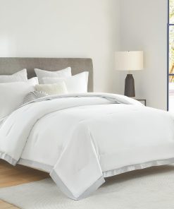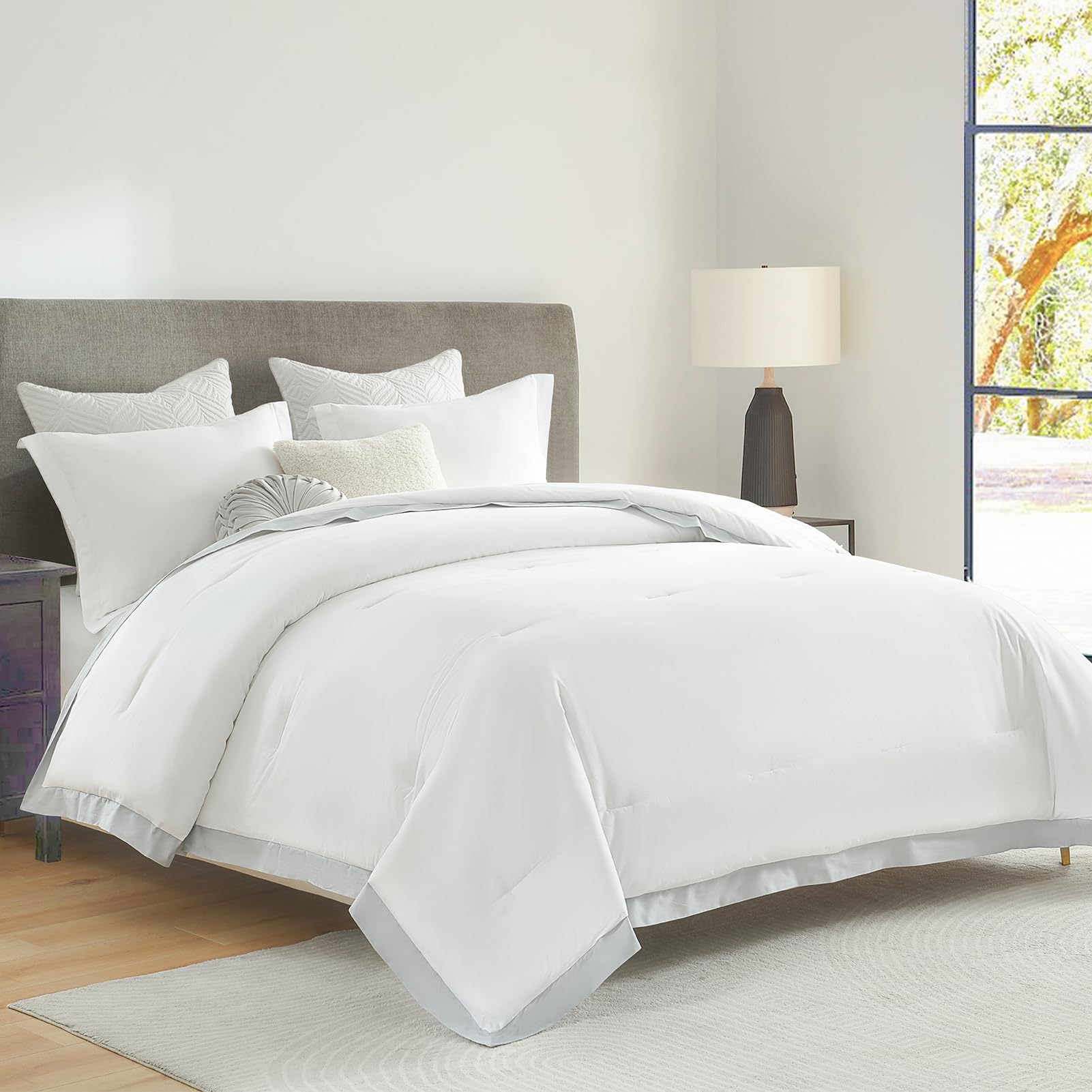 3. Elegante y lujoso: Edredón blanco con diseños de borde gris más amplio a lo largo de sus bordes. Infundido con un sentido único de moda y creatividad, este edredón no es meramente ropa de cama; es una pieza artística para su espacio. Tela delicada, artesanía de costura exquisita. Aporta un atractivo estético sin precedentes a su espacio, creando una atmósfera de lujo discretamente noble.