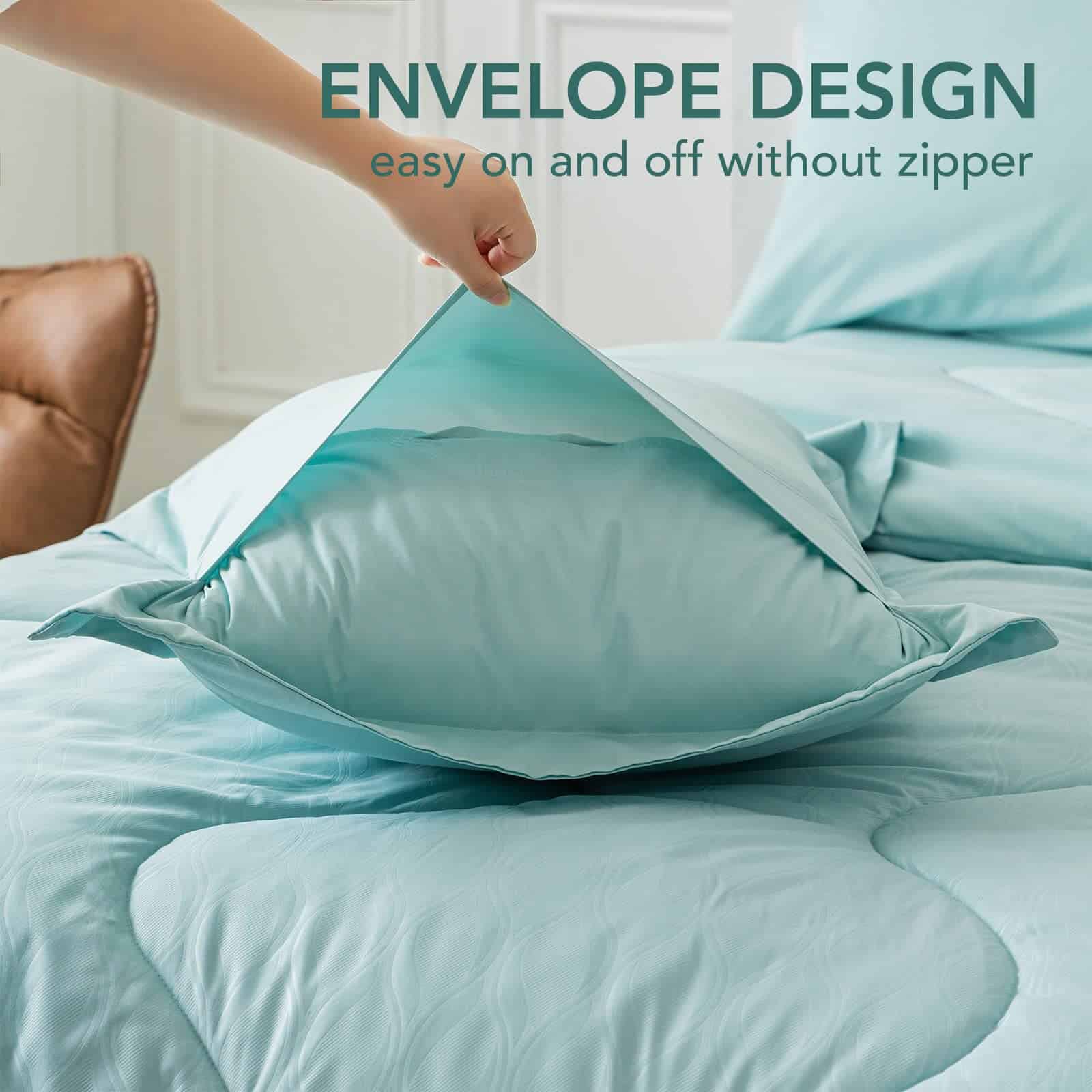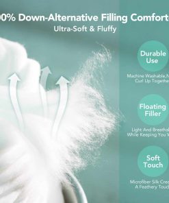 5. LAVABLE A MÁQUINA: Este edredón viene con relleno de fibra hidrofílica, que nunca se agrupa después de los lavados, lo que facilita el cuidado. Simplemente lava a máquina en el ciclo suave con agua fría y sécalo al sol o en secadora a baja temperatura. ¡No más noches sin dormir en un juego de edredón incómodo y con picazón!