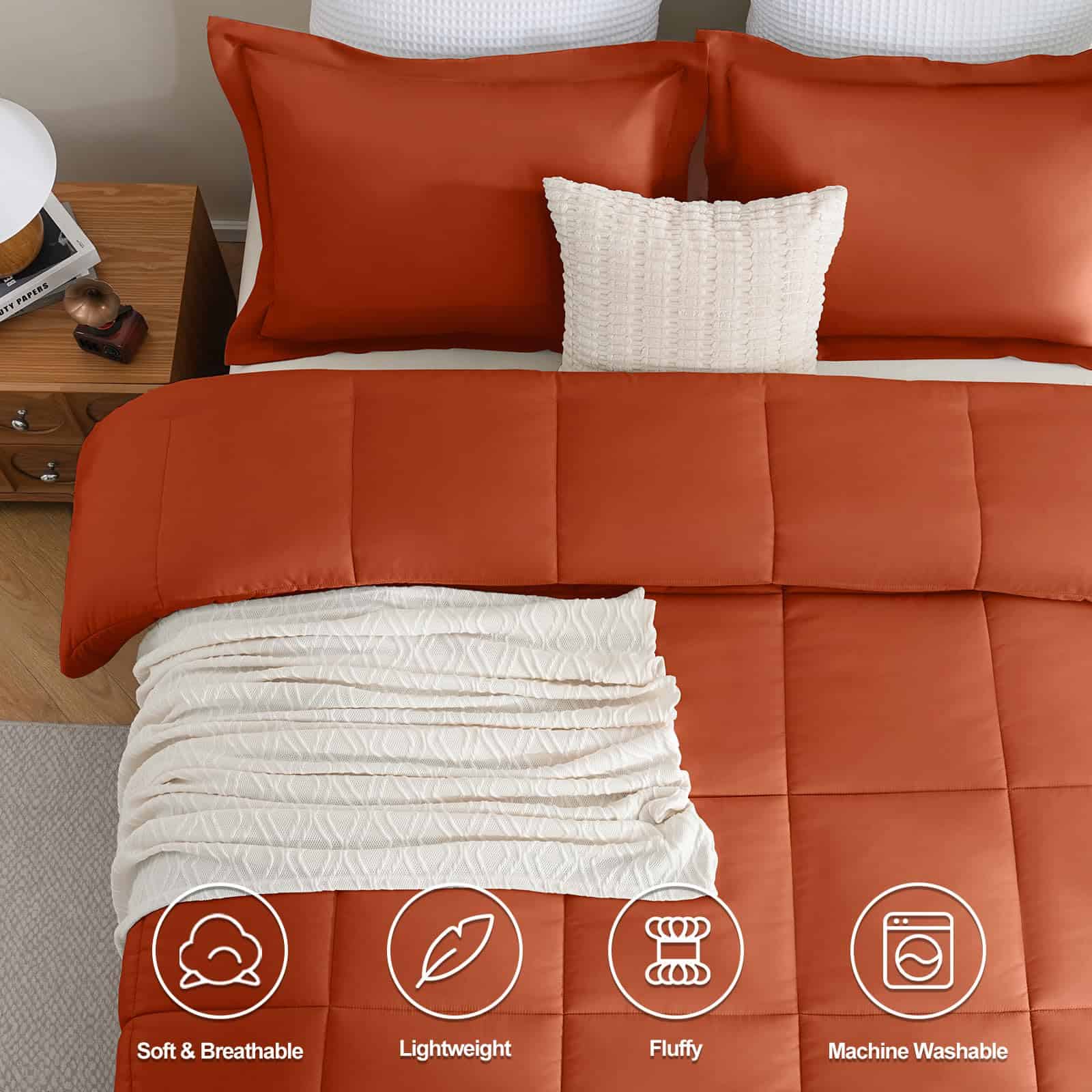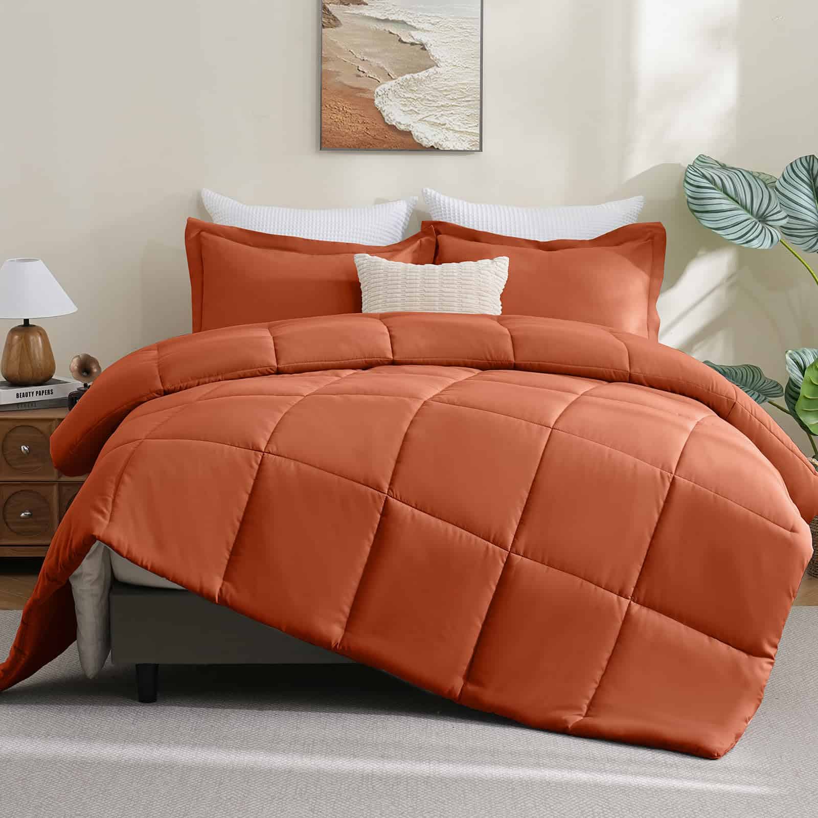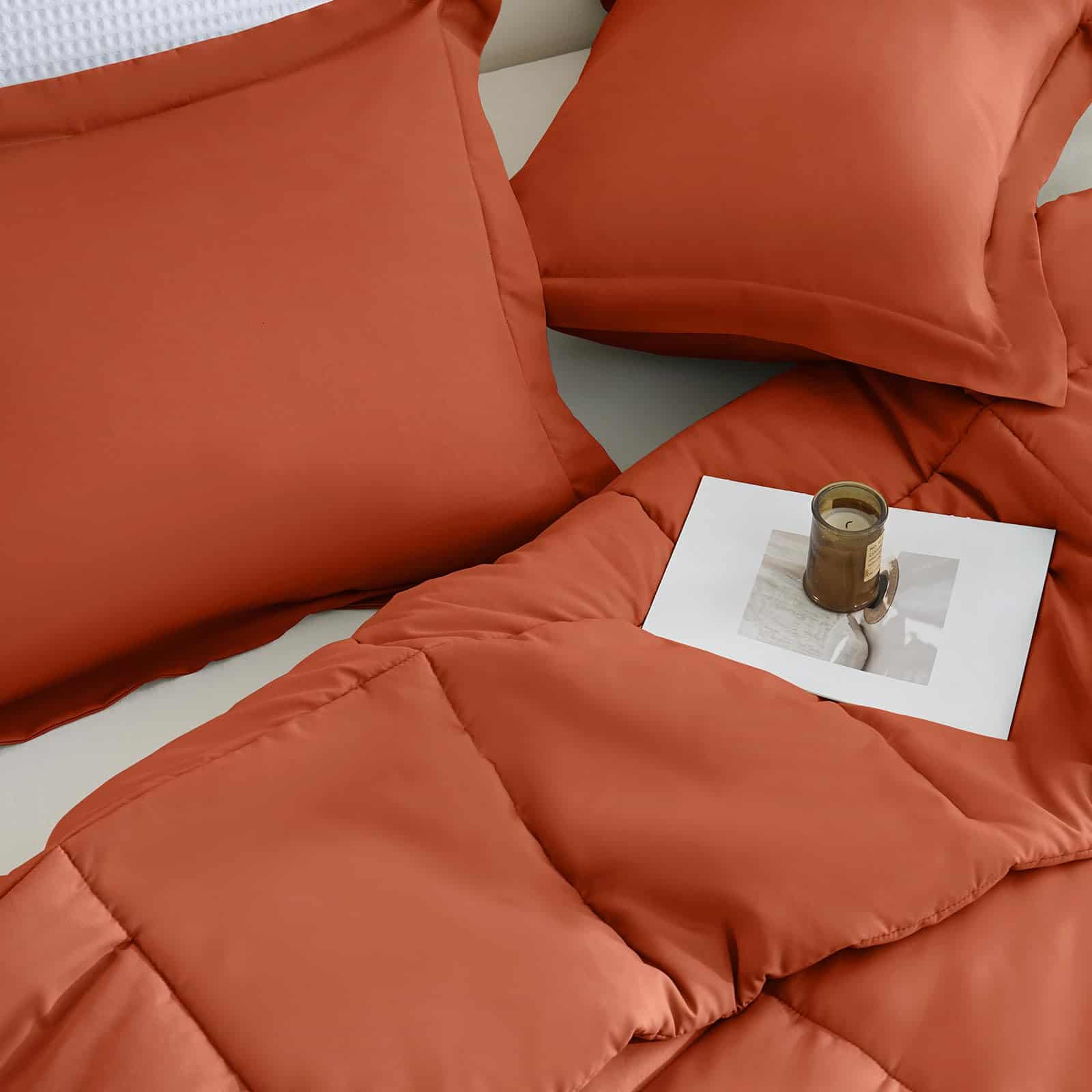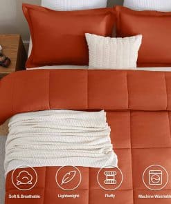 El juego de edredón CozyLux Queen Size Comforter Set Terracotta es la combinación perfecta de confort y estilo para tu dormitorio. Con una tela microfibra premium transpirable y absorbente de sudor, este juego de edredón queen mantendrá la temperatura adecuada durante todas las estaciones. El relleno alternativo de plumas de alta calidad proporciona la cantidad justa de calidez sin resultar pesado.