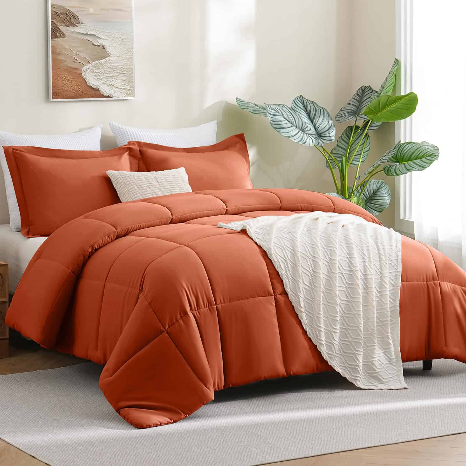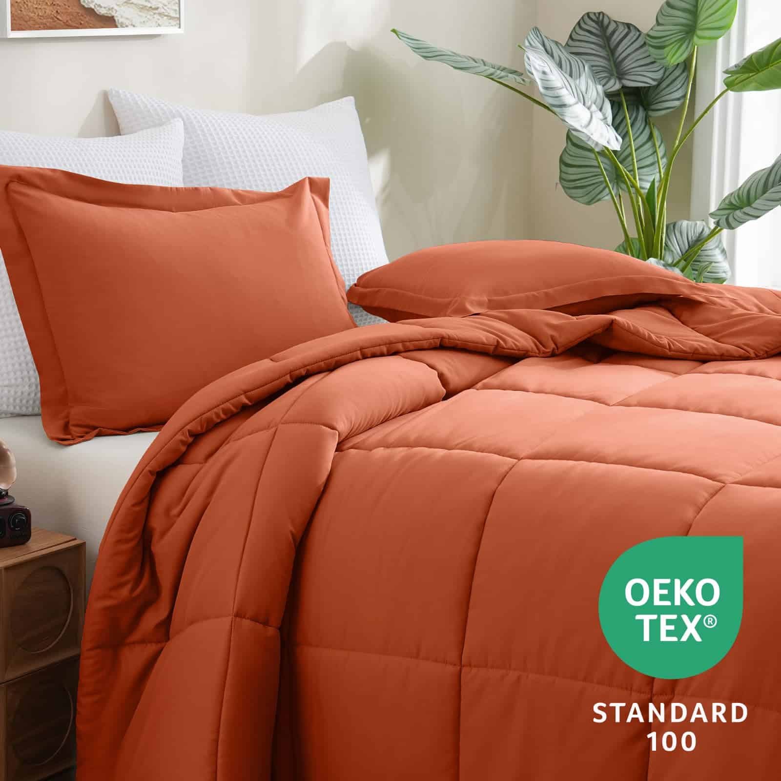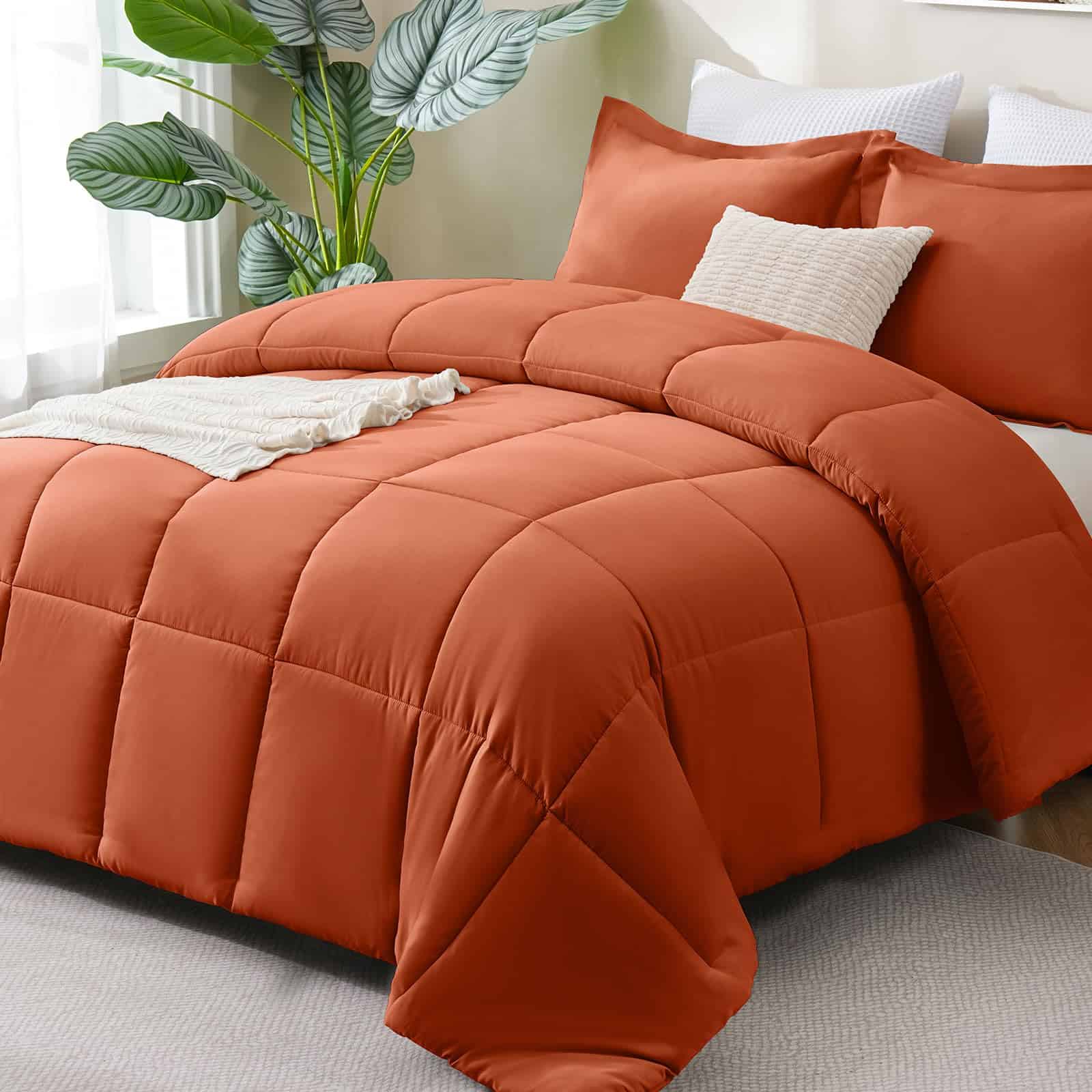 El juego de edredón CozyLux Queen Size Comforter Set Terracotta es la combinación perfecta de confort y estilo para tu dormitorio. Con una tela microfibra premium transpirable y absorbente de sudor, este juego de edredón queen mantendrá la temperatura adecuada durante todas las estaciones. El relleno alternativo de plumas de alta calidad proporciona la cantidad justa de calidez sin resultar pesado.