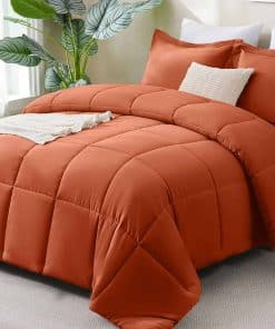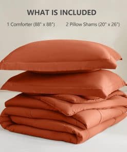 Este juego de edredón queen incluye un edredón de 88×88 pulgadas y dos fundas de almohada de 20×26 pulgadas, todo lo que necesitas para completar la decoración de tu dormitorio. Para asegurar la máxima comodidad y durabilidad, se recomienda lavar el edredón en ciclo suave con agua fría y secarlo sin escurrir o secarlo a baja temperatura. Añade un toque de estilo y comodidad a tu dormitorio con el juego de edredón CozyLux Queen Size Comforter Set Terracotta.