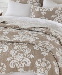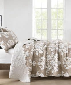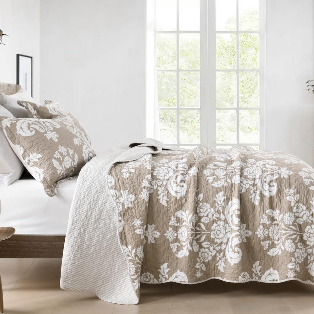 4. Diseño Floral: Este edredón tamaño queen presenta un motivo floral en una paleta de colores clásica que se invierte a un patrón de rayas complementarias en el reverso, simplemente girando la cubierta y cambia la apariencia de la habitación al instante.