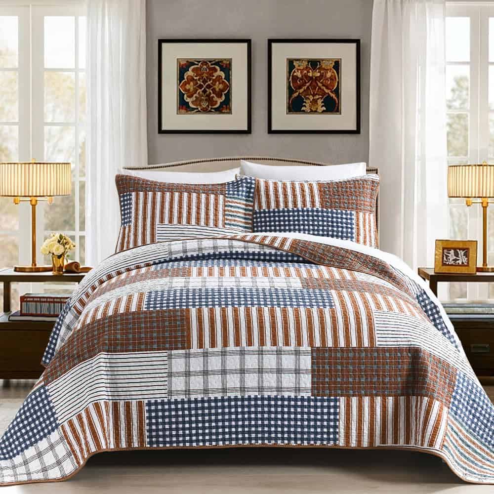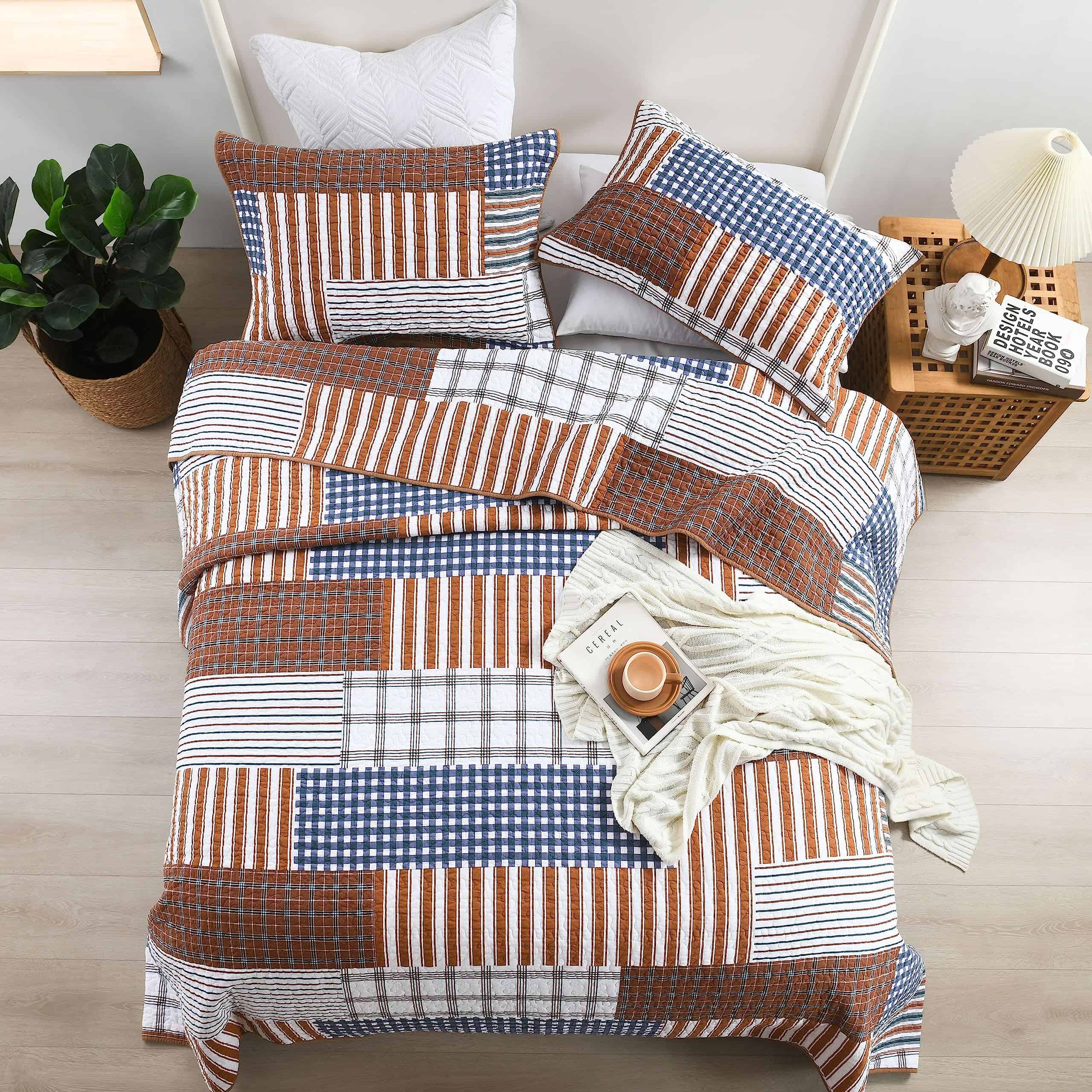 3. Colcha ligera: La colcha de tamaño queen a cuadros de estilo granja en tonos marrón, ligera pero cálida, puede usarse como manta en primavera y verano, como juego de edredón en otoño e invierno.
