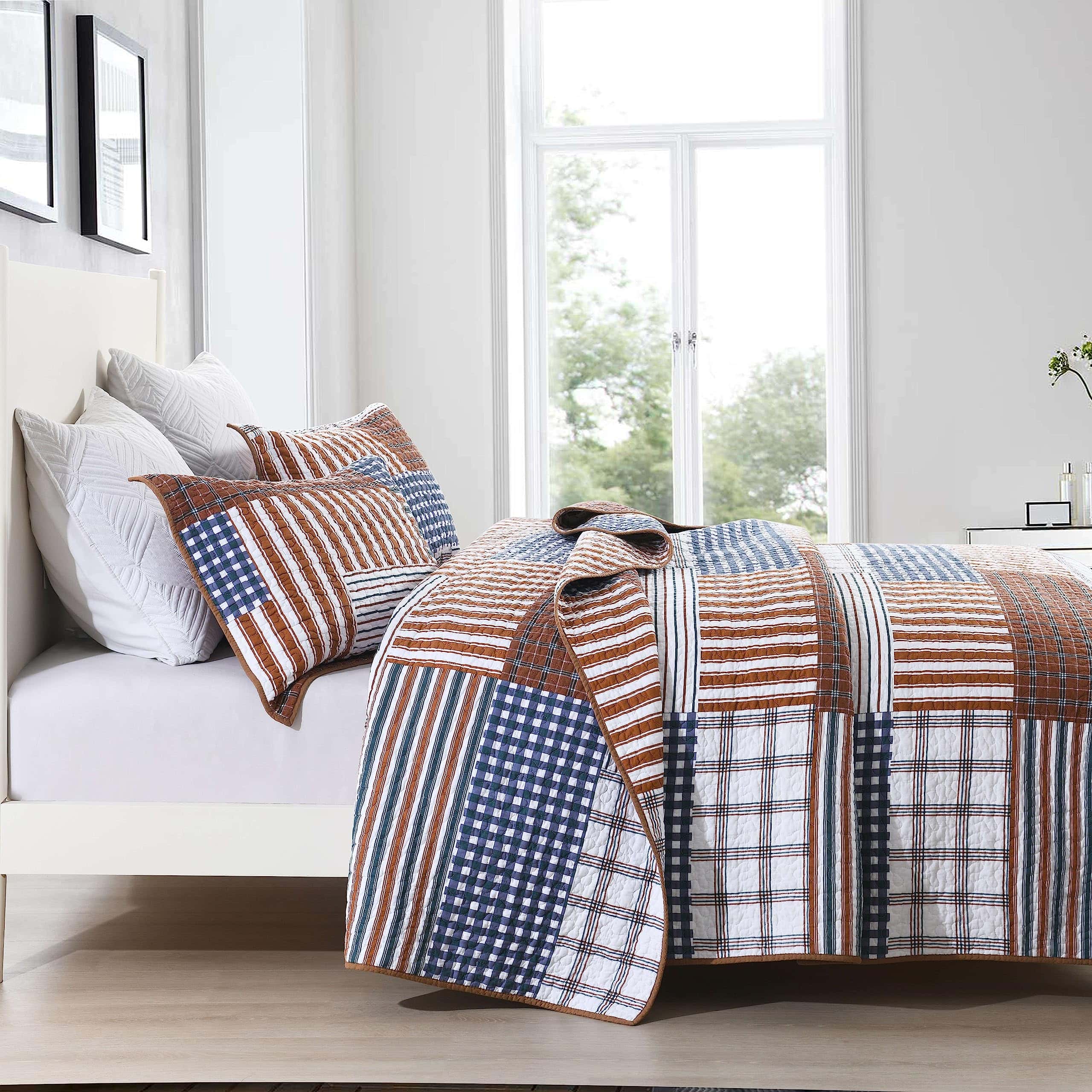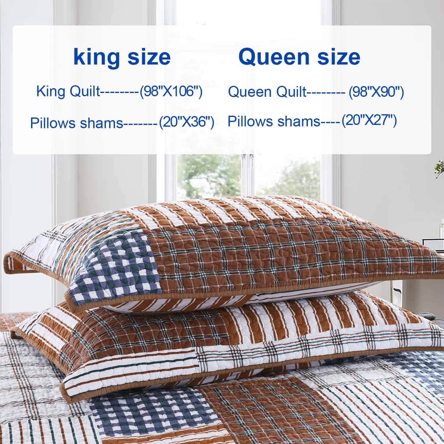 2. Juego de colchas acolchado de 3 piezas: 1 edredón Queen (90 x 98 pulgadas) 2 fundas de almohada (20 x 28 pulgadas).