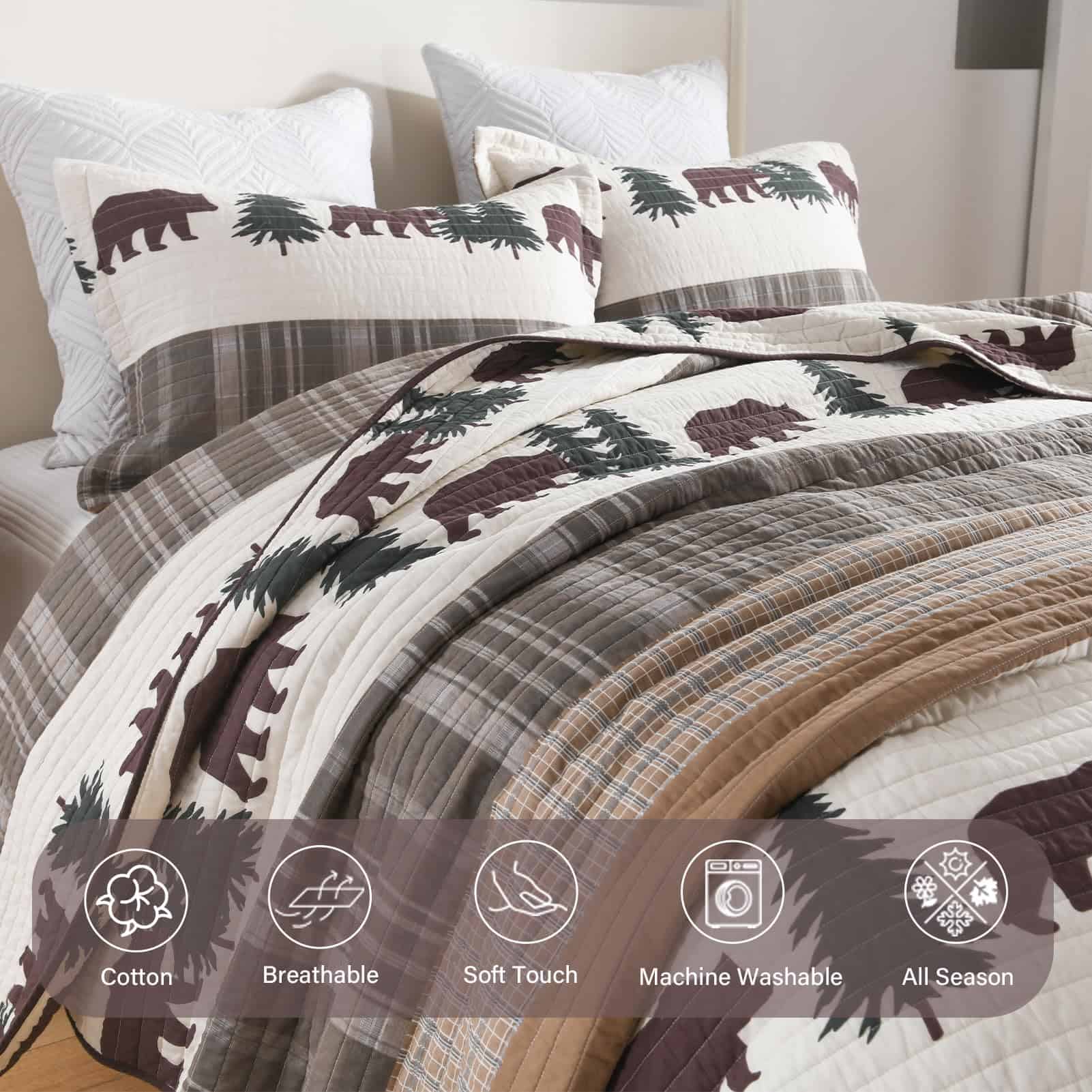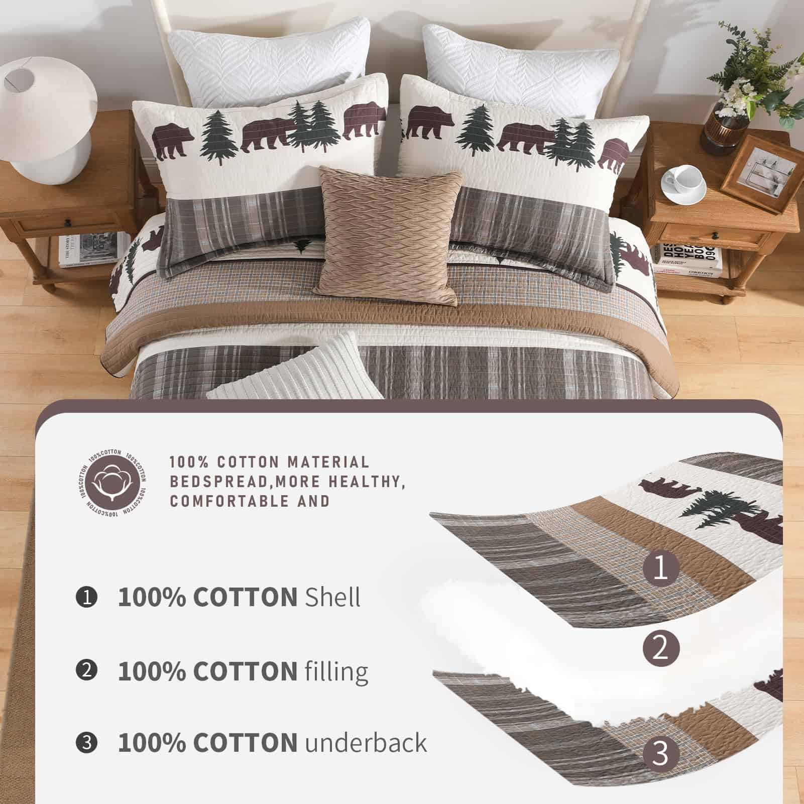 1. Edredón de algodón: Edredón queen size, edredón de cabaña de campo está hecho de algodón 100%, más saludable y transpirable. Suavidad, amigable con la piel y duradero.